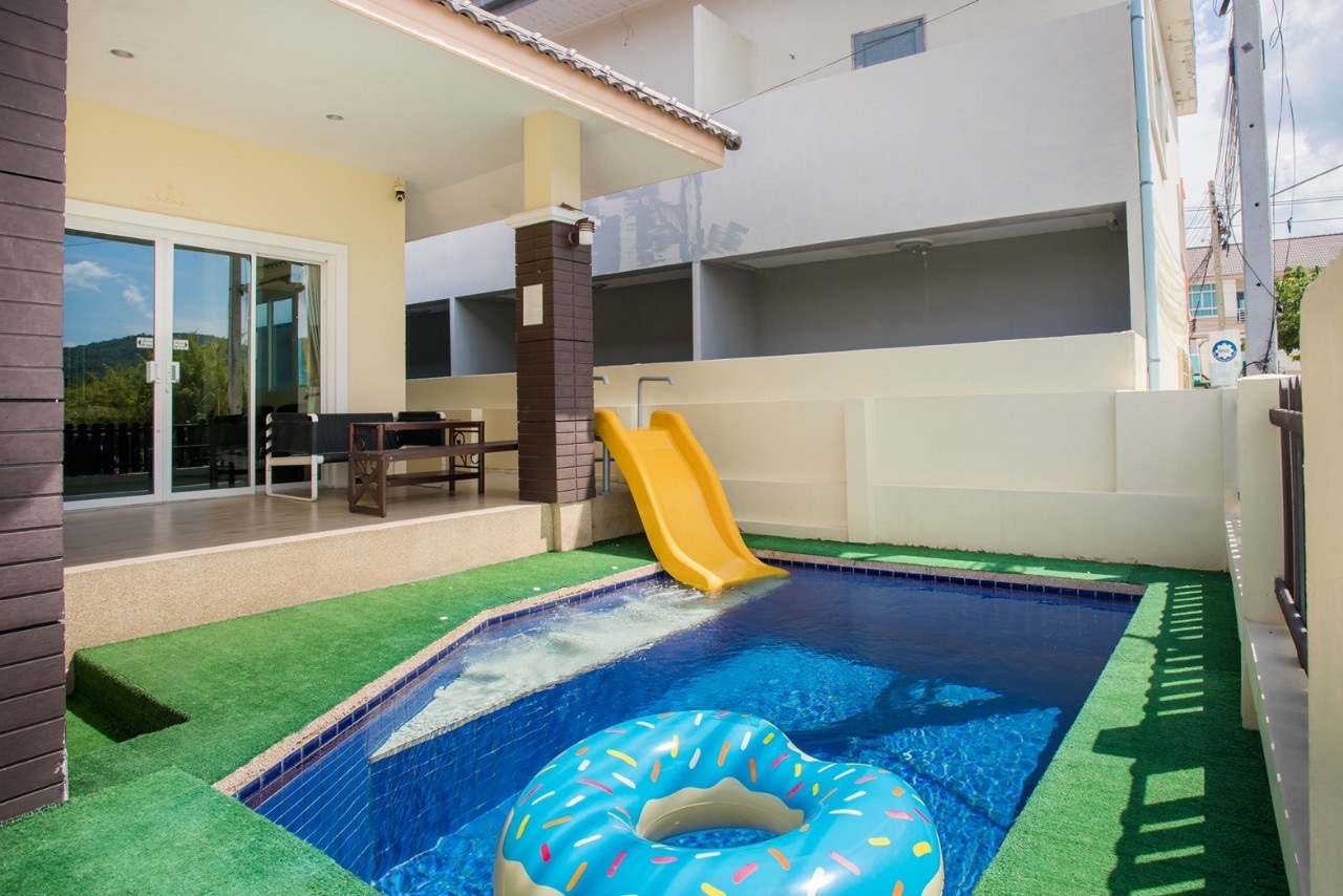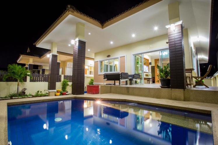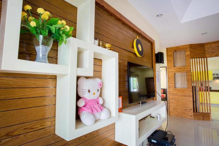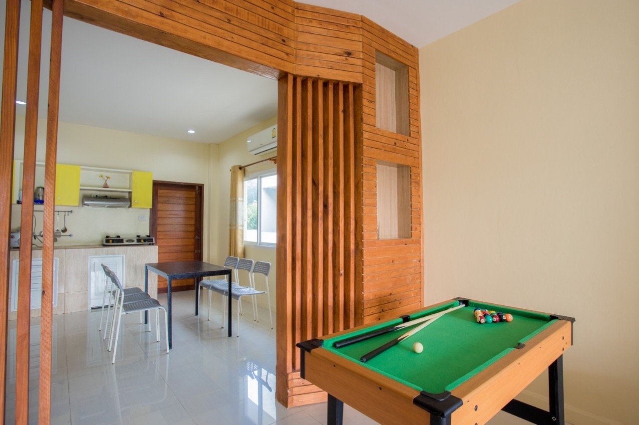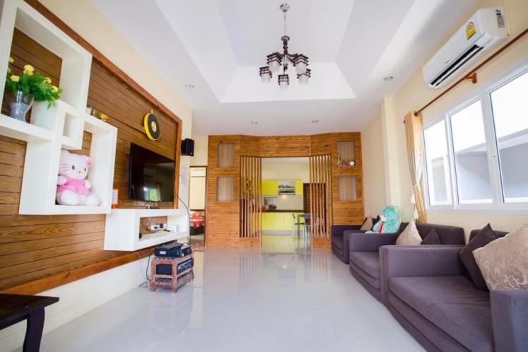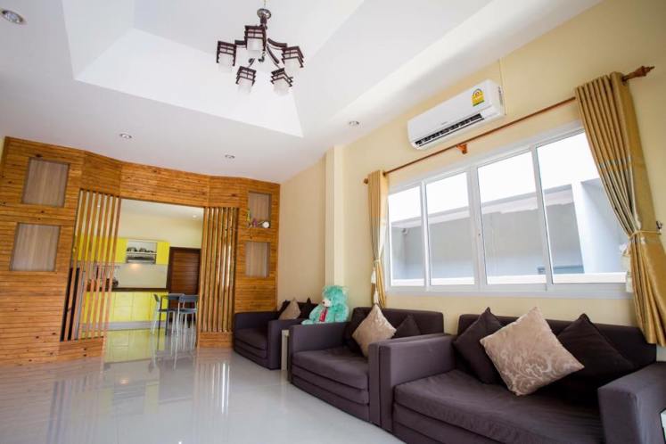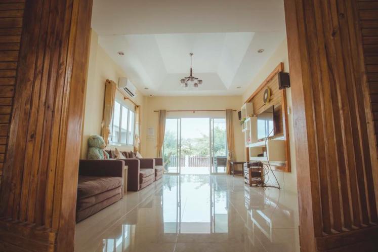 2 ห้องนอน (แอร์) 2 ห้องน้ำ 1 ห้องนั่งเล่น (แอร์) 1 ห้องครัวอุปกรณ์ครบครัน รองรับผู้เข้าพัก 8 คน คนเกินเพิ่มคนละ 350 บาท (พร้อมที่นอนเสริม) เสริมสูงสุด 12 คน วันธรรมดา-ศุกร์ราคาพิเศษ เพียง 2,990/ 4 ท่าน มีสระว่ายน้ำส่วนตัว ขนาด 3*6 เมตร สามารถเสียงดังได้ถึง 22.00 น. มีสิ่งอำนวยความสะดวกครบครัน ทีวี ตู้เย็น คาราโอเกะ อุปกรณ์เครื่องครัวครบชุด อุปกรณ์เครื่องใช้ส่วนตัวต้องเตรียมมาเอง เช่น ผ้าขนหนู แชมพู ยาสระผม (ห้ามนำสัตว์เลี้ยงเข้าพัก)
