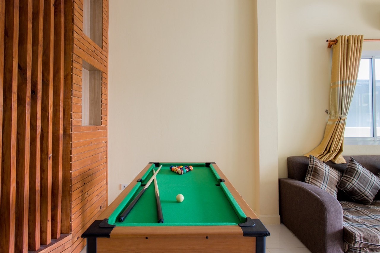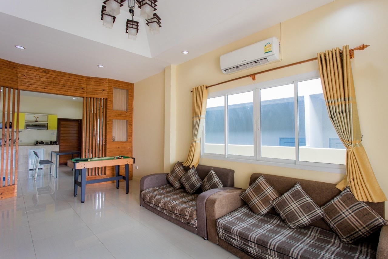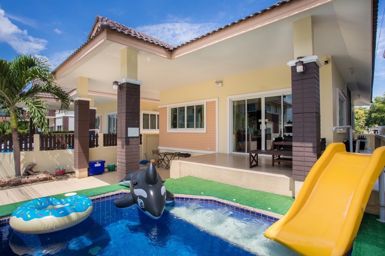 2 ห้องนอน (แอร์) 2 ห้องน้ำ 1 ห้องนั่งเล่น (แอร์) 1 ห้องครัวอุปกรณ์ครบครัน รองรับผู้เข้าพัก 8 คน คนเกินเพิ่มคนละ 350 บาท (พร้อมที่นอนเสริม) เสริมสูงสุด 12 คน วันธรรมดา-ศุกร์ราคาพิเศษ เพียง 2,990/ 4 ท่าน มีสระว่ายน้ำส่วนตัว ขนาด 3*6 เมตร สามารถเสียงดังได้ถึง 22.00 น. มีสิ่งอำนวยความสะดวกครบครัน ทีวี ตู้เย็น คาราโอเกะ อุปกรณ์เครื่องครัวครบชุด อุปกรณ์เครื่องใช้ส่วนตัวต้องเตรียมมาเอง เช่น ผ้าขนหนู แชมพู ยาสระผม (ห้ามนำสัตว์เลี้ยงเข้าพัก)