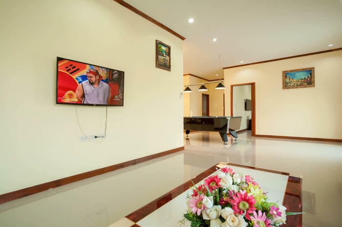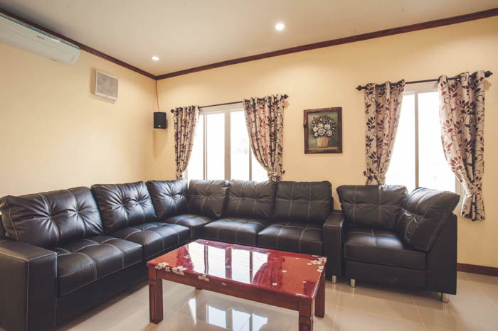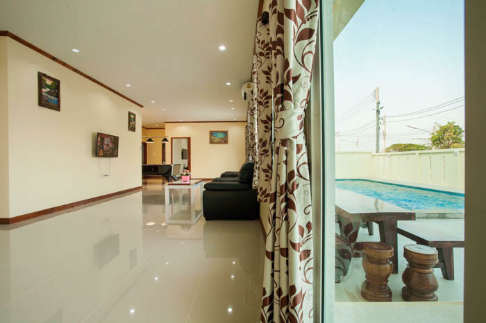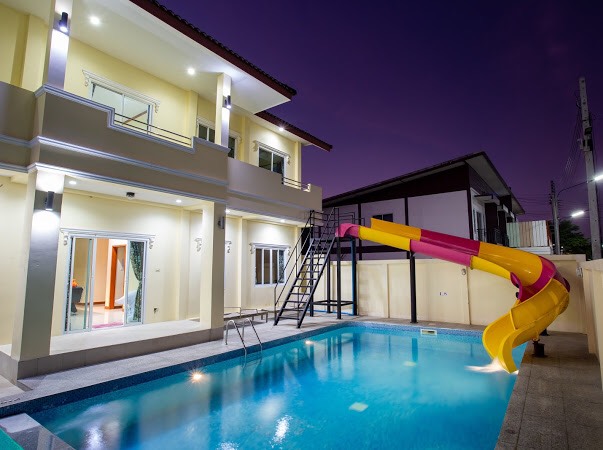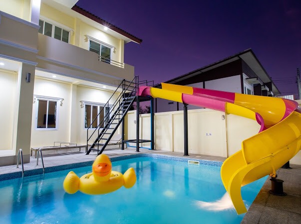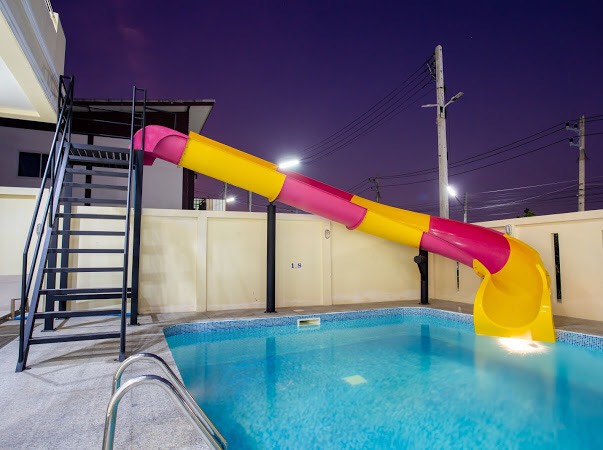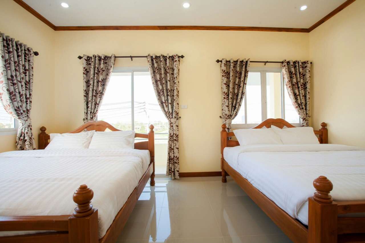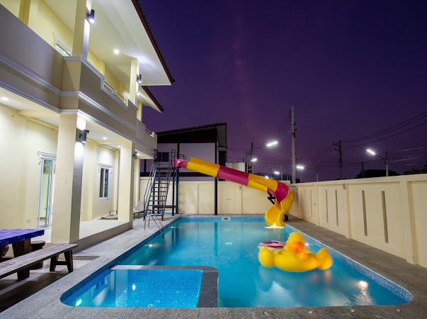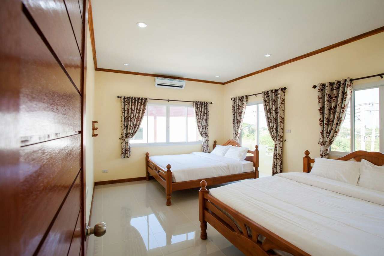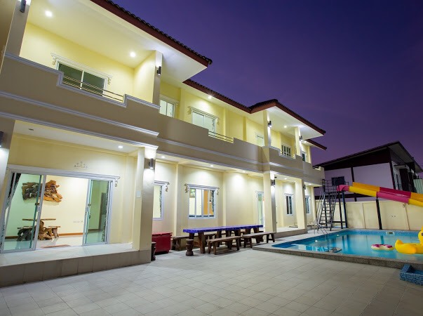 6 ห้องนอน (แอร์) 6 ห้องน้ำ 1 ห้องนั่งเล่น (แอร์) 1 ห้องครัวอุปกรณ์ครบครัน รองรับผู้เข้าพัก 20 คน คนที่ 21 ขึ้นไป เพิ่มคนละ 400 บาท พักสูงสุด 50 ท่าน (พร้อมที่นอนเสริม) มีสระว่ายน้ำส่วนตัว ขนาด 7*12 เมตร สามารถเสียงดังได้ทั้งคืน มีสิ่งอำนวยความสะดวกครบครัน ทีวี ฟรีคาราโอเกะ โต๊ะพูล wifi ตู้เย็น อุปกรณ์เครื่องครัวครบชุด อุปกรณ์เครื่องใช้ส่วนตัวต้องเตรียมมาเอง เช่น ผ้าขนหนู แชมพู ยาสระผม