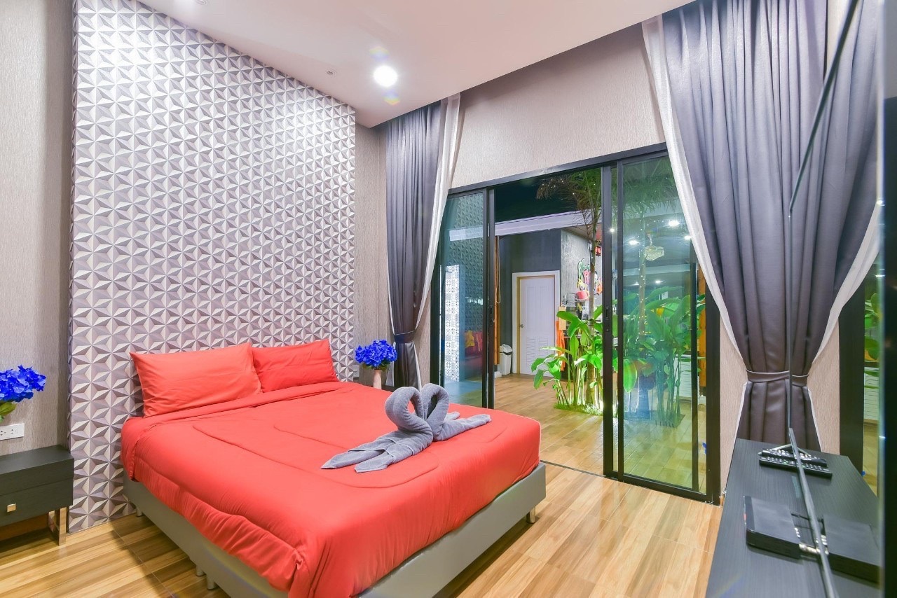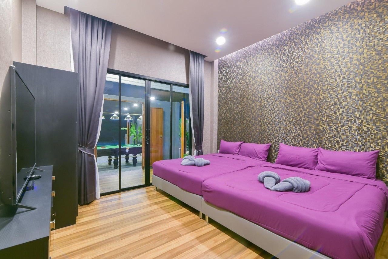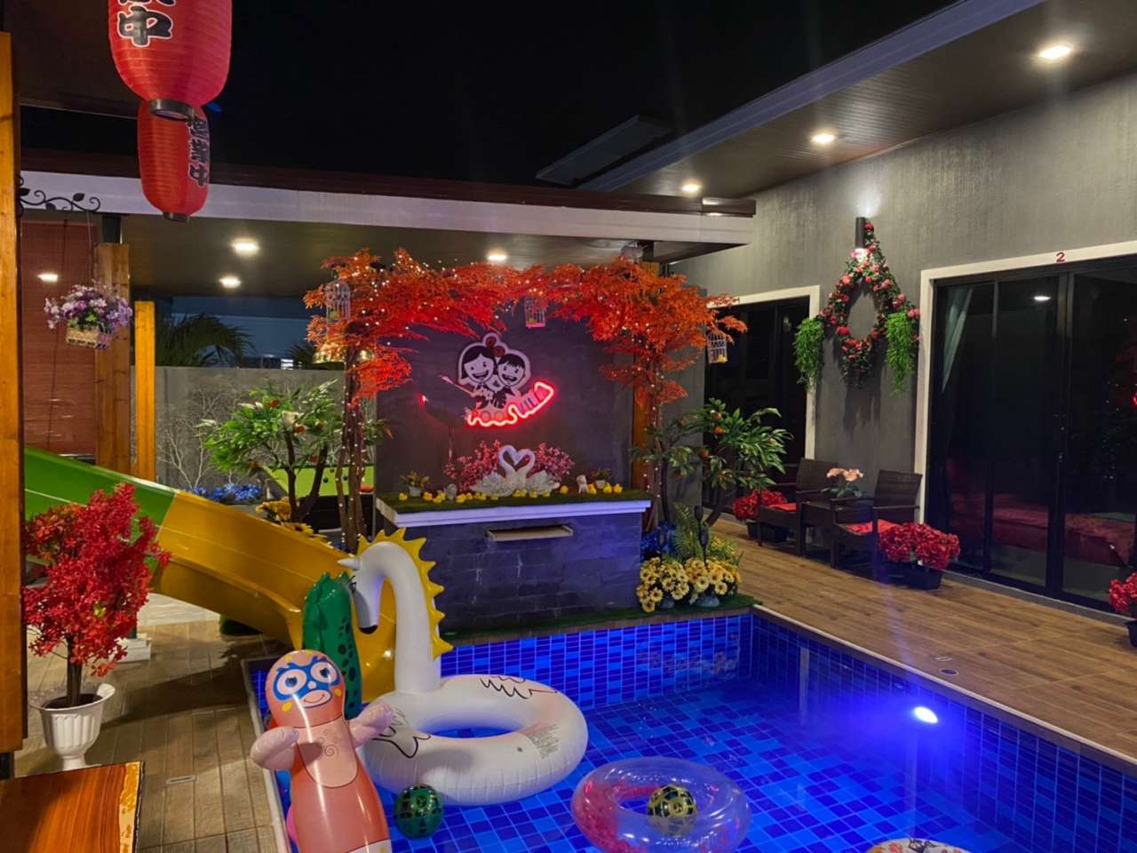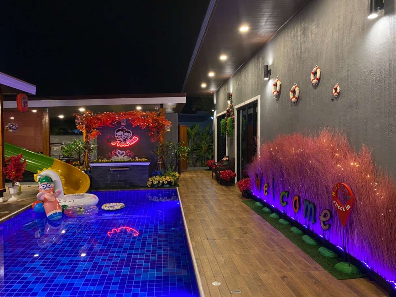 5 ห้องนอน (แอร์) 6 ห้องน้ำ 1 ห้องนั่งเล่น (แอร์) 2 ห้องครัวอุปกรณ์ครบครัน รองรับผู้เข้าพัก 16 คน มีสระว่ายน้ำส่วนตัว ขนาด 3.5*8 เมตร สามารถเสียงดังได้4 ทุ่ม มีสิ่งอำนวยความสะดวกครบครัน ทีวี ฟรีคาราโอเกะ โต๊ะพูล สไลเดอร์ wifi ตู้เย็น อุปกรณ์เครื่องครัวครบชุด พร้อม ผ้าขนหนู แชมพู ยาสระผม ไดร์เป่าผม มีให้