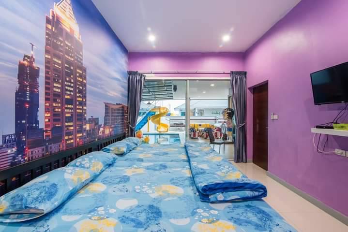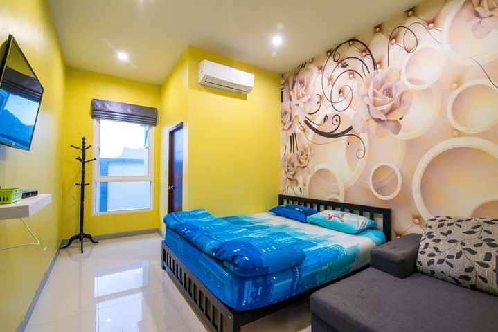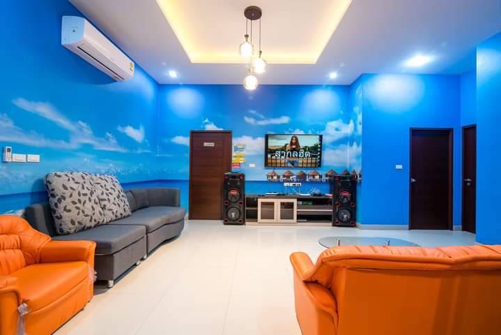 4 ห้องนอน (แอร์) 3 ห้องน้ำ 1 ห้องนั่งเล่น (แอร์) 1 ห้องครัวอุปกรณ์ครบครัน รองรับผู้เข้าพัก 10 คน คนที่ 11 ขึ้นไป เพิ่มคนละ 300 บาท พักสูงสุด 15 ท่าน (พร้อมที่นอนเสริม) มีสระว่ายน้ำส่วนตัว ระบบเกลือ ขนาด 3.5*7 เมตร สามารถเสียงดังได้4 ทุ่ม มีสิ่งอำนวยความสะดวกครบครัน ทีวี ฟรีโต๊ะสนุ๊กฟรีคาราโอเกะ wifi ตู้เย็น อุปกรณ์เครื่องครัวครบชุด อุปกรณ์เครื่องใช้ส่วนตัวต้องเตรียมมาเอง เช่น ผ้าขนหนู แชมพู ยาสระผม
