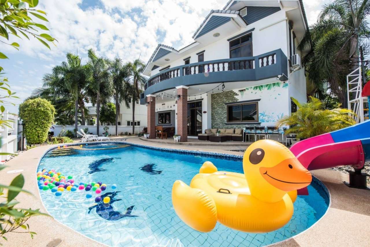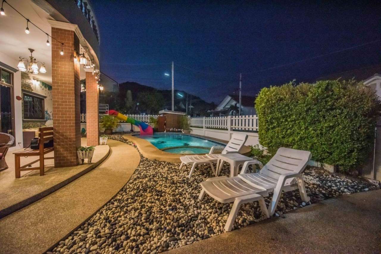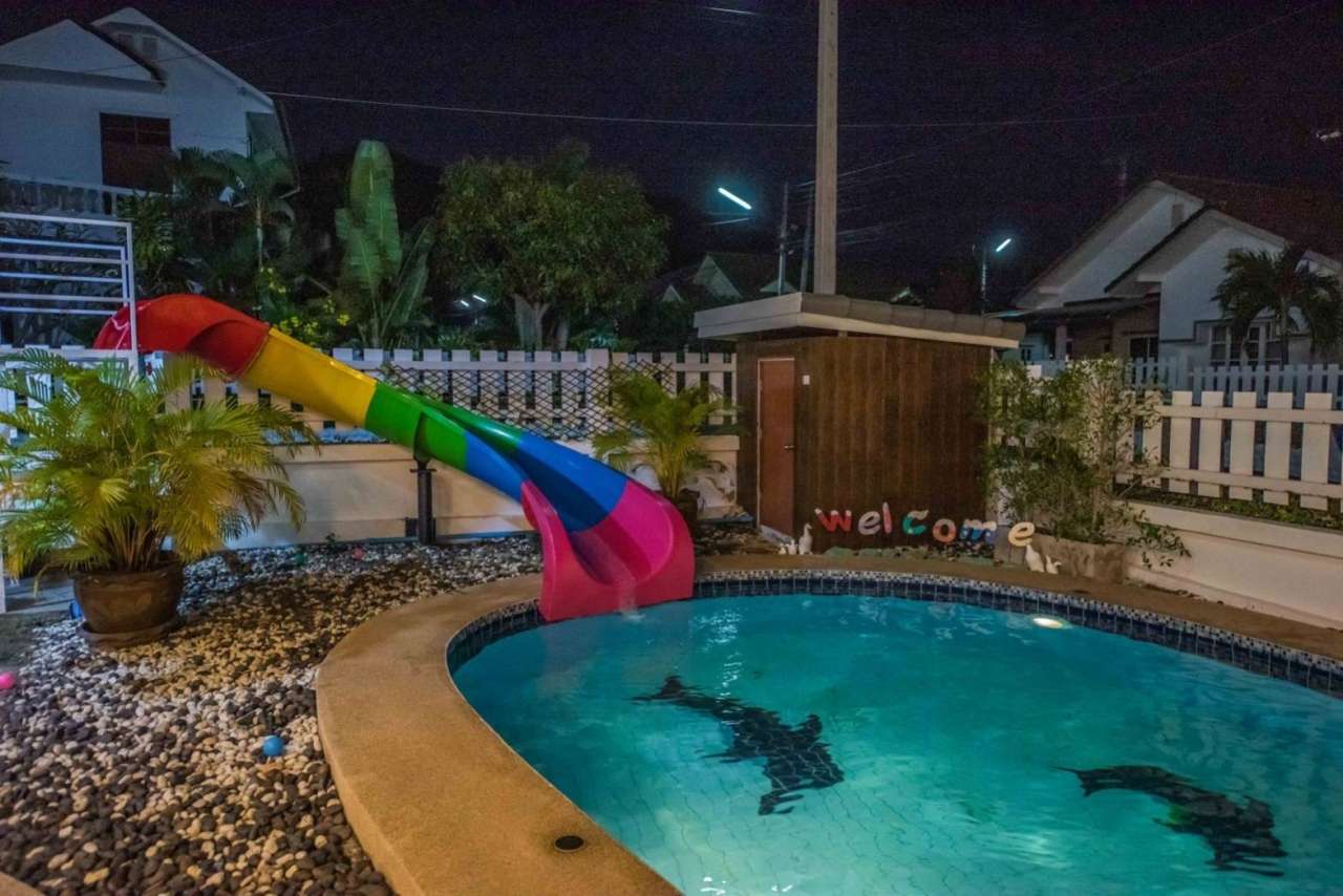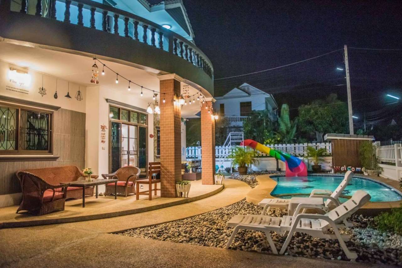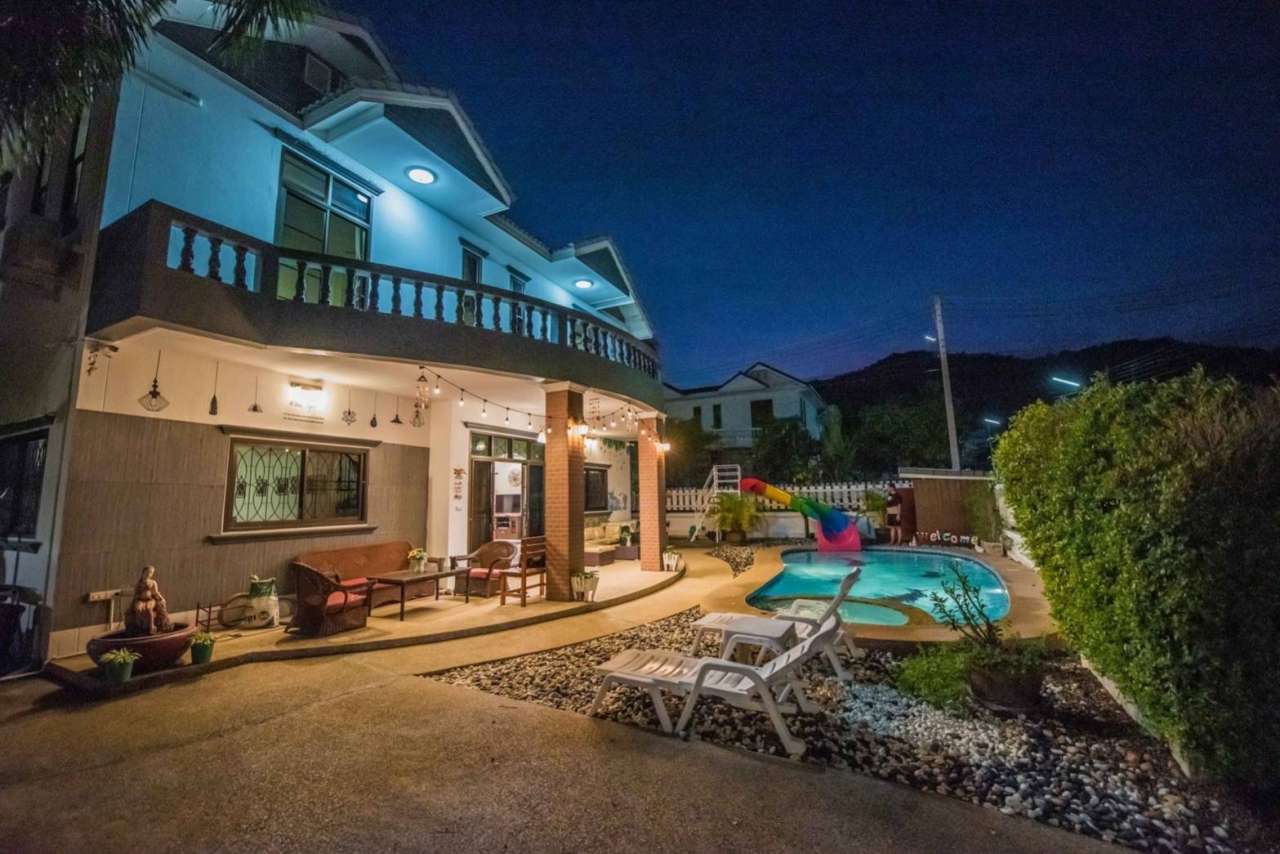 4 ห้องนอน (แอร์) 3 ห้องน้ำ 1 ห้องนั่งเล่น (แอร์) 1 ห้องครัวอุปกรณ์ครบครัน รองรับผู้เข้าพัก 12 คน คนที่ 13 ขึ้นไป เพิ่มคนละ 300 บาท พักสูงสุด 16 ท่าน (พร้อมที่นอนเสริม) มีสระว่ายน้ำส่วนตัว ขนาด 4*8 เมตร (ระบบเกลือ) สามารถเสียงดังได้ 4 ทุ่ม มีสิ่งอำนวยความสะดวกครบครัน ทีวี ฟรีคาราโอเกะ โต๊ะพูล wifi ตู้เย็น อุปกรณ์เครื่องครัวครบชุด อุปกรณ์เครื่องใช้ส่วนตัวต้องเตรียมมาเอง เช่น ผ้าขนหนู แชมพู ยาสระผม