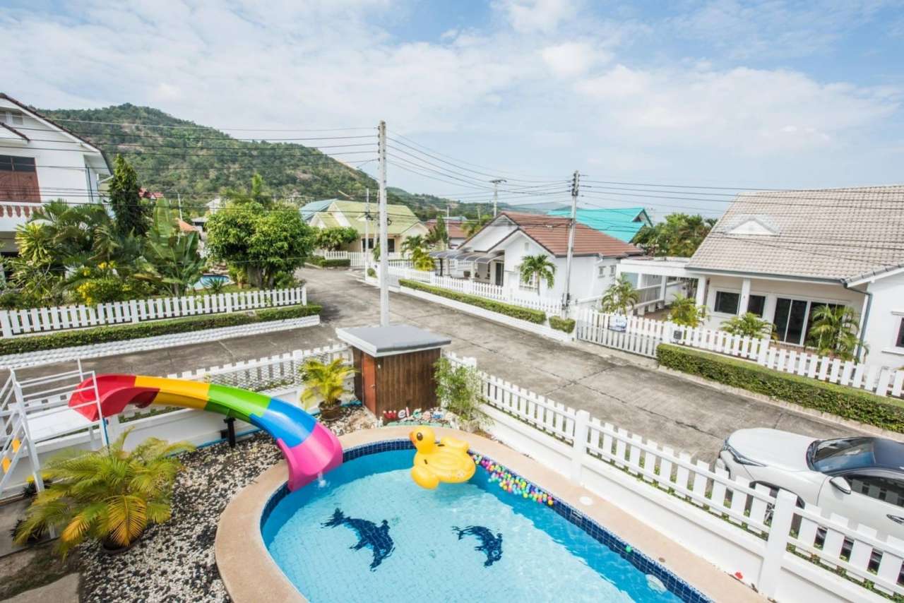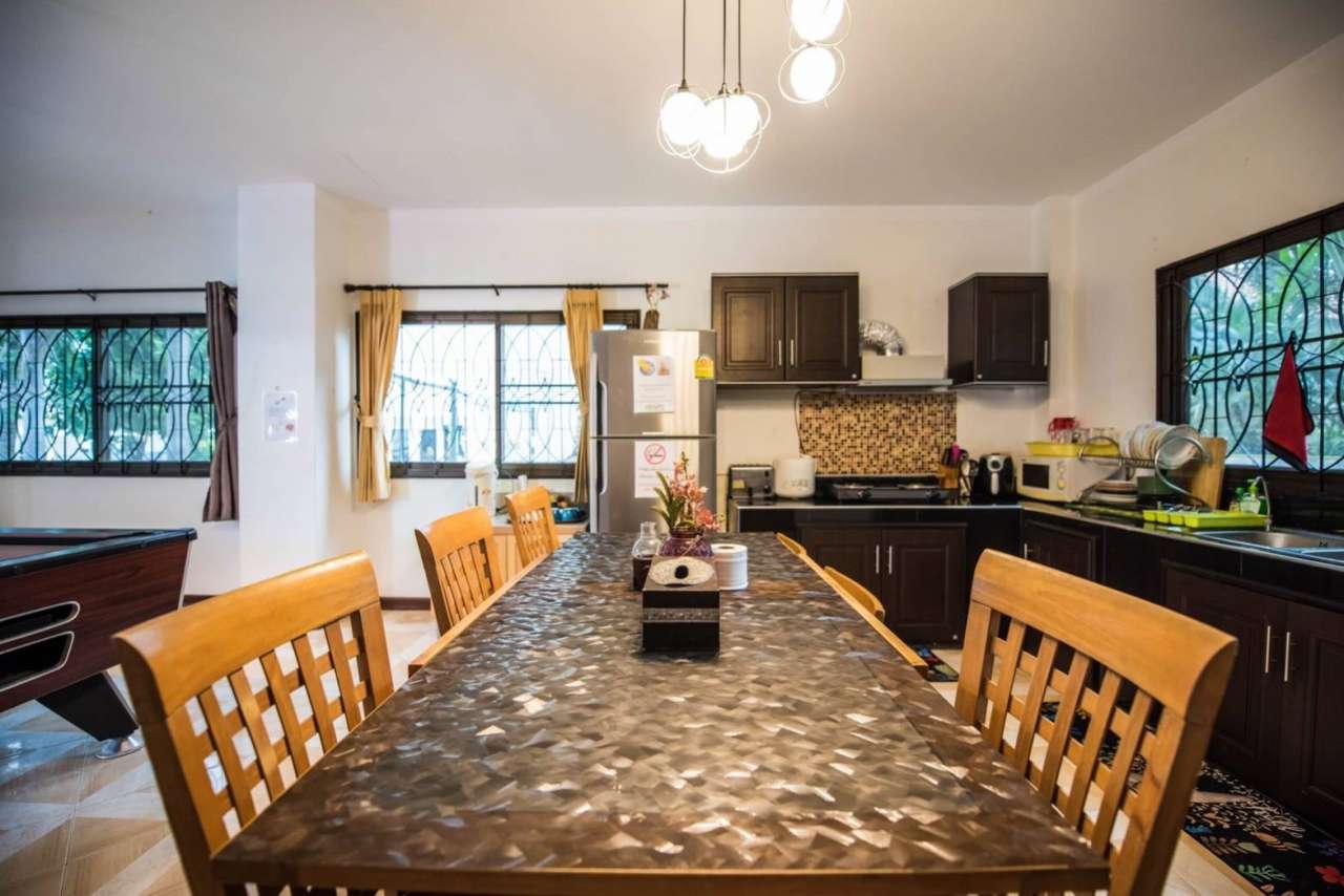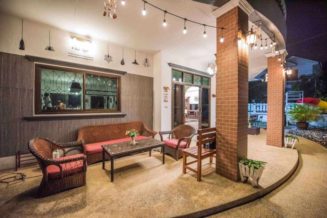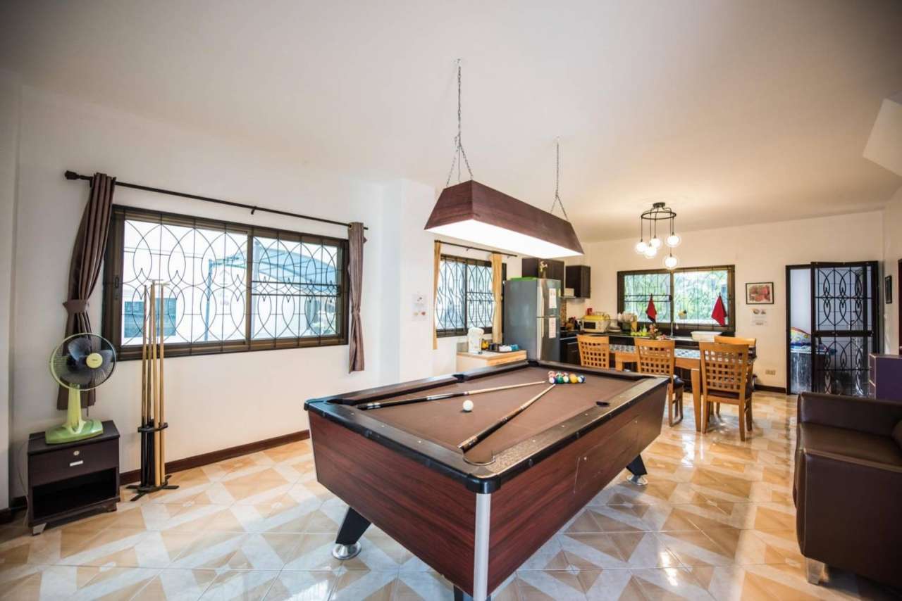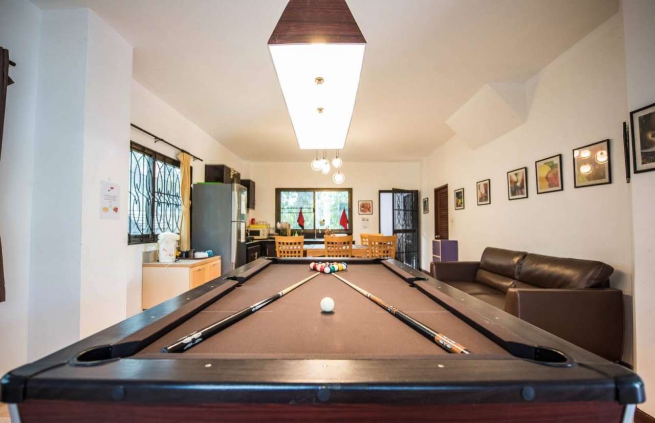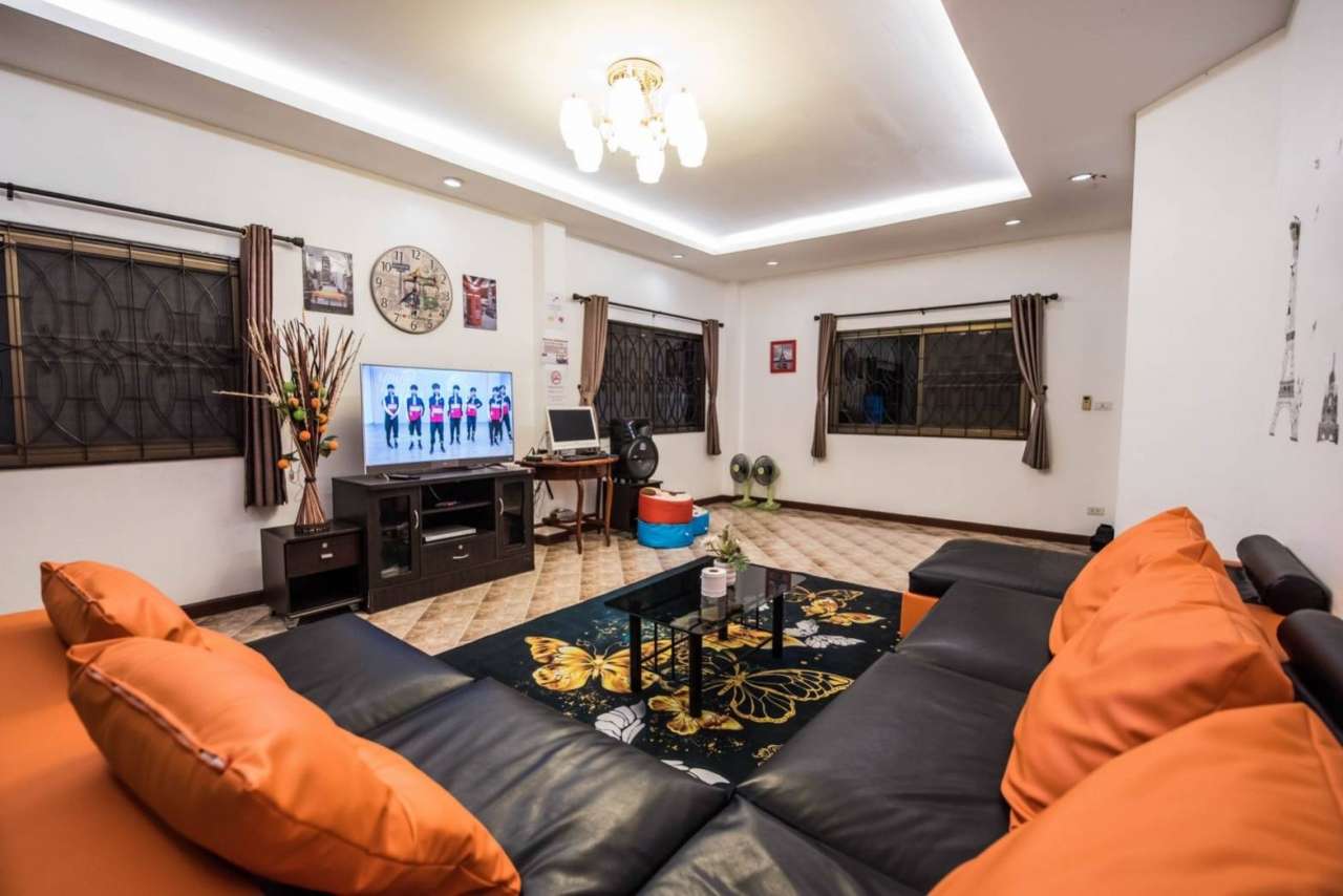 4 ห้องนอน (แอร์) 3 ห้องน้ำ 1 ห้องนั่งเล่น (แอร์) 1 ห้องครัวอุปกรณ์ครบครัน รองรับผู้เข้าพัก 12 คน คนที่ 13 ขึ้นไป เพิ่มคนละ 300 บาท พักสูงสุด 16 ท่าน (พร้อมที่นอนเสริม) มีสระว่ายน้ำส่วนตัว ขนาด 4*8 เมตร (ระบบเกลือ) สามารถเสียงดังได้ 4 ทุ่ม มีสิ่งอำนวยความสะดวกครบครัน ทีวี ฟรีคาราโอเกะ โต๊ะพูล wifi ตู้เย็น อุปกรณ์เครื่องครัวครบชุด อุปกรณ์เครื่องใช้ส่วนตัวต้องเตรียมมาเอง เช่น ผ้าขนหนู แชมพู ยาสระผม