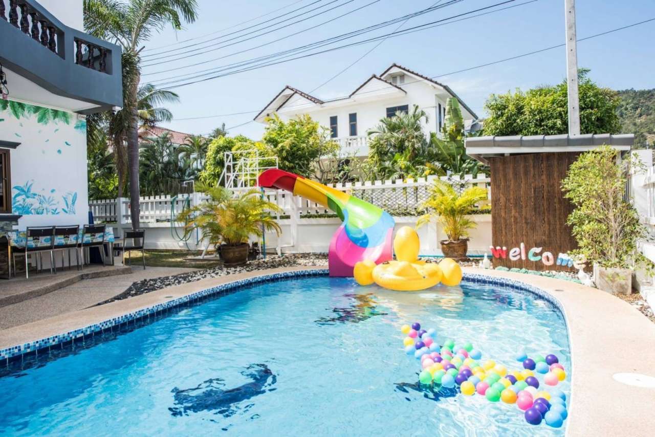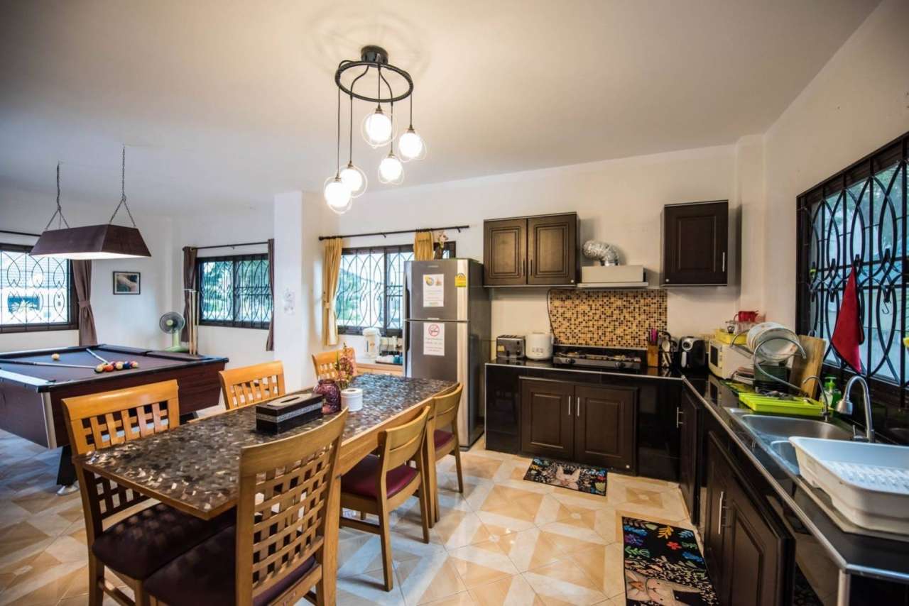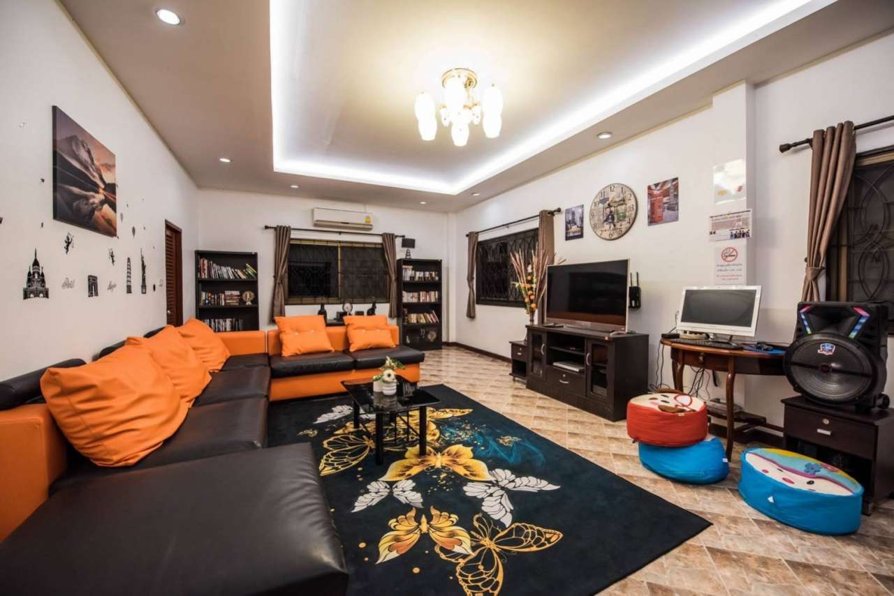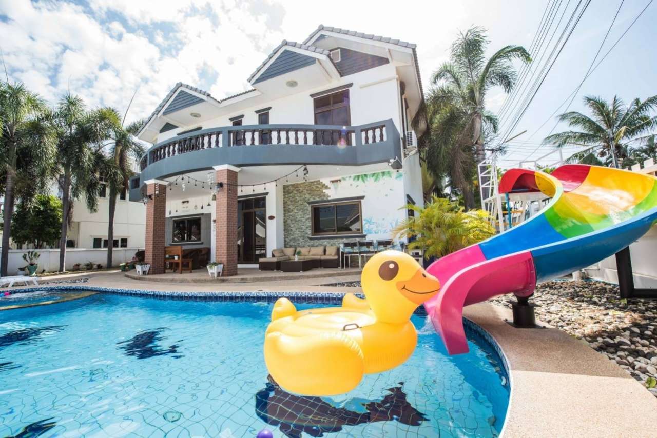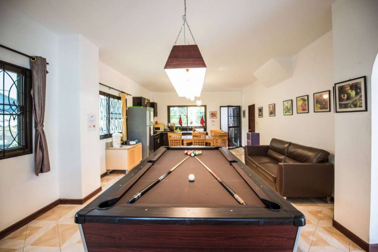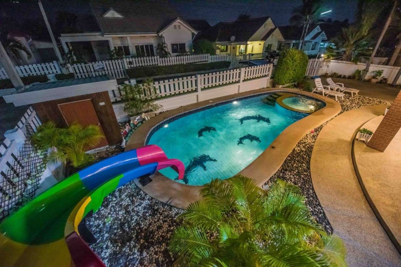 4 ห้องนอน (แอร์) 3 ห้องน้ำ 1 ห้องนั่งเล่น (แอร์) 1 ห้องครัวอุปกรณ์ครบครัน รองรับผู้เข้าพัก 12 คน คนที่ 13 ขึ้นไป เพิ่มคนละ 300 บาท พักสูงสุด 16 ท่าน (พร้อมที่นอนเสริม) มีสระว่ายน้ำส่วนตัว ขนาด 4*8 เมตร (ระบบเกลือ) สามารถเสียงดังได้ 4 ทุ่ม มีสิ่งอำนวยความสะดวกครบครัน ทีวี ฟรีคาราโอเกะ โต๊ะพูล wifi ตู้เย็น อุปกรณ์เครื่องครัวครบชุด อุปกรณ์เครื่องใช้ส่วนตัวต้องเตรียมมาเอง เช่น ผ้าขนหนู แชมพู ยาสระผม