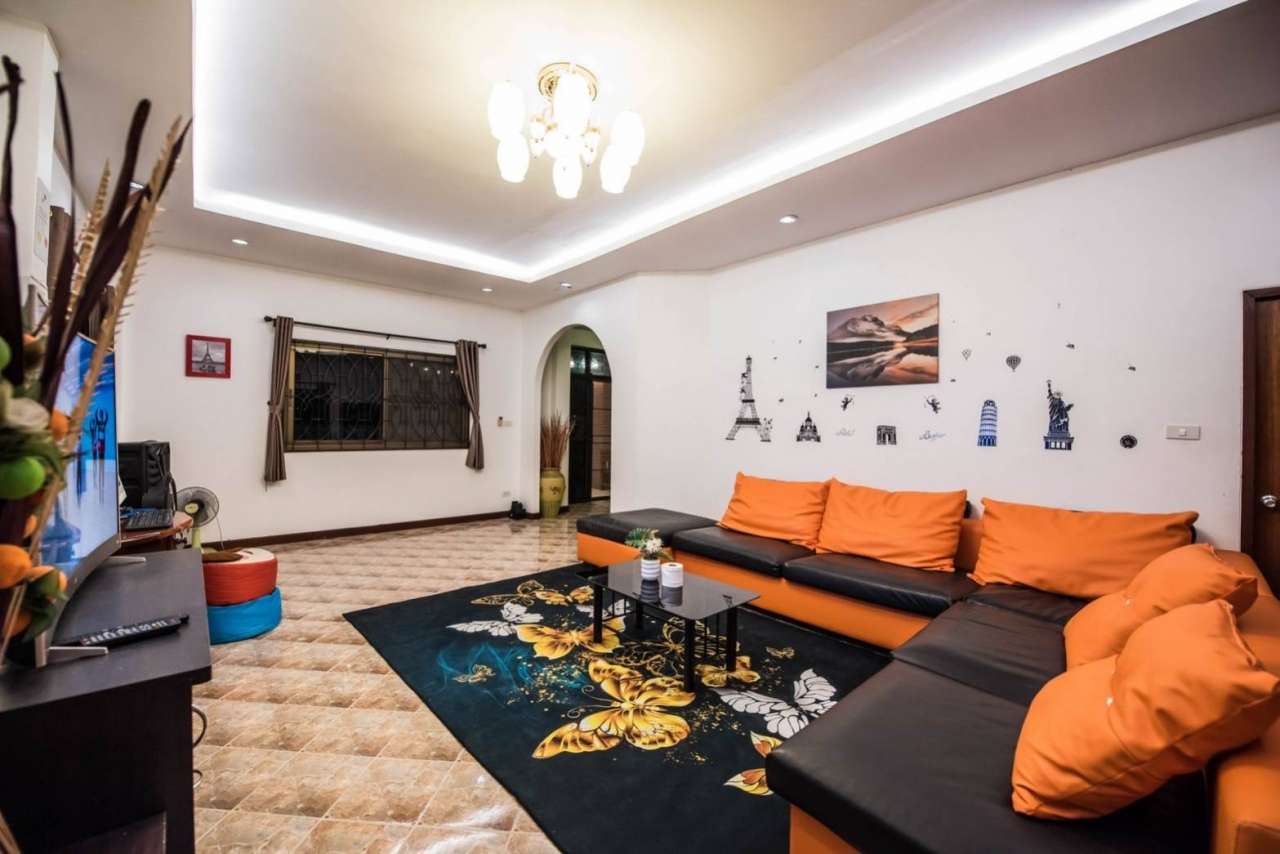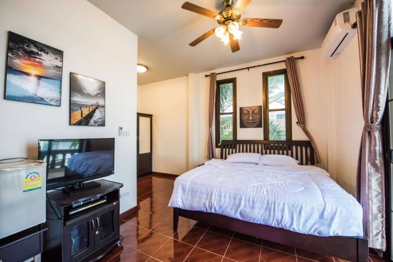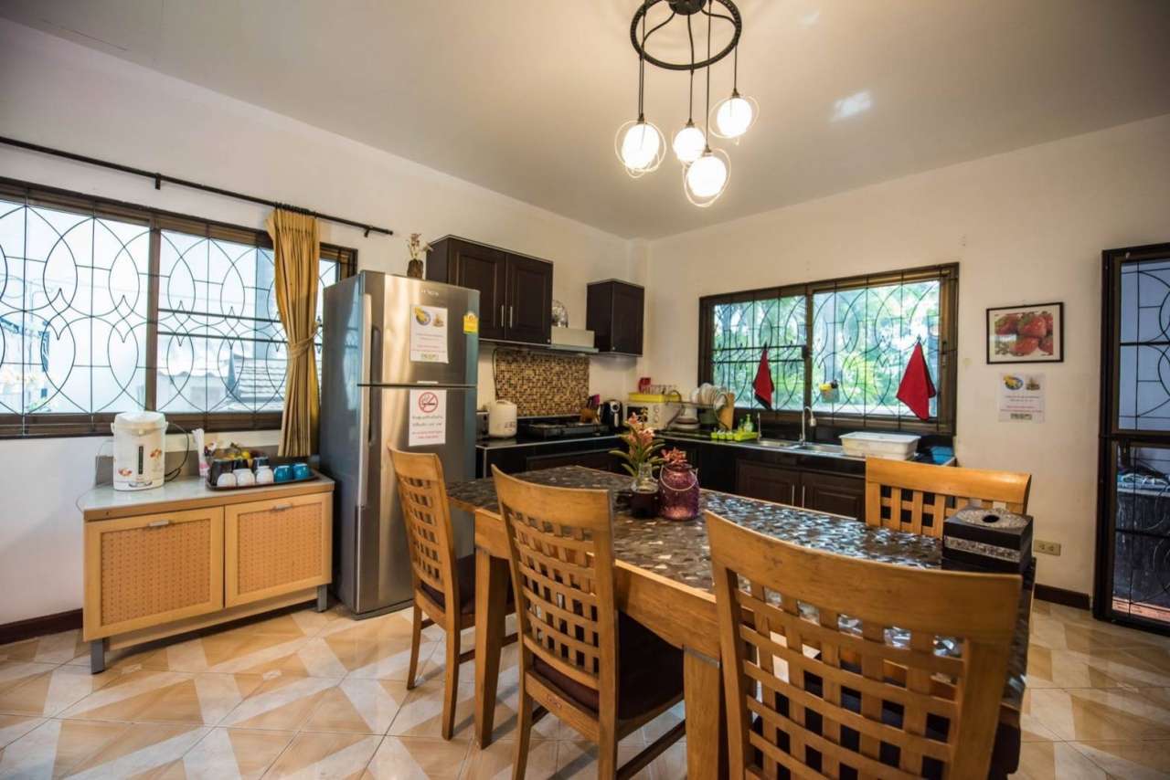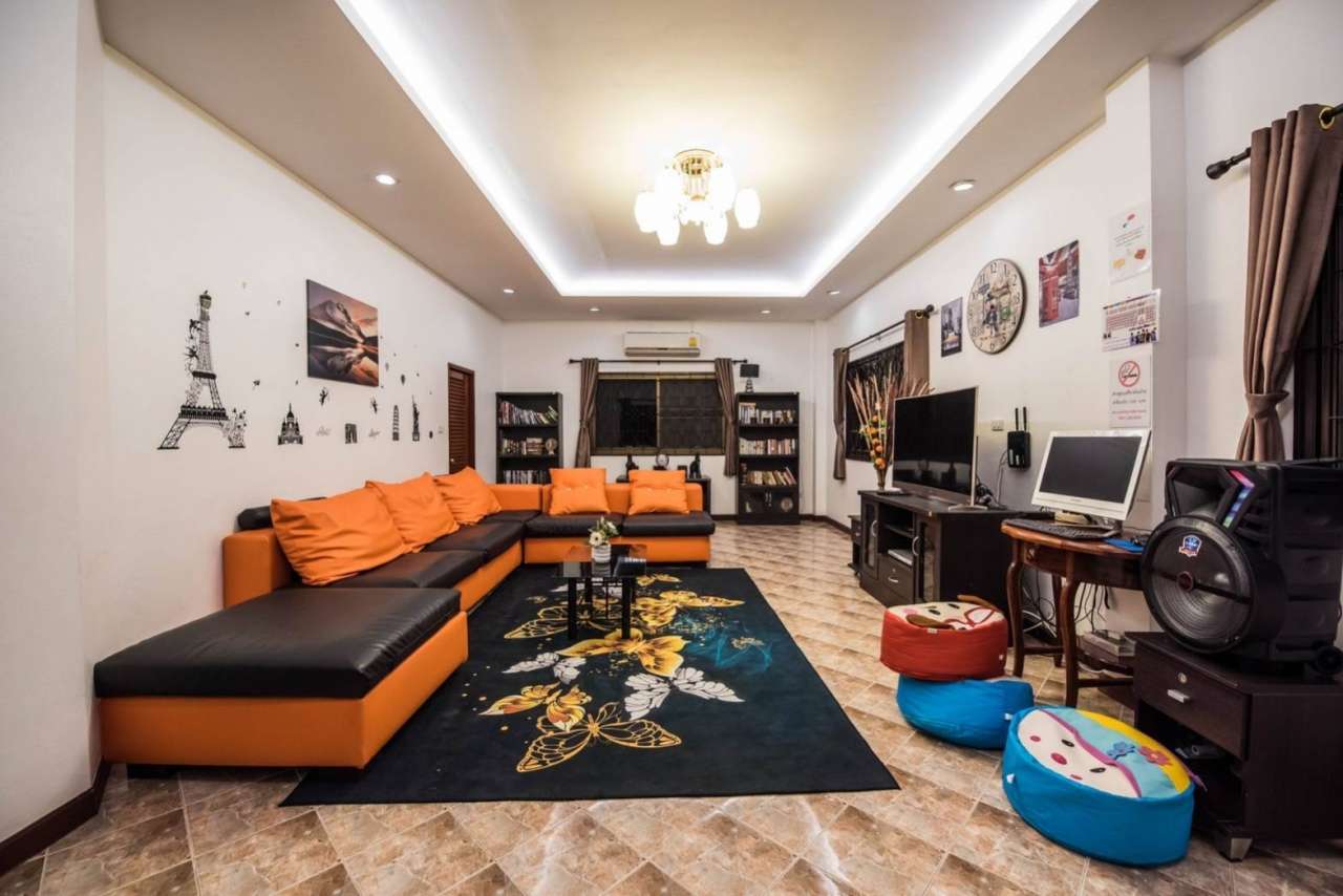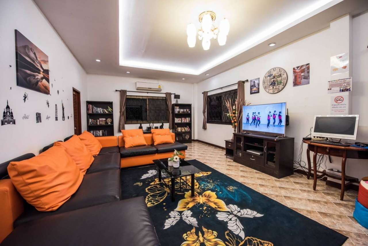 4 ห้องนอน (แอร์) 3 ห้องน้ำ 1 ห้องนั่งเล่น (แอร์) 1 ห้องครัวอุปกรณ์ครบครัน รองรับผู้เข้าพัก 12 คน คนที่ 13 ขึ้นไป เพิ่มคนละ 300 บาท พักสูงสุด 16 ท่าน (พร้อมที่นอนเสริม) มีสระว่ายน้ำส่วนตัว ขนาด 4*8 เมตร (ระบบเกลือ) สามารถเสียงดังได้ 4 ทุ่ม มีสิ่งอำนวยความสะดวกครบครัน ทีวี ฟรีคาราโอเกะ โต๊ะพูล wifi ตู้เย็น อุปกรณ์เครื่องครัวครบชุด อุปกรณ์เครื่องใช้ส่วนตัวต้องเตรียมมาเอง เช่น ผ้าขนหนู แชมพู ยาสระผม
