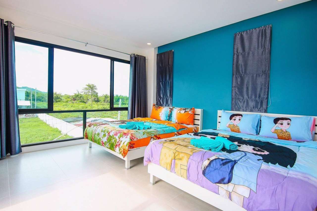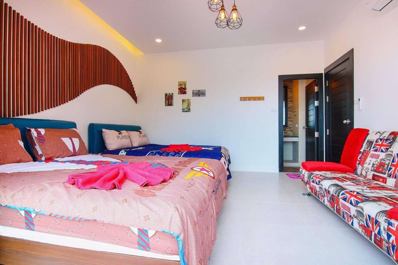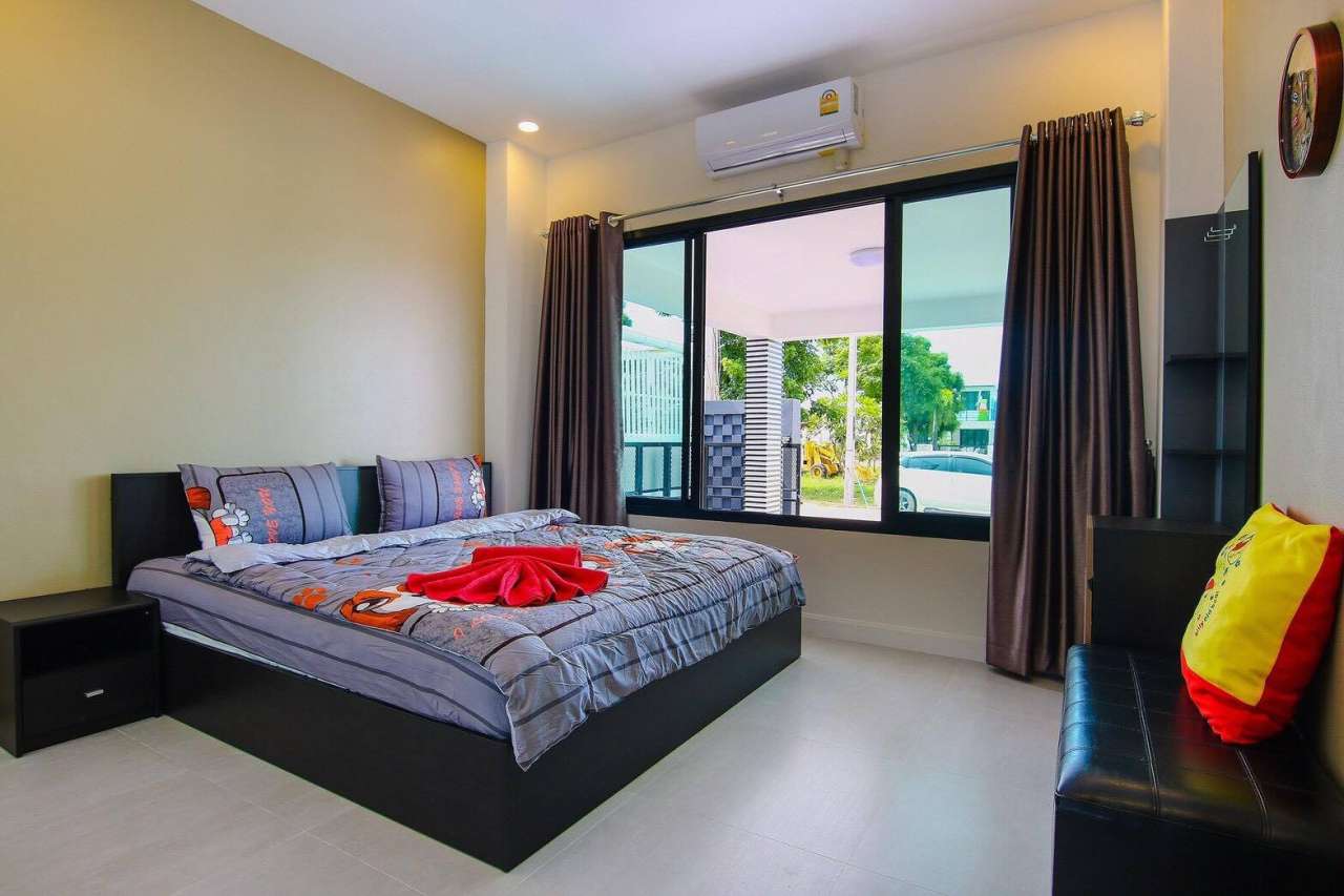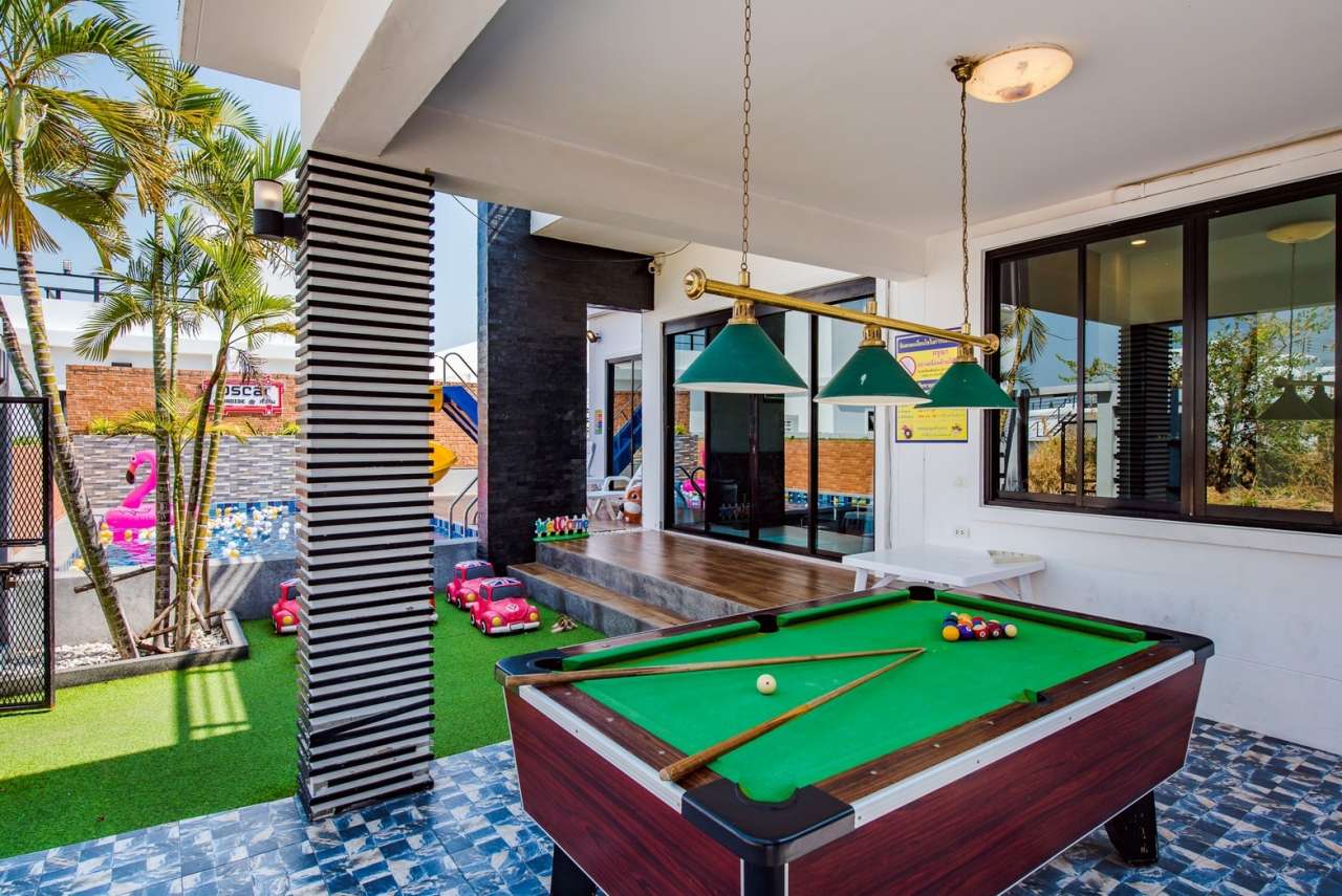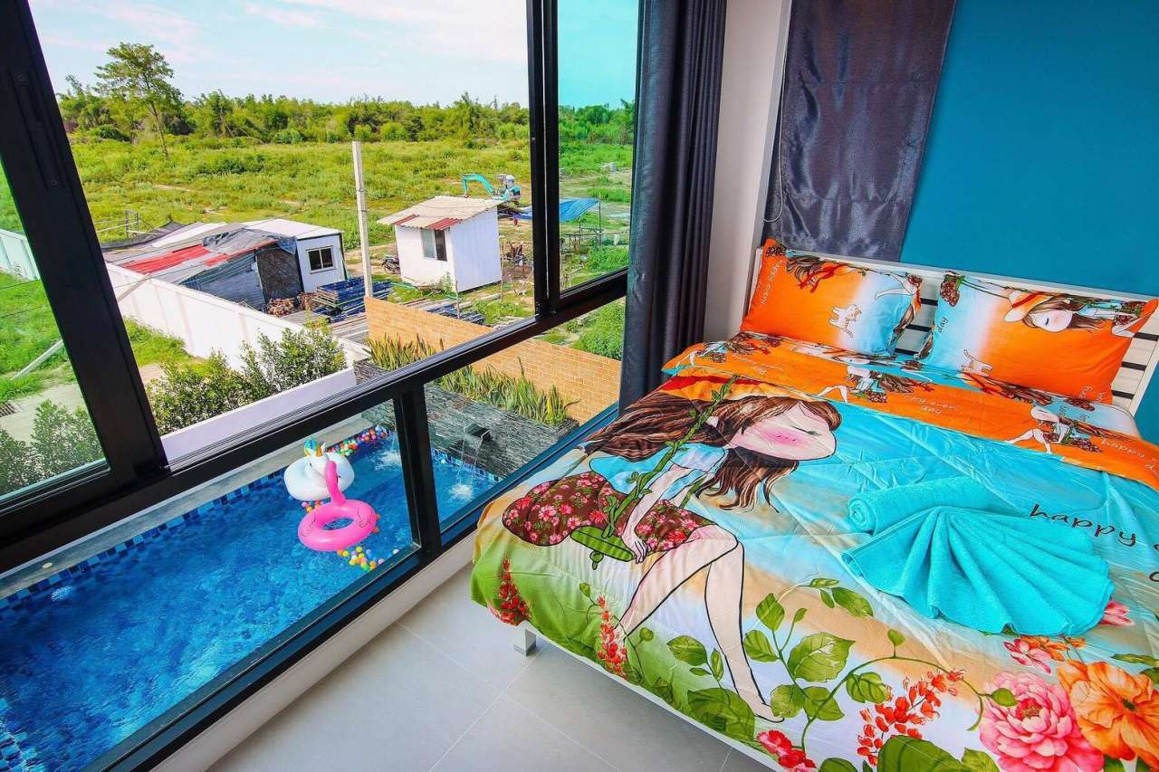 3 ห้องนอน (แอร์) 3 ห้องน้ำ 1 ห้องนั่งเล่น (แอร์) 1 ห้องครัวอุปกรณ์ครบครัน รองรับผู้เข้าพัก 8 คน สำหรับเด็กต่ำกว่า 10 ขวบ ฟรี 2 คน คนที่ 9 ขึ้นไป เพิ่มคนละ 300 บาท พักสูงสุด 15 ท่าน (พร้อมที่นอนเสริม) มีสระว่ายน้ำส่วนตัว ขนาด 3*7 เมตร สามารถเสียงดังได้ถึง 22.00 น. มีสิ่งอำนวยความสะดวกครบครัน คาราโอเกะ ไฟเธค โต๊ะพูล ทีวี ตู้เย็น อุปกรณ์เครื่องครัวครบชุด อุปกรณ์เครื่องใช้ส่วนตัวต้องเตรียมมาเอง เช่น ผ้าขนหนู แชมพู ยาสระผม
