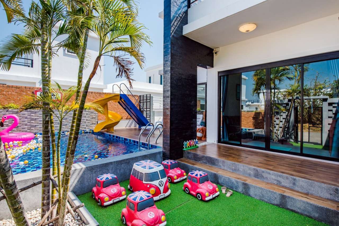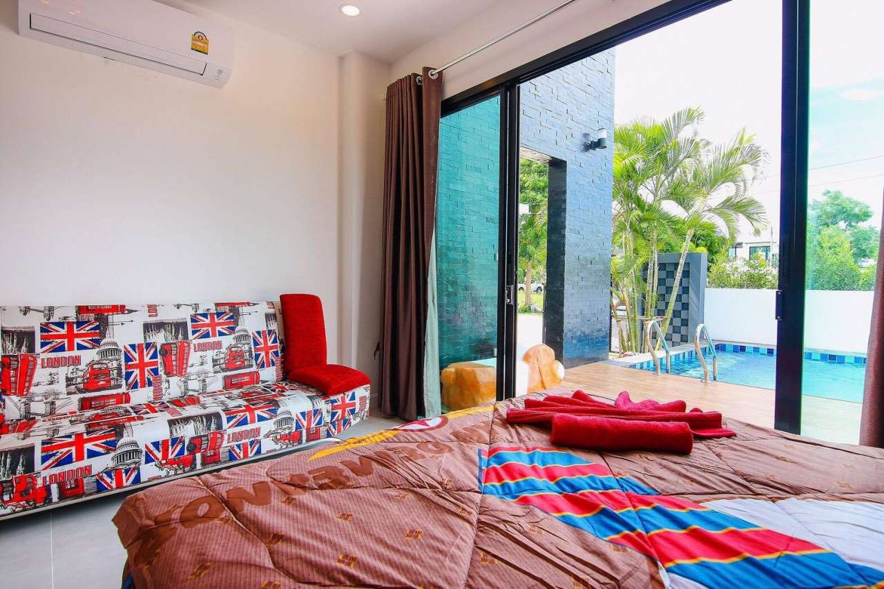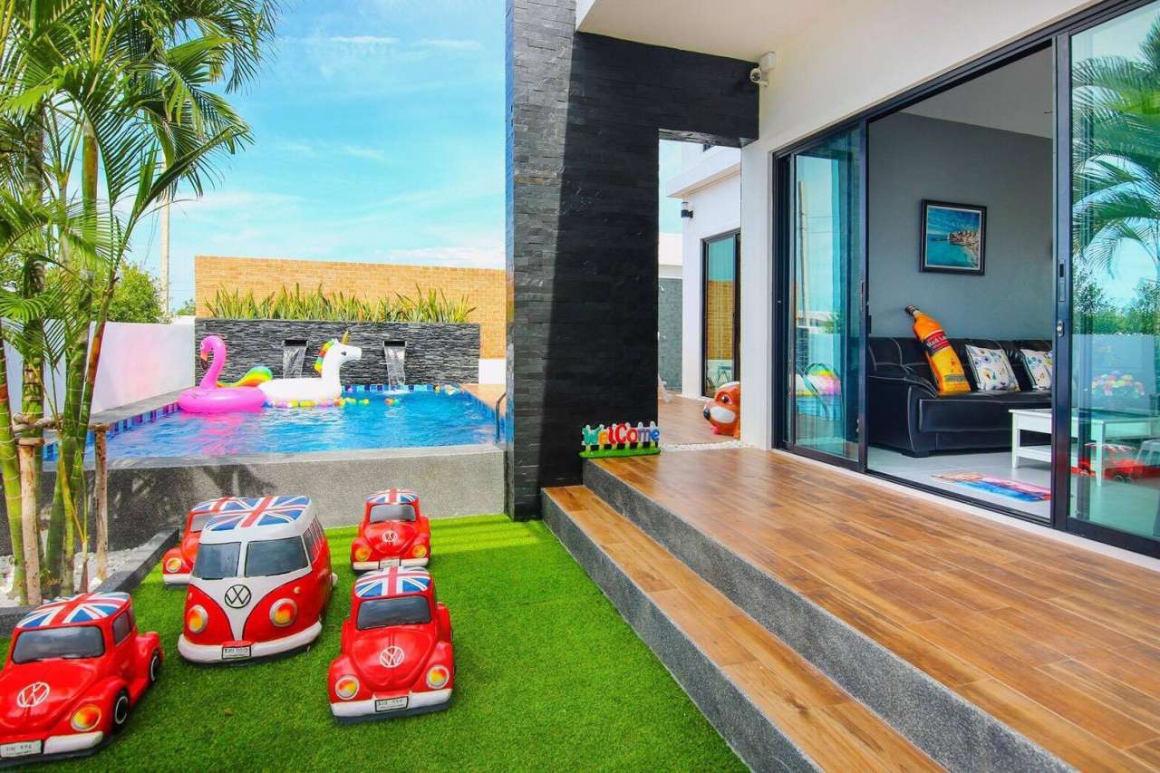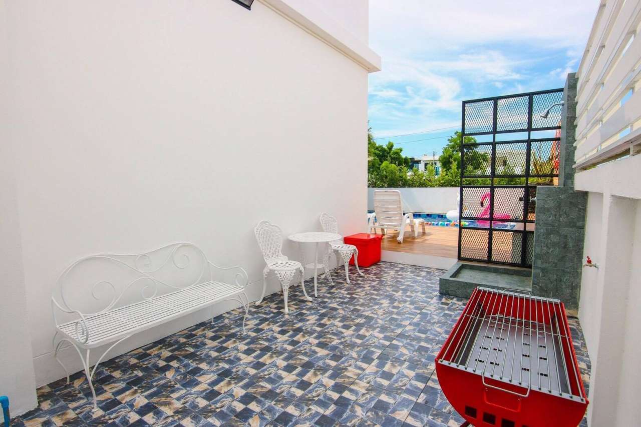 3 ห้องนอน (แอร์) 3 ห้องน้ำ 1 ห้องนั่งเล่น (แอร์) 1 ห้องครัวอุปกรณ์ครบครัน รองรับผู้เข้าพัก 8 คน สำหรับเด็กต่ำกว่า 10 ขวบ ฟรี 2 คน คนที่ 9 ขึ้นไป เพิ่มคนละ 300 บาท พักสูงสุด 15 ท่าน (พร้อมที่นอนเสริม) มีสระว่ายน้ำส่วนตัว ขนาด 3*7 เมตร สามารถเสียงดังได้ถึง 22.00 น. มีสิ่งอำนวยความสะดวกครบครัน คาราโอเกะ ไฟเธค โต๊ะพูล ทีวี ตู้เย็น อุปกรณ์เครื่องครัวครบชุด อุปกรณ์เครื่องใช้ส่วนตัวต้องเตรียมมาเอง เช่น ผ้าขนหนู แชมพู ยาสระผม
