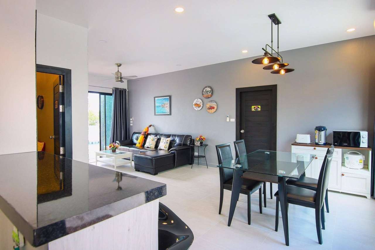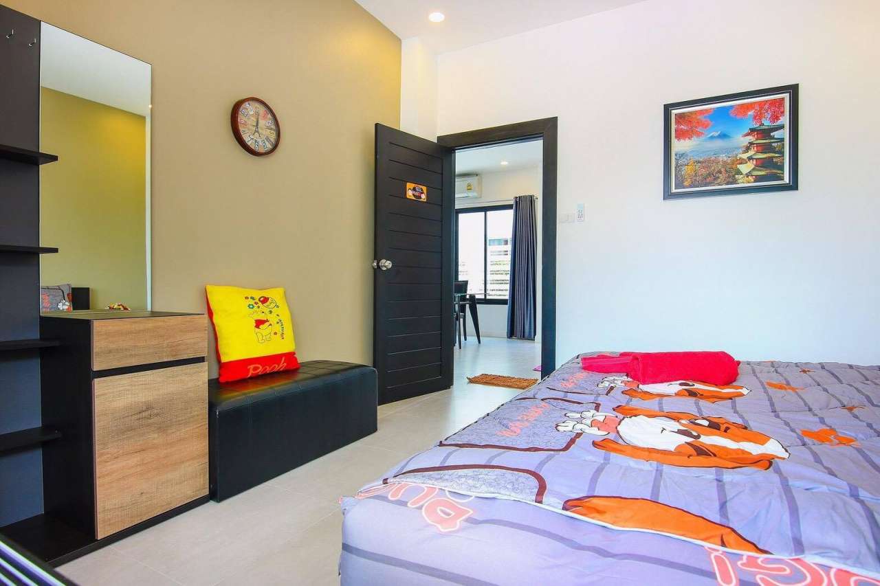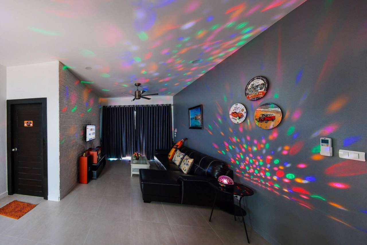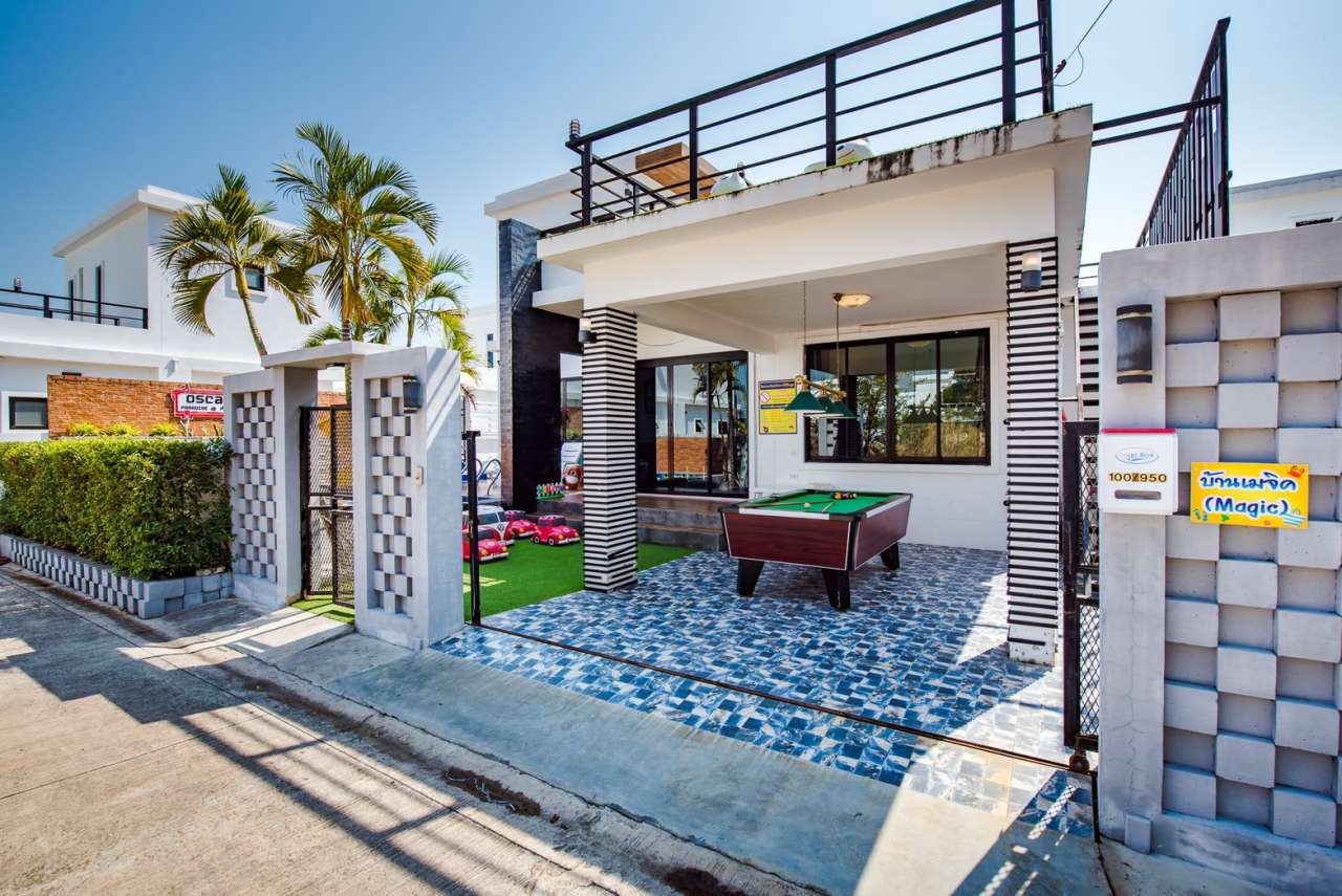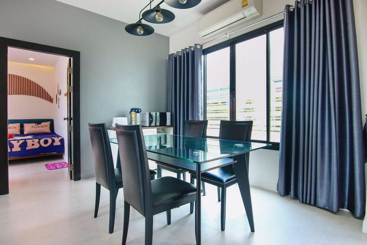3 ห้องนอน (แอร์) 3 ห้องน้ำ 1 ห้องนั่งเล่น (แอร์) 1 ห้องครัวอุปกรณ์ครบครัน รองรับผู้เข้าพัก 8 คน สำหรับเด็กต่ำกว่า 10 ขวบ ฟรี 2 คน คนที่ 9 ขึ้นไป เพิ่มคนละ 300 บาท พักสูงสุด 15 ท่าน (พร้อมที่นอนเสริม) มีสระว่ายน้ำส่วนตัว ขนาด 3*7 เมตร สามารถเสียงดังได้ถึง 22.00 น. มีสิ่งอำนวยความสะดวกครบครัน คาราโอเกะ ไฟเธค โต๊ะพูล ทีวี ตู้เย็น อุปกรณ์เครื่องครัวครบชุด อุปกรณ์เครื่องใช้ส่วนตัวต้องเตรียมมาเอง เช่น ผ้าขนหนู แชมพู ยาสระผม