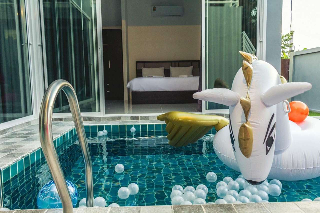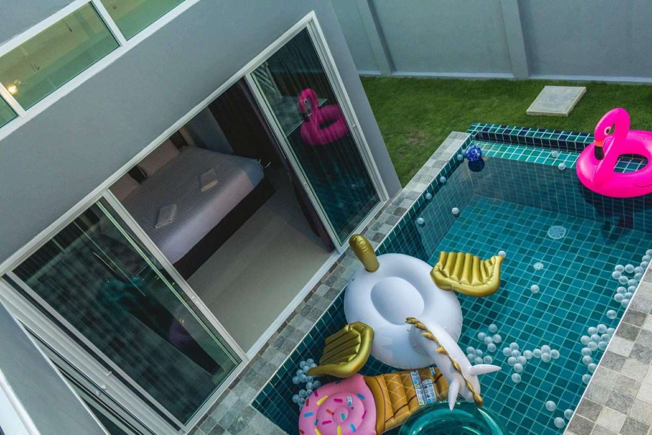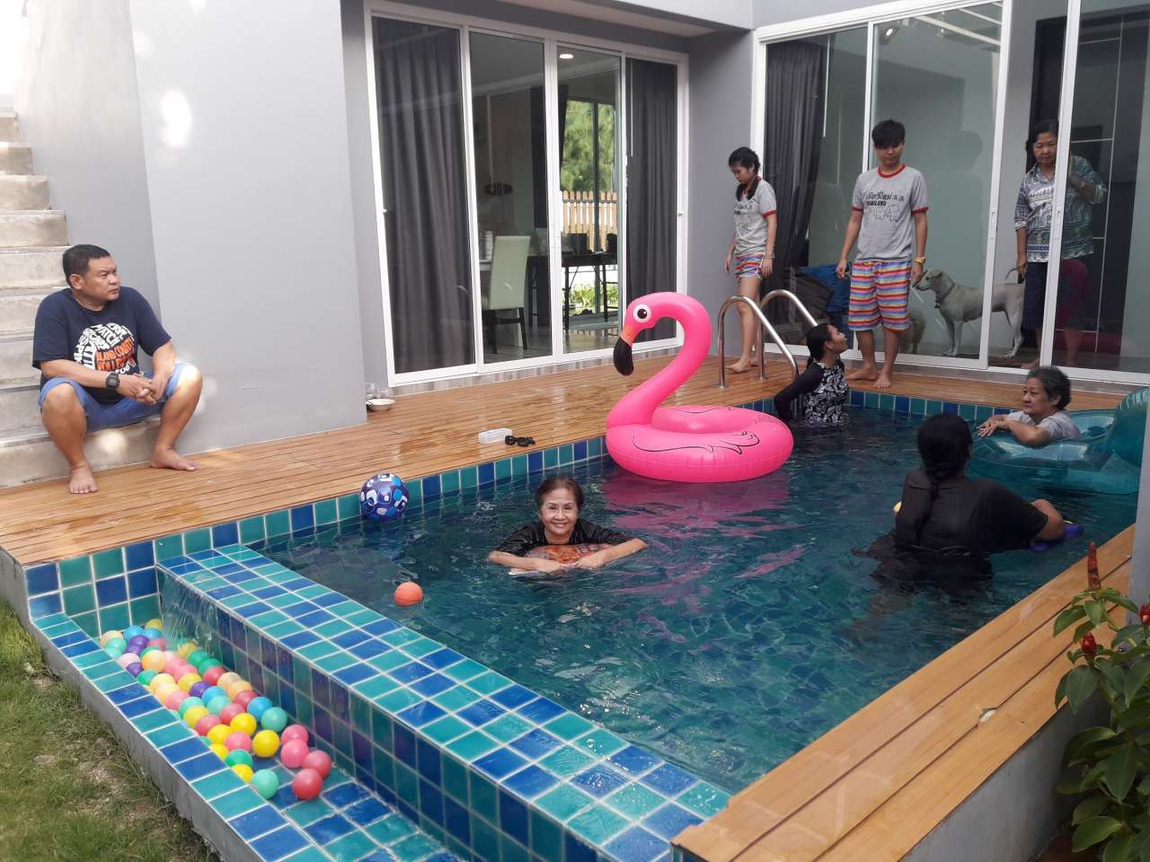 3 ห้องนอน (แอร์) 2 ห้องน้ำ 1 ห้องนั่งเล่น (แอร์) 1 ห้องครัวอุปกรณ์ครบครัน รองรับผู้เข้าพัก 8 คน คนเกินคนละ 400 บาท พักสูงสุด 15 ท่าน (พร้อมที่นอนเสริมครบทุกท่าน) มีสระว่ายน้ำส่วนตัว ขนาด 3*6 เมตร สามารถเสียงดังได้ถึง 20.00 น. มีสิ่งอำนวยความสะดวกครบครัน ฟรีคาราโอเกะ โต๊ะพูล ทีวี ตู้เย็น อุปกรณ์เครื่องครัวครบชุด (ไม่มีถังน้ำแข็งและห่วงยาง) อุปกรณ์เครื่องใช้ส่วนตัวต้องเตรียมมาเอง เช่น ผ้าขนหนู แชมพู ยาสระผม