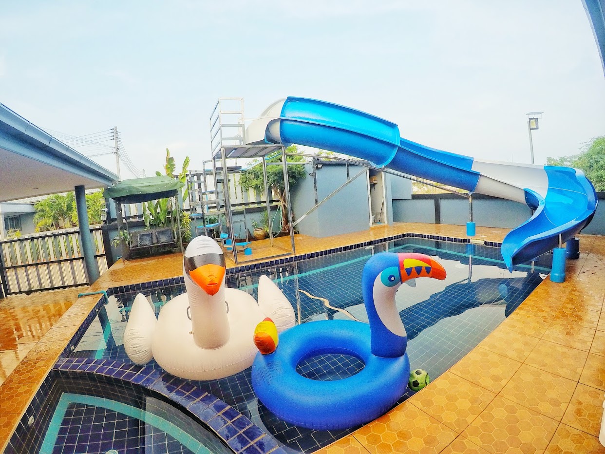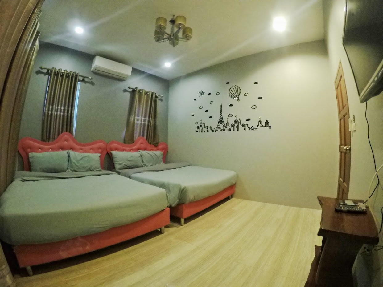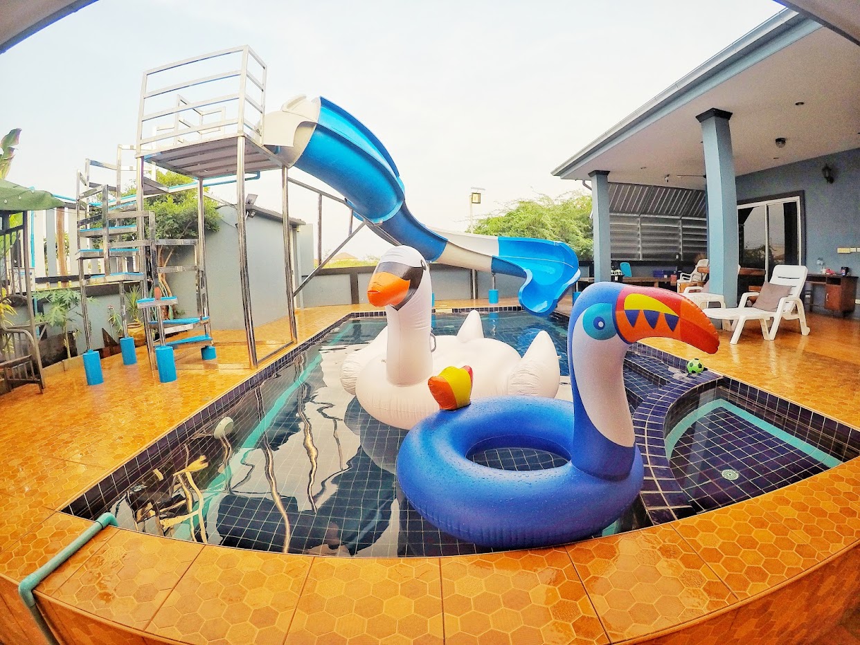 3 ห้องนอน (แอร์) 3 ห้องน้ำ 1 ห้องนั่งเล่น (แอร์) 1 ห้องครัวอุปกรณ์ครบครัน รองรับผู้เข้าพัก 10 คน คนที่ 11 ขึ้นไป เพิ่มคนละ 300 บาท พักสูงสุด 15 ท่าน (พร้อมที่นอนเสริม) มีสระว่ายน้ำส่วนตัว ขนาด 4*8 เมตร สามารถเสียงดังได้ถึง 22.00 น. สิ่งอำนวยความสะดวกครบครัน ทีวี ฟรีคาราโอเกะ โต๊ะพูล wifi ตู้เย็น อุปกรณ์เครื่องครัวครบชุด อุปกรณ์เครื่องใช้ส่วนตัวต้องเตรียมมาเอง เช่น ผ้าขนหนู แชมพู ยาสระผม