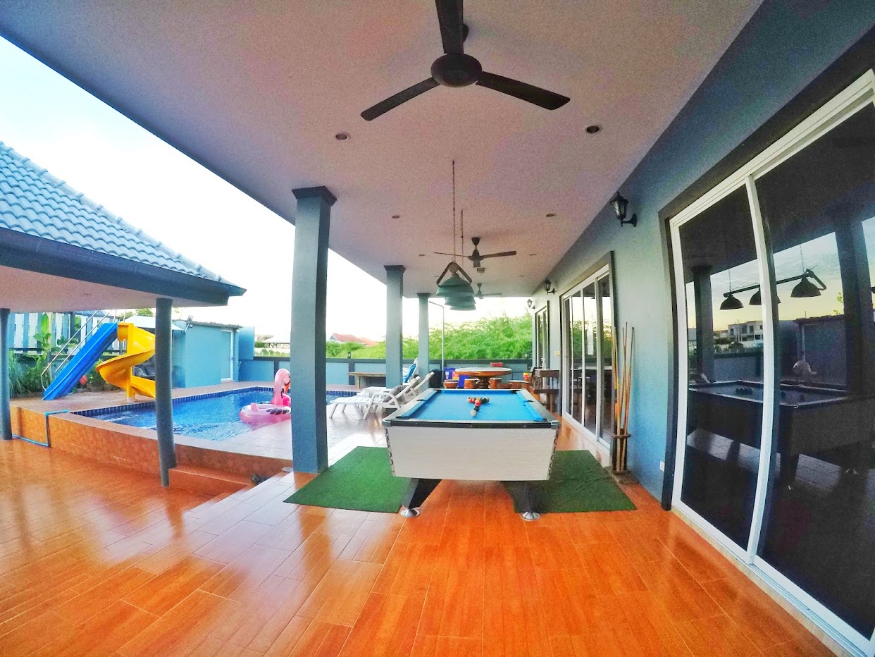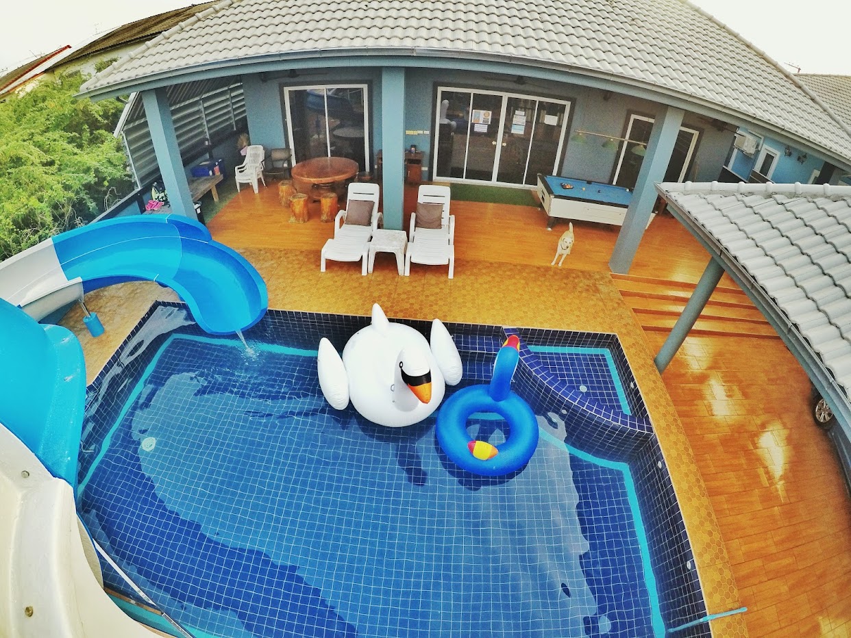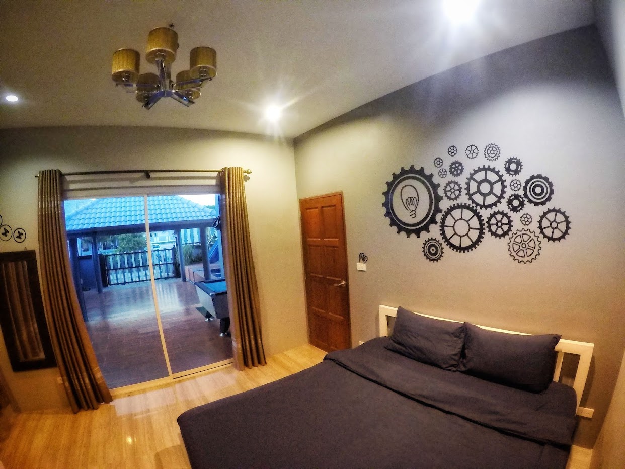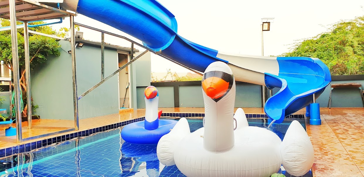 3 ห้องนอน (แอร์) 3 ห้องน้ำ 1 ห้องนั่งเล่น (แอร์) 1 ห้องครัวอุปกรณ์ครบครัน รองรับผู้เข้าพัก 10 คน คนที่ 11 ขึ้นไป เพิ่มคนละ 300 บาท พักสูงสุด 15 ท่าน (พร้อมที่นอนเสริม) มีสระว่ายน้ำส่วนตัว ขนาด 4*8 เมตร สามารถเสียงดังได้ถึง 22.00 น. สิ่งอำนวยความสะดวกครบครัน ทีวี ฟรีคาราโอเกะ โต๊ะพูล wifi ตู้เย็น อุปกรณ์เครื่องครัวครบชุด อุปกรณ์เครื่องใช้ส่วนตัวต้องเตรียมมาเอง เช่น ผ้าขนหนู แชมพู ยาสระผม