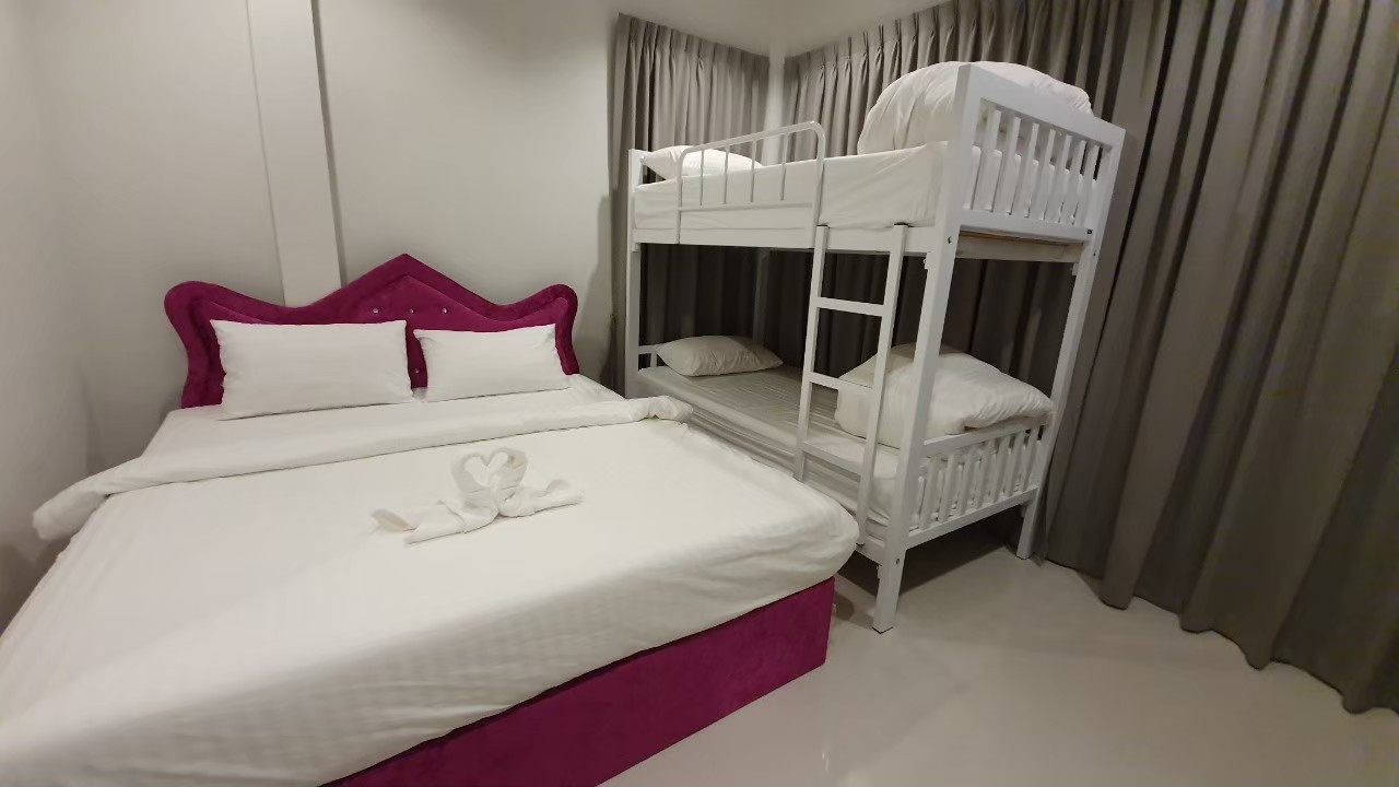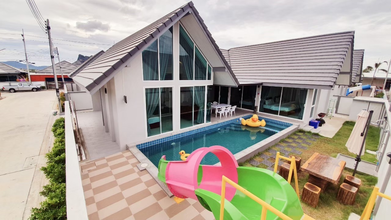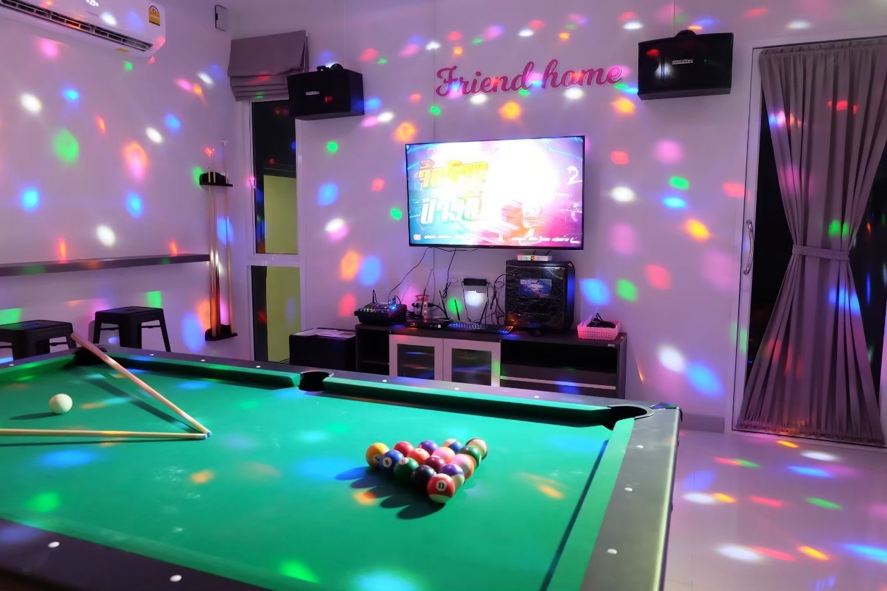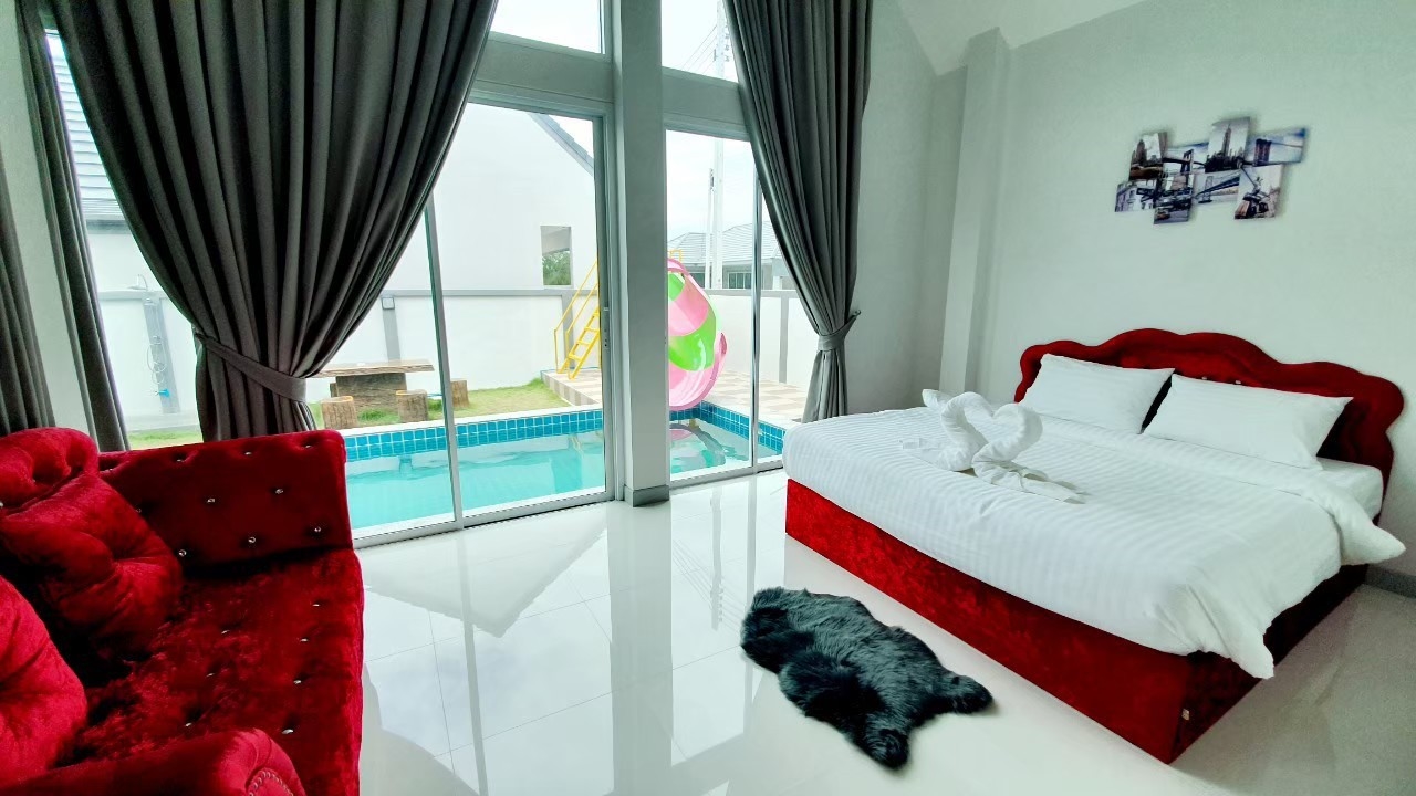 4 ห้องนอน (แอร์) 3 ห้องน้ำ 1 ห้องนั่งเล่น (แอร์) 1 ห้องครัวอุปกรณ์ครบครัน รองรับผู้เข้าพัก 15 คน คนที่ 16 ขึ้นไป เพิ่มคนละ 300 บาท พักสูงสุด 18 ท่าน มีสระว่ายน้ำส่วนตัว ขนาด 4*6 เมตร สามารถเสียงดังได้ถึง 22.00 น. สิ่งอำนวยความสะดวกครบครัน ทีวี ฟรีคาราโอเกะ โต๊ะพูล สไลเดอร์ wifi ตู้เย็น อุปกรณ์เครื่องครัวครบชุด อุปกรณ์เครื่องใช้ส่วนตัวต้องเตรียมมาเอง เช่น ผ้าขนหนู แชมพู ยาสระผม (ห้ามนำสัตว์เลี้ยงเข้าพักทุกชนิด)