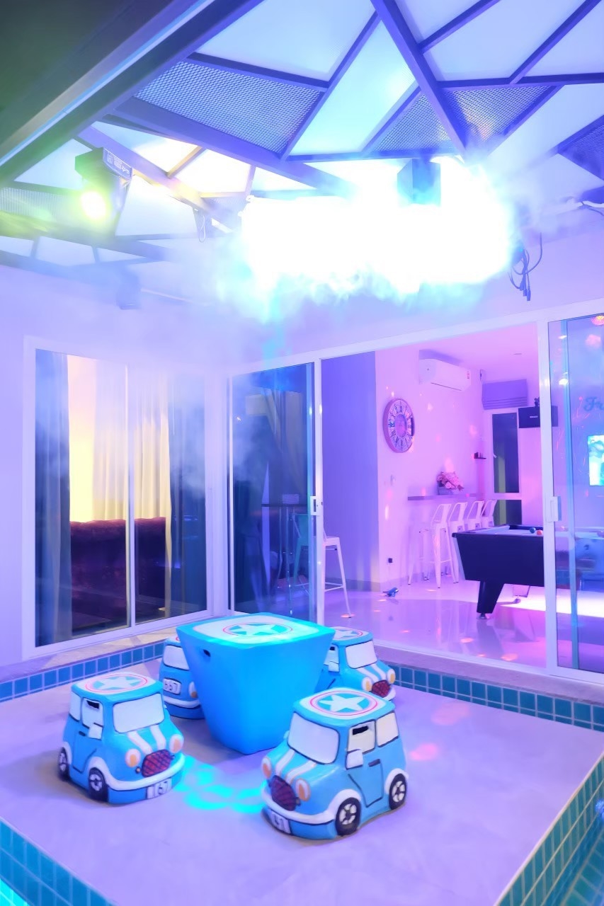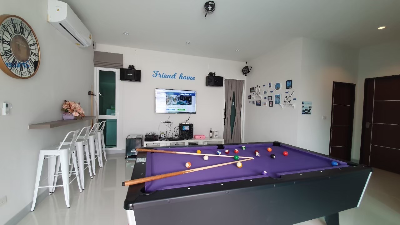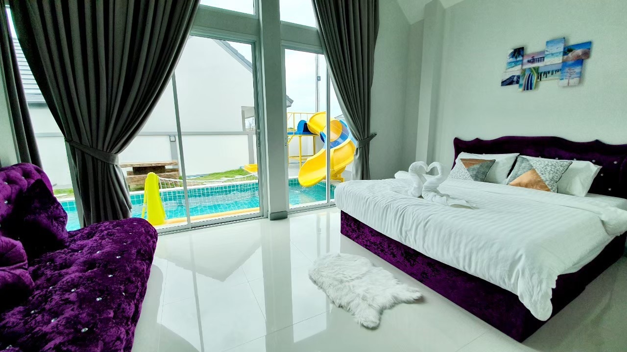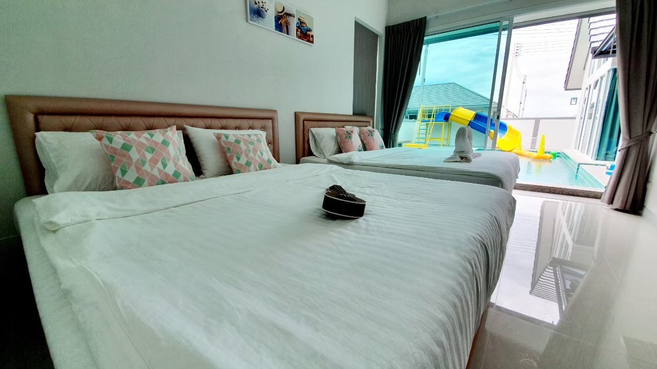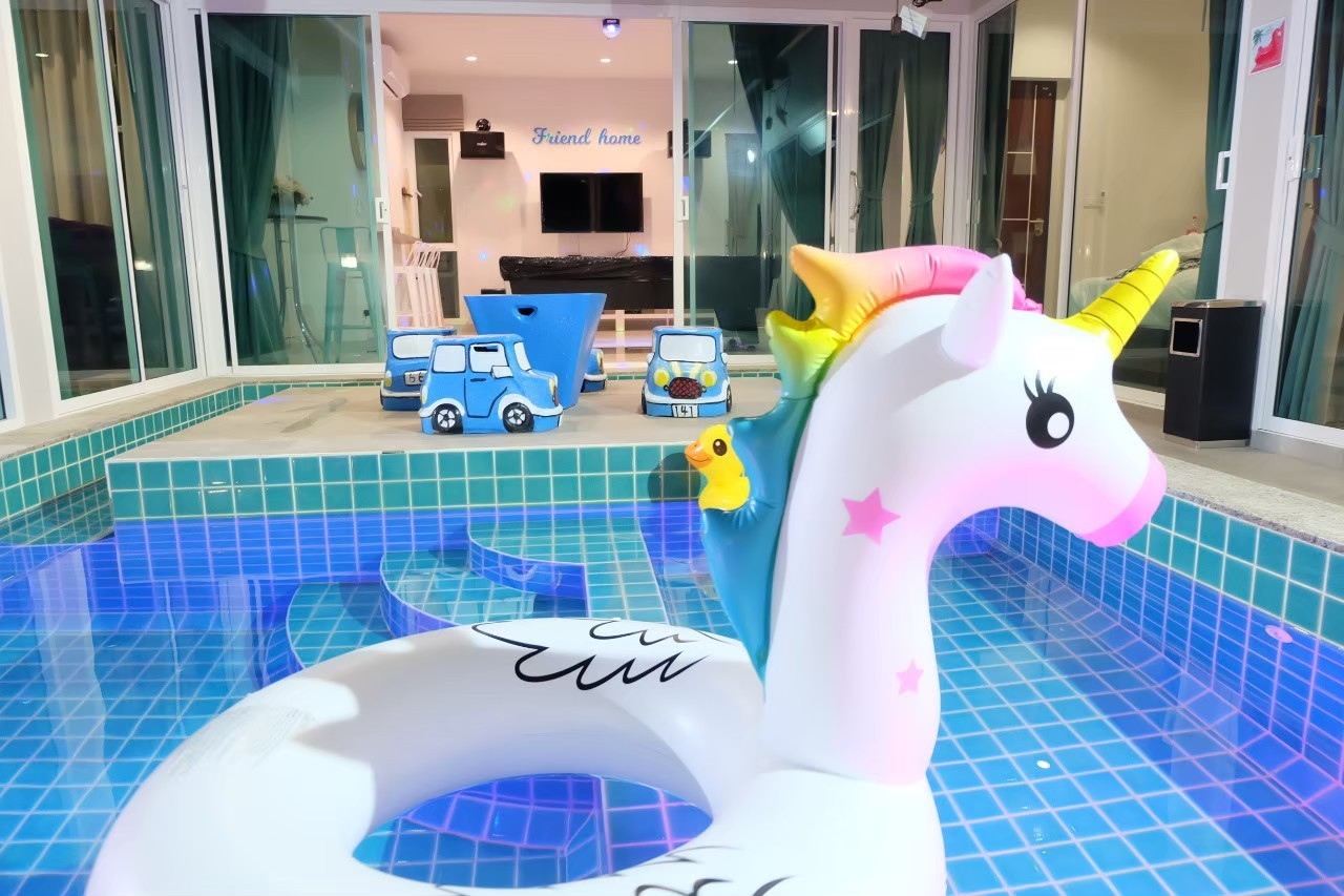 4 ห้องนอน (แอร์) 3 ห้องน้ำ 1 ห้องนั่งเล่น (แอร์) 1 ห้องครัวอุปกรณ์ครบครัน รองรับผู้เข้าพัก 15 คน คนที่ 16 ขึ้นไป เพิ่มคนละ 300 บาท พักสูงสุด 18 ท่าน มีสระว่ายน้ำส่วนตัว ขนาด 4*6 เมตร สามารถเสียงดังได้ถึง 22.00 น. สิ่งอำนวยความสะดวกครบครัน ทีวี ฟรีคาราโอเกะ โต๊ะพูล สไลเดอร์ wifi ตู้เย็น อุปกรณ์เครื่องครัวครบชุด อุปกรณ์เครื่องใช้ส่วนตัวต้องเตรียมมาเอง เช่น ผ้าขนหนู แชมพู ยาสระผม (ห้ามนำสัตว์เลี้ยงเข้าพักทุกชนิด)