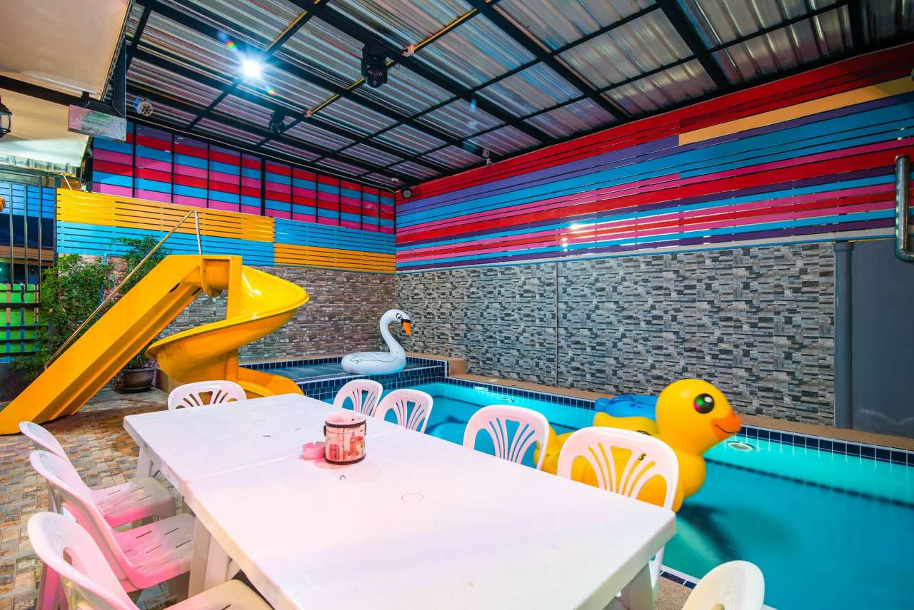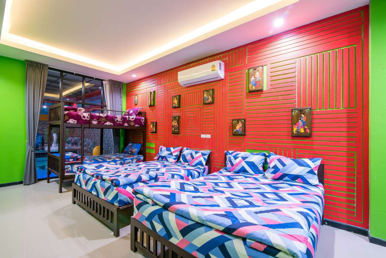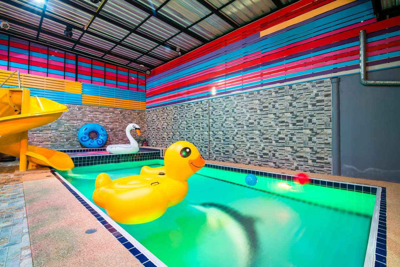 5 ห้องนอน (แอร์) 3 ห้องน้ำ 1 ห้องนั่งเล่น (แอร์) 1 ห้องครัวอุปกรณ์ครบครัน รองรับผู้เข้าพัก 22 คน คนที่ 23 ขึ้นไป เพิ่มคนละ 300 บาท พักสูงสุด 30 ท่าน (พร้อมที่นอนเสริมครบทุกท่าน) มีสระว่ายน้ำส่วนตัวพร้อมสระเด็ก ขนาด 4*6 เมตร สามารถเสียงดังได้ถึง 22.00 น. มีสิ่งอำนวยความสะดวกครบครัน ทีวี ตู้เย็น คาราโอเกะ สไลเดอร์ ไฟเธค โต๊ะสนุก Wi-Fi อุปกรณ์เครื่องครัวครบชุด อุปกรณ์เครื่องใช้ส่วนตัวต้องเตรียมมาเอง เช่น ผ้าขนหนู แชมพู ยาสระผม