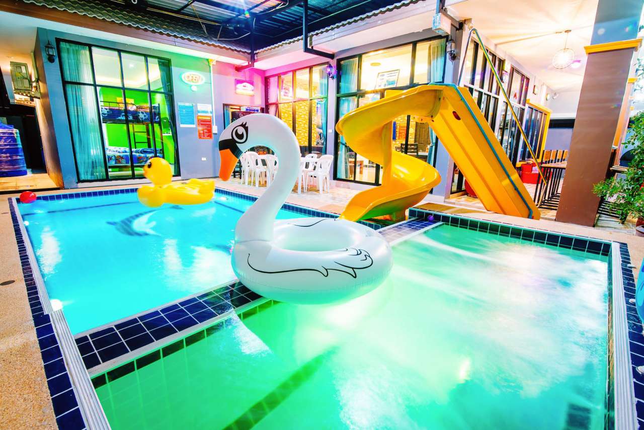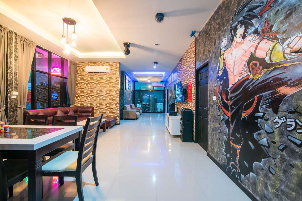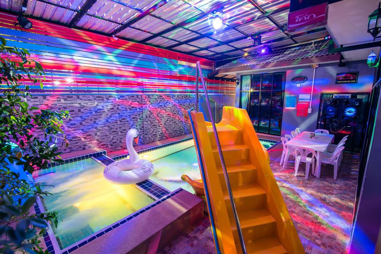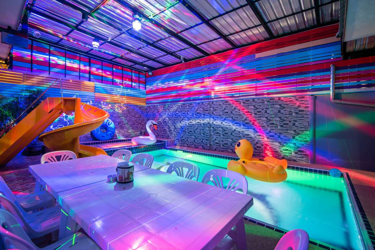 5 ห้องนอน (แอร์) 3 ห้องน้ำ 1 ห้องนั่งเล่น (แอร์) 1 ห้องครัวอุปกรณ์ครบครัน รองรับผู้เข้าพัก 22 คน คนที่ 23 ขึ้นไป เพิ่มคนละ 300 บาท พักสูงสุด 30 ท่าน (พร้อมที่นอนเสริมครบทุกท่าน) มีสระว่ายน้ำส่วนตัวพร้อมสระเด็ก ขนาด 4*6 เมตร สามารถเสียงดังได้ถึง 22.00 น. มีสิ่งอำนวยความสะดวกครบครัน ทีวี ตู้เย็น คาราโอเกะ สไลเดอร์ ไฟเธค โต๊ะสนุก Wi-Fi อุปกรณ์เครื่องครัวครบชุด อุปกรณ์เครื่องใช้ส่วนตัวต้องเตรียมมาเอง เช่น ผ้าขนหนู แชมพู ยาสระผม