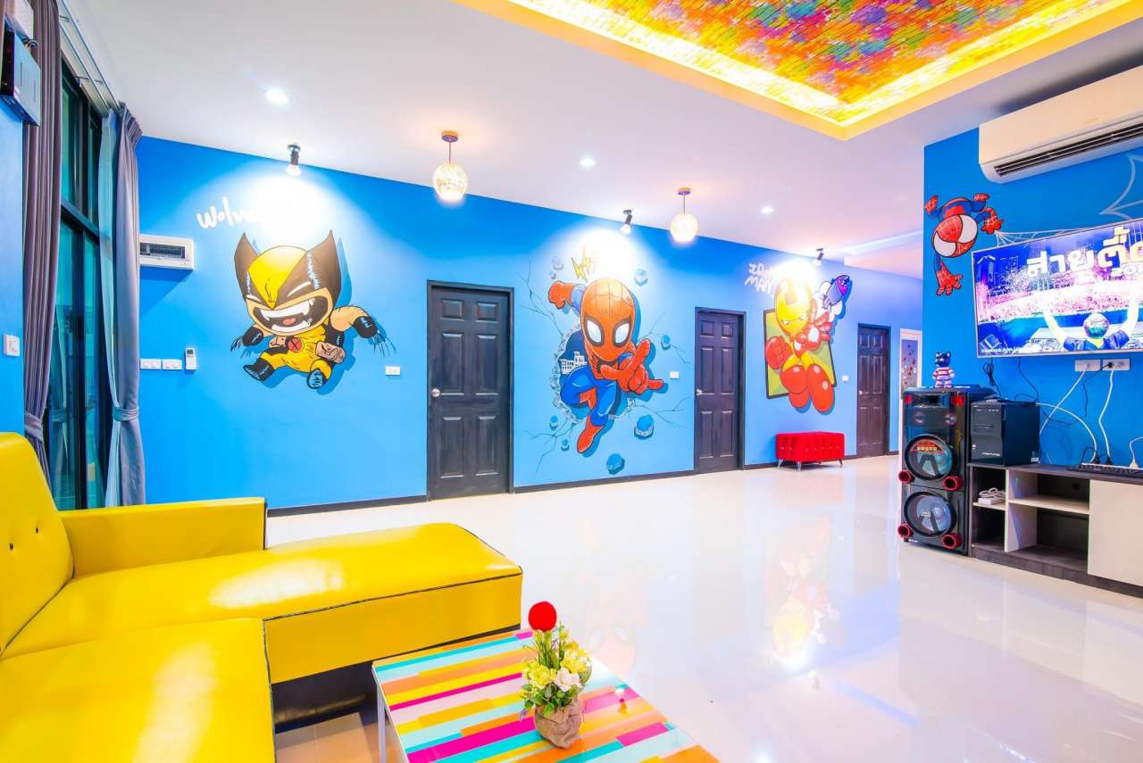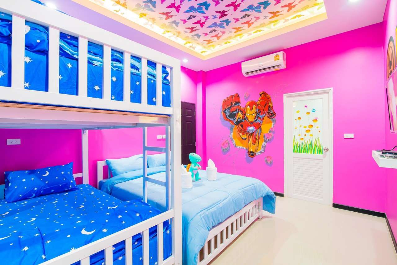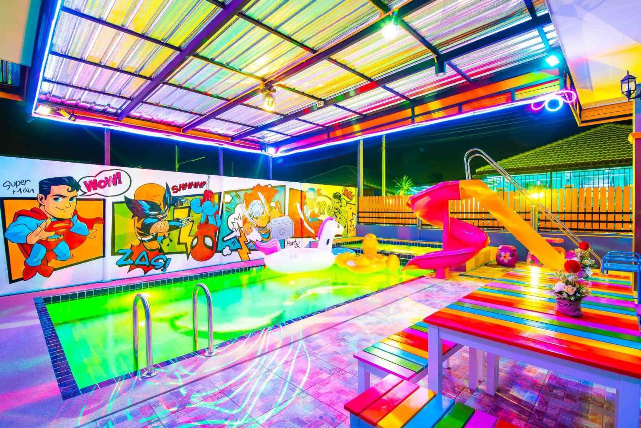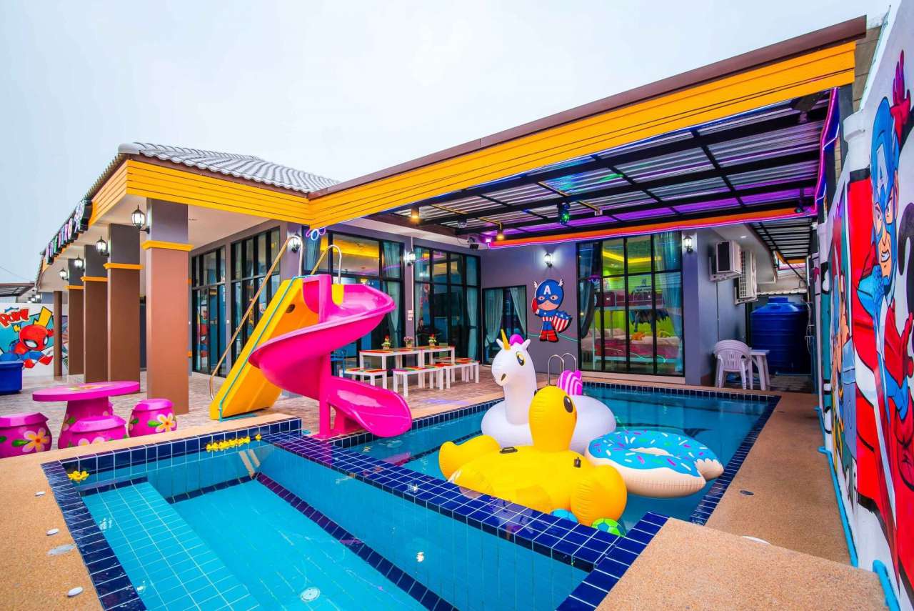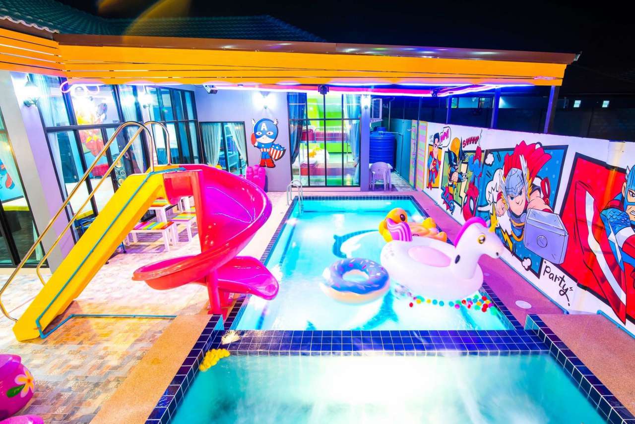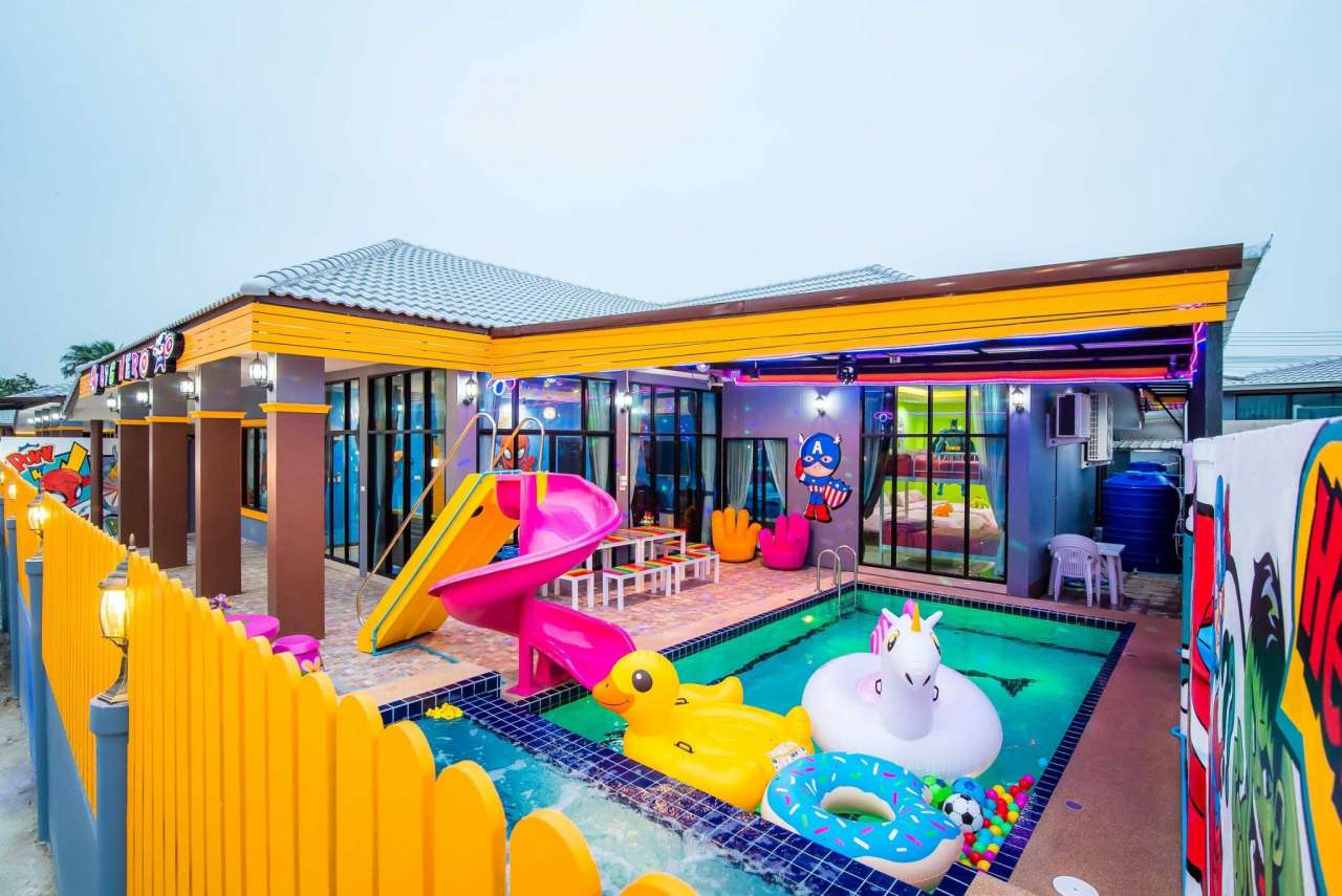 5 ห้องนอน (แอร์) 3 ห้องน้ำ 1 ห้องนั่งเล่น (แอร์) 1 ห้องครัวอุปกรณ์ครบครัน รองรับผู้เข้าพัก 20 คน คนที่ 21 ขึ้นไป เพิ่มคนละ 300 บาท พักสูงสุด 30 ท่าน (พร้อมที่นอนเสริมครบทุกท่าน) มีสระว่ายน้ำส่วนตัว ขนาด 4*7 เมตร สามารถเสียงดังได้ถึง 22.00 น. มีสิ่งอำนวยความสะดวกครบครัน ทีวี ตู้เย็น คาราโอเกะ สไลเดอร์ ไฟเธค โต๊ะสนุก Wi-Fi อุปกรณ์เครื่องครัวครบชุด อุปกรณ์เครื่องใช้ส่วนตัวต้องเตรียมมาเอง เช่น ผ้าขนหนู แชมพู ยาสระผม