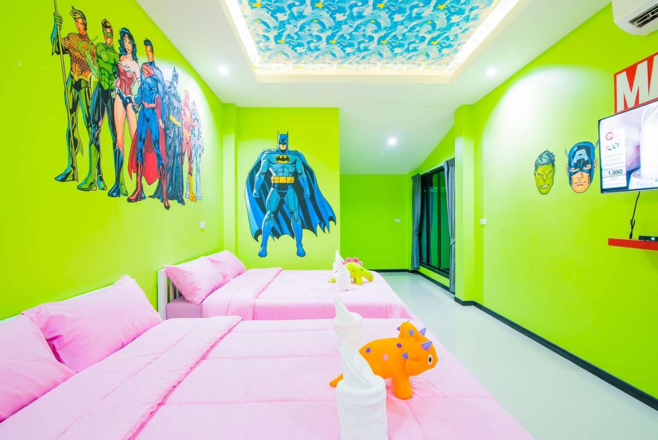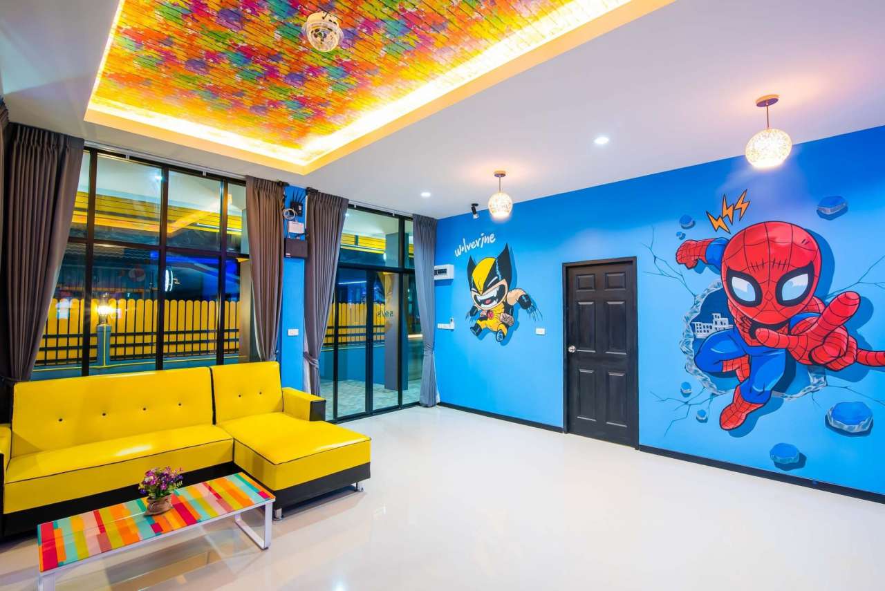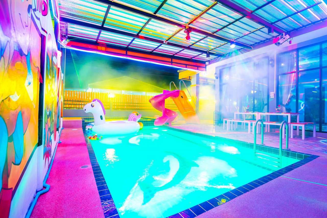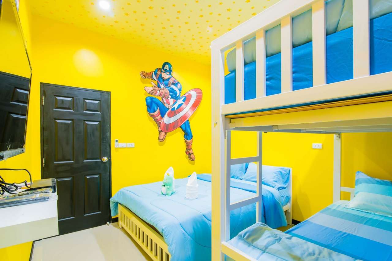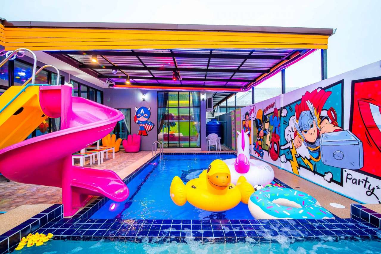 5 ห้องนอน (แอร์) 3 ห้องน้ำ 1 ห้องนั่งเล่น (แอร์) 1 ห้องครัวอุปกรณ์ครบครัน รองรับผู้เข้าพัก 20 คน คนที่ 21 ขึ้นไป เพิ่มคนละ 300 บาท พักสูงสุด 30 ท่าน (พร้อมที่นอนเสริมครบทุกท่าน) มีสระว่ายน้ำส่วนตัว ขนาด 4*7 เมตร สามารถเสียงดังได้ถึง 22.00 น. มีสิ่งอำนวยความสะดวกครบครัน ทีวี ตู้เย็น คาราโอเกะ สไลเดอร์ ไฟเธค โต๊ะสนุก Wi-Fi อุปกรณ์เครื่องครัวครบชุด อุปกรณ์เครื่องใช้ส่วนตัวต้องเตรียมมาเอง เช่น ผ้าขนหนู แชมพู ยาสระผม