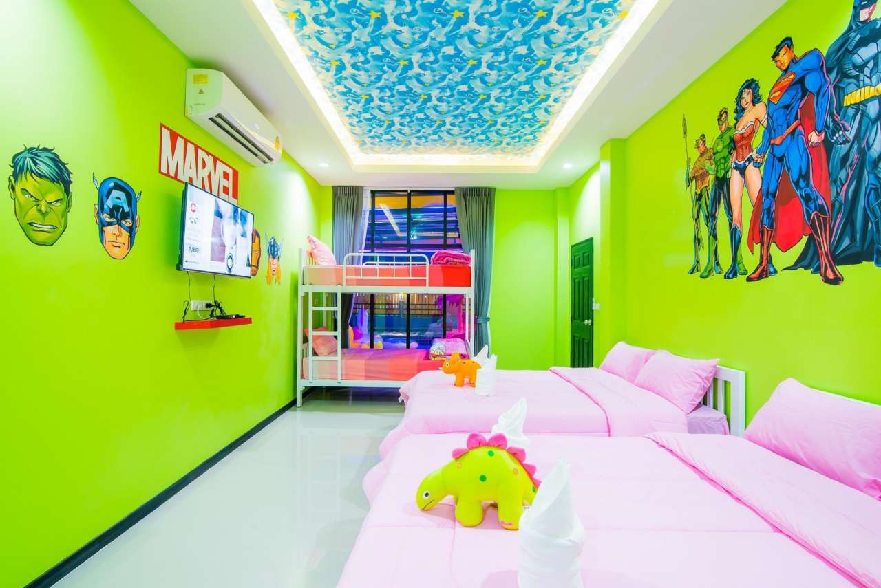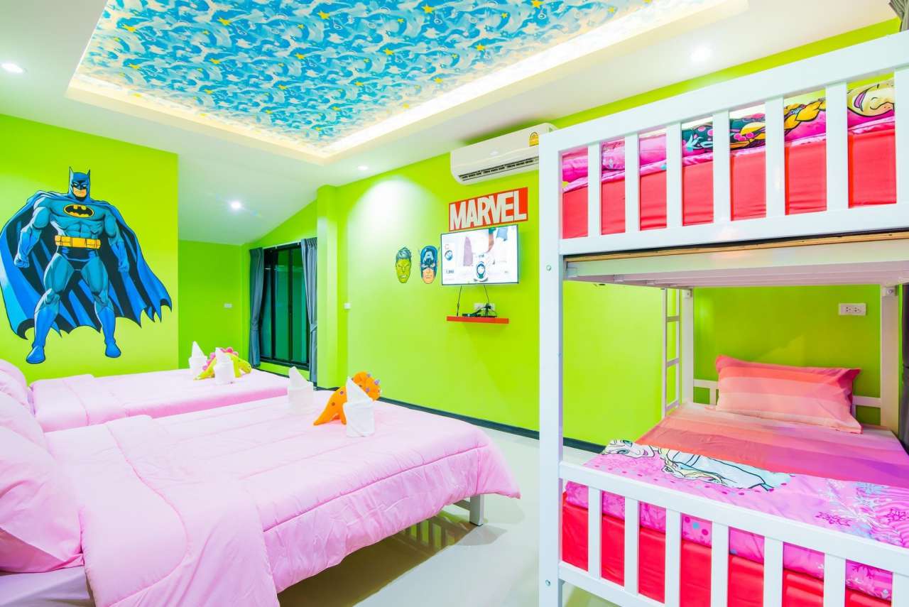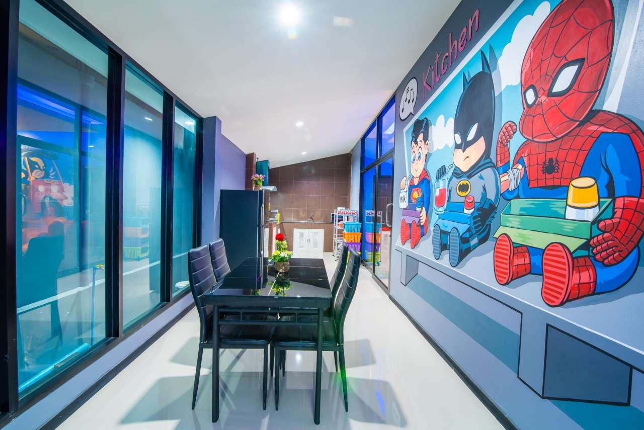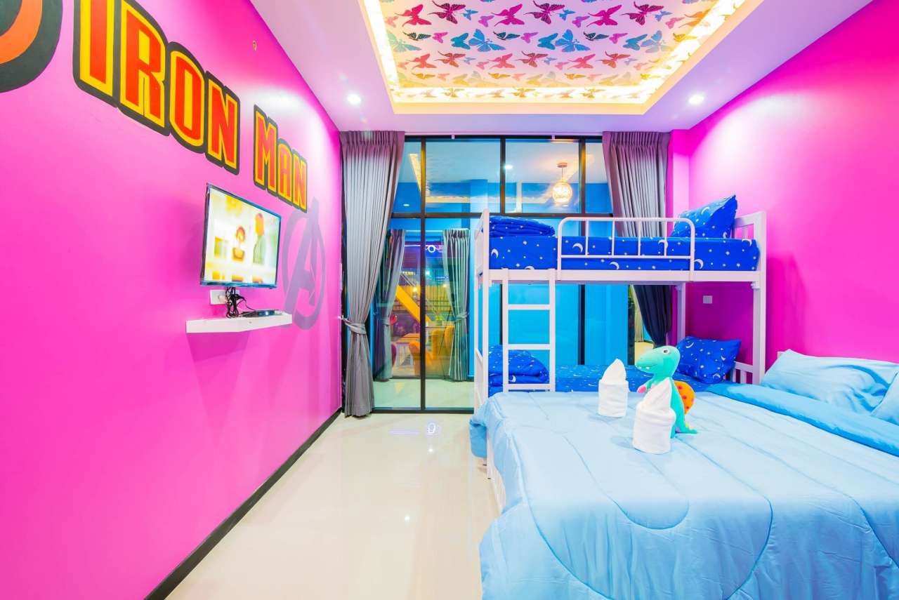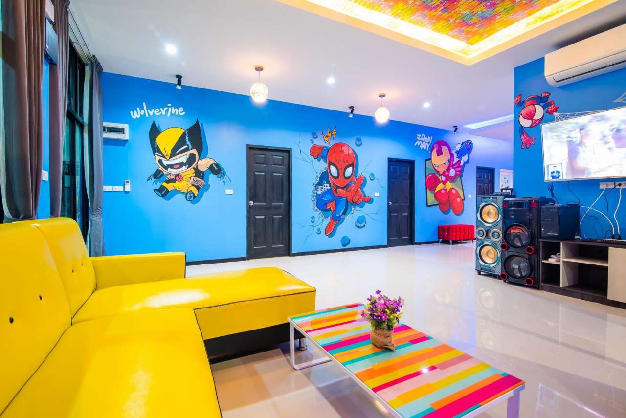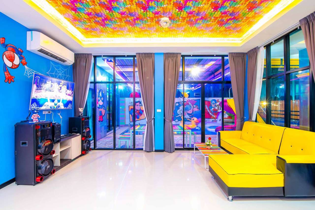 5 ห้องนอน (แอร์) 3 ห้องน้ำ 1 ห้องนั่งเล่น (แอร์) 1 ห้องครัวอุปกรณ์ครบครัน รองรับผู้เข้าพัก 20 คน คนที่ 21 ขึ้นไป เพิ่มคนละ 300 บาท พักสูงสุด 30 ท่าน (พร้อมที่นอนเสริมครบทุกท่าน) มีสระว่ายน้ำส่วนตัว ขนาด 4*7 เมตร สามารถเสียงดังได้ถึง 22.00 น. มีสิ่งอำนวยความสะดวกครบครัน ทีวี ตู้เย็น คาราโอเกะ สไลเดอร์ ไฟเธค โต๊ะสนุก Wi-Fi อุปกรณ์เครื่องครัวครบชุด อุปกรณ์เครื่องใช้ส่วนตัวต้องเตรียมมาเอง เช่น ผ้าขนหนู แชมพู ยาสระผม