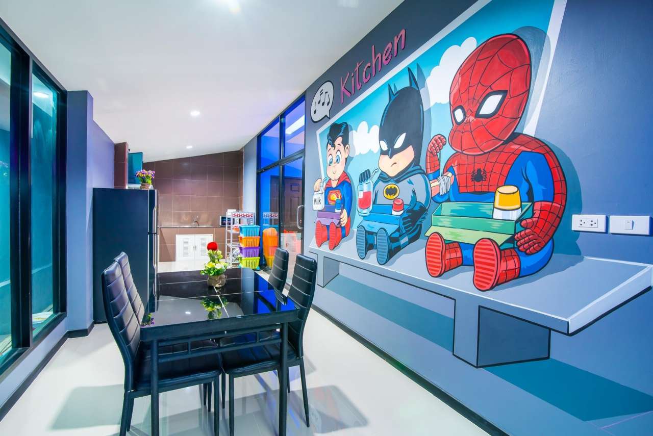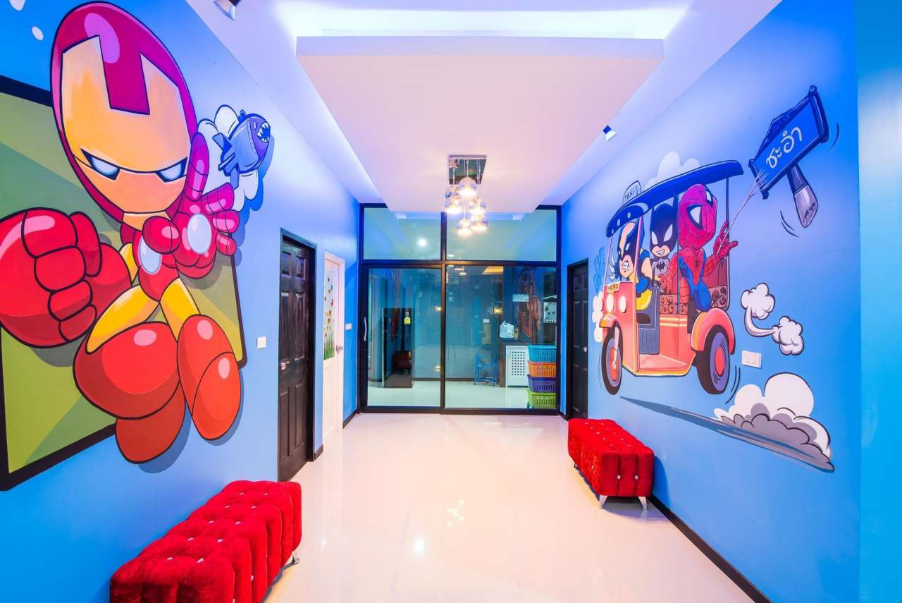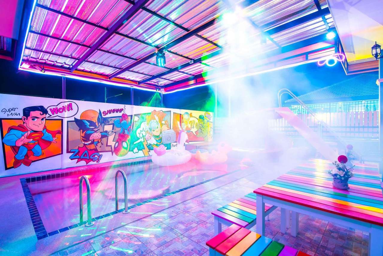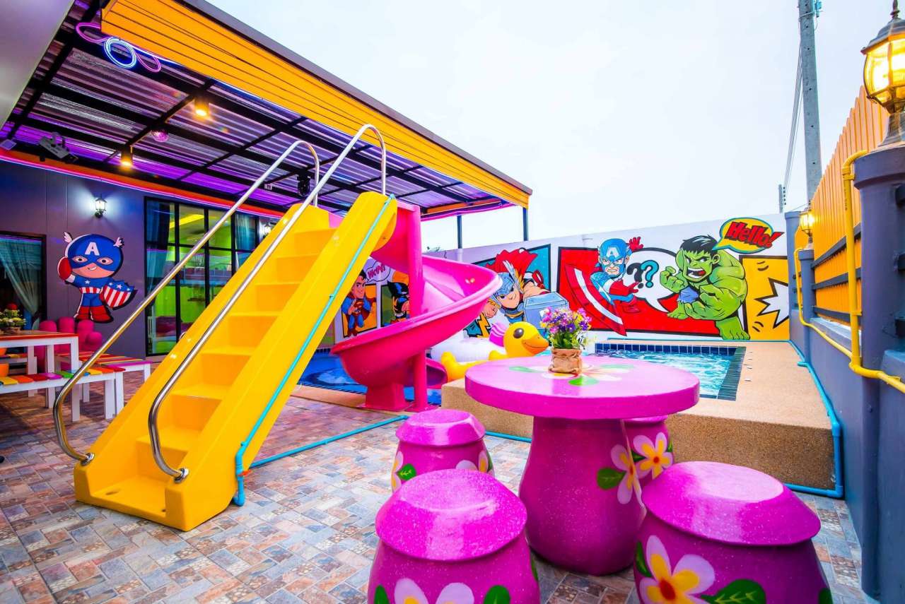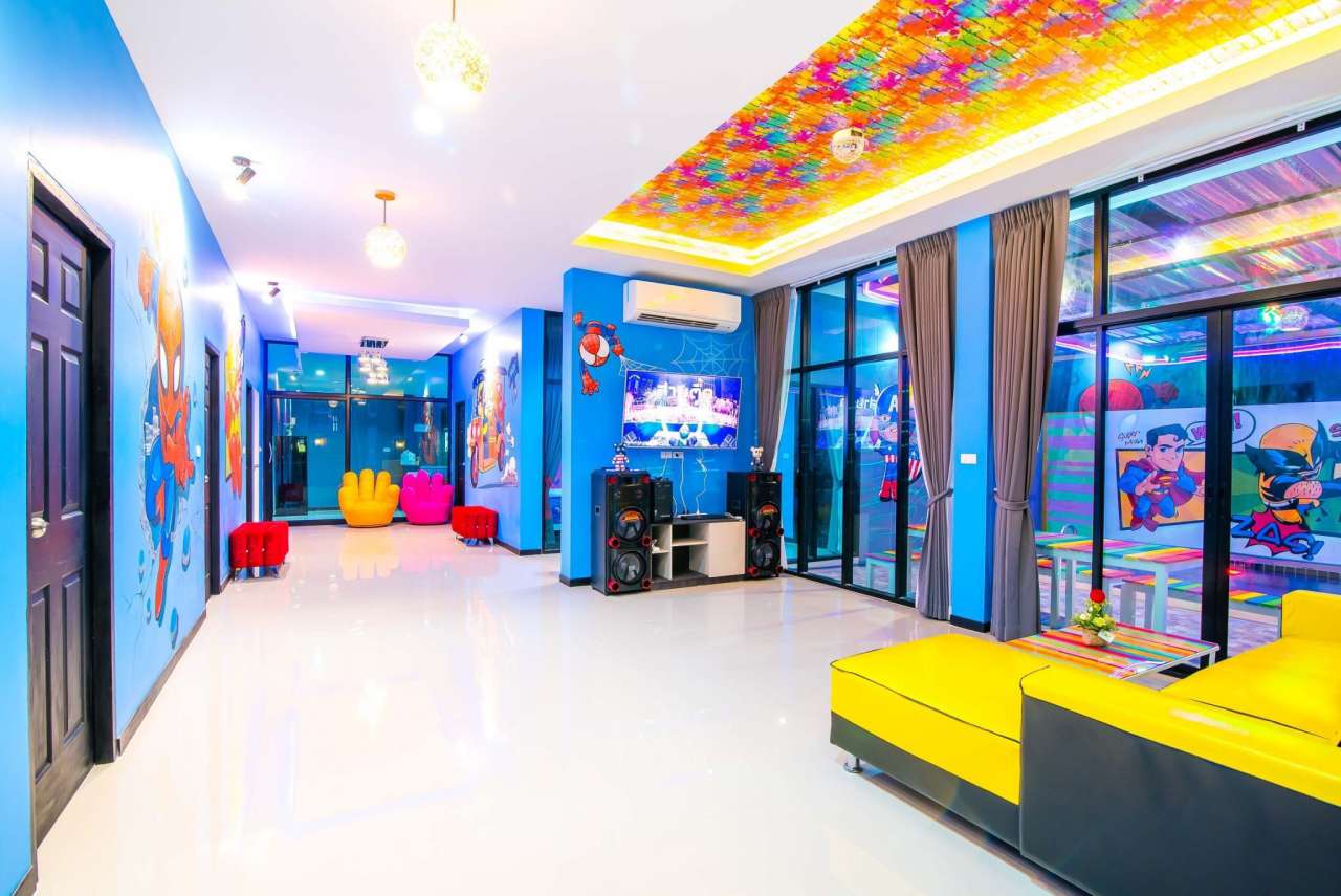 5 ห้องนอน (แอร์) 3 ห้องน้ำ 1 ห้องนั่งเล่น (แอร์) 1 ห้องครัวอุปกรณ์ครบครัน รองรับผู้เข้าพัก 20 คน คนที่ 21 ขึ้นไป เพิ่มคนละ 300 บาท พักสูงสุด 30 ท่าน (พร้อมที่นอนเสริมครบทุกท่าน) มีสระว่ายน้ำส่วนตัว ขนาด 4*7 เมตร สามารถเสียงดังได้ถึง 22.00 น. มีสิ่งอำนวยความสะดวกครบครัน ทีวี ตู้เย็น คาราโอเกะ สไลเดอร์ ไฟเธค โต๊ะสนุก Wi-Fi อุปกรณ์เครื่องครัวครบชุด อุปกรณ์เครื่องใช้ส่วนตัวต้องเตรียมมาเอง เช่น ผ้าขนหนู แชมพู ยาสระผม