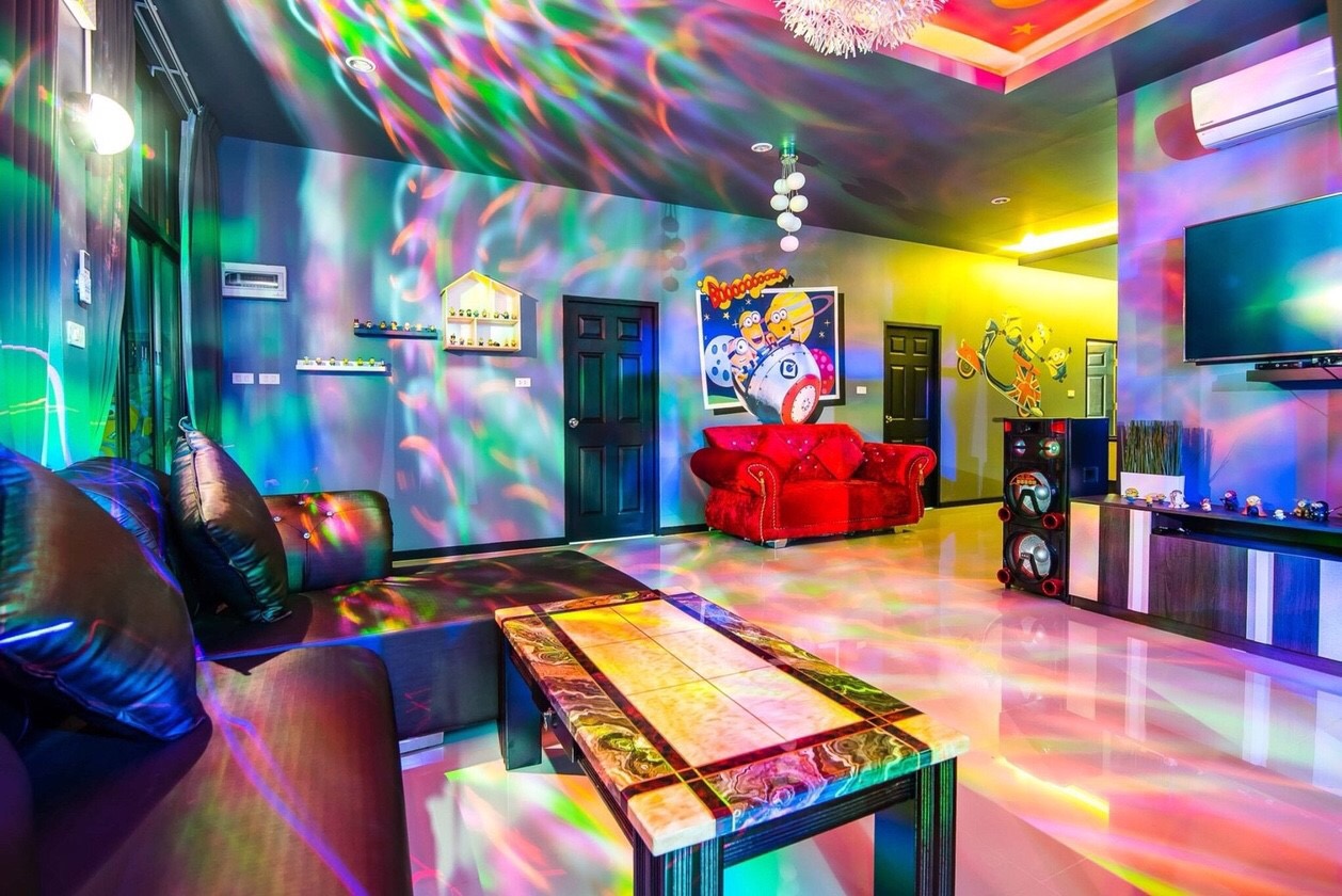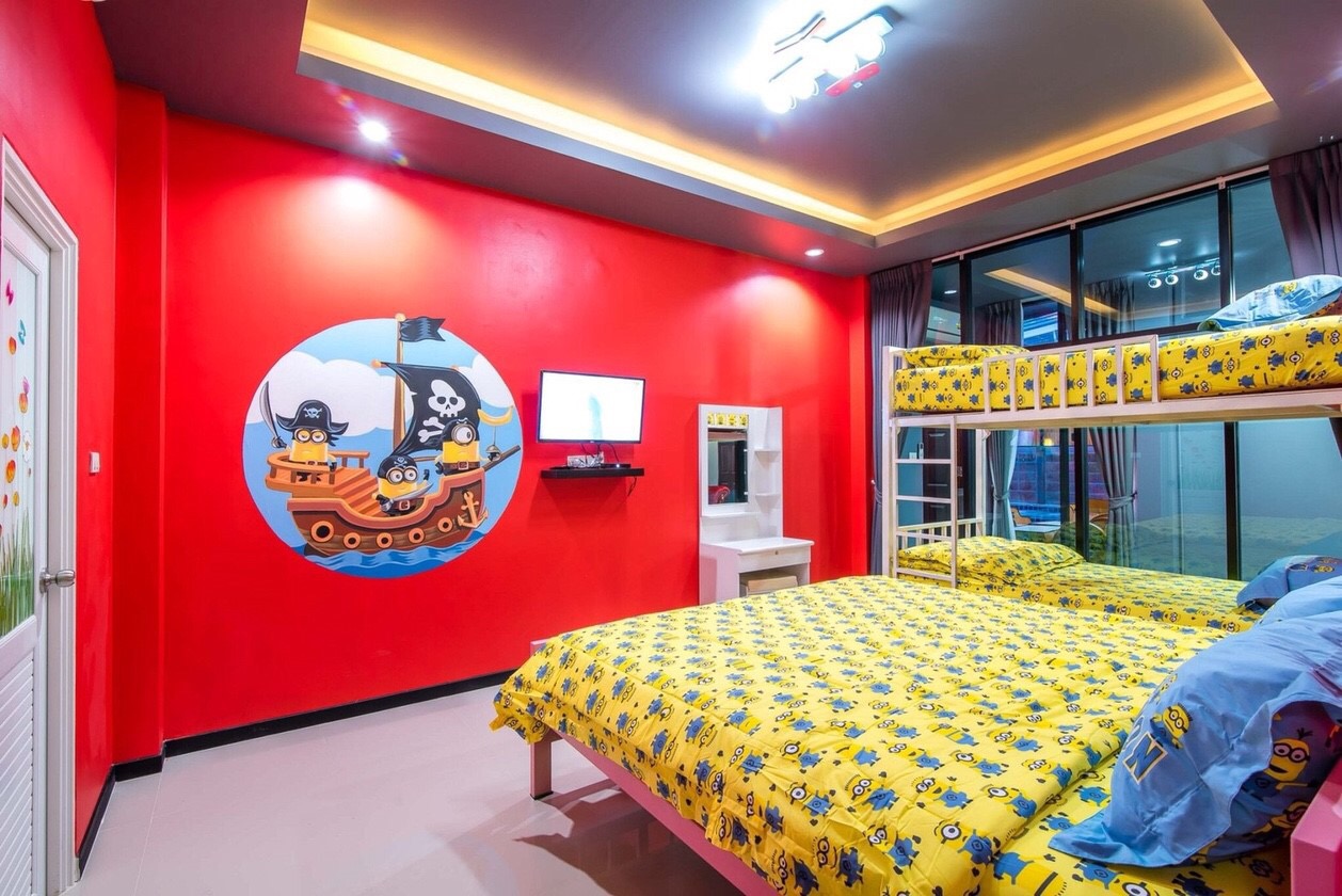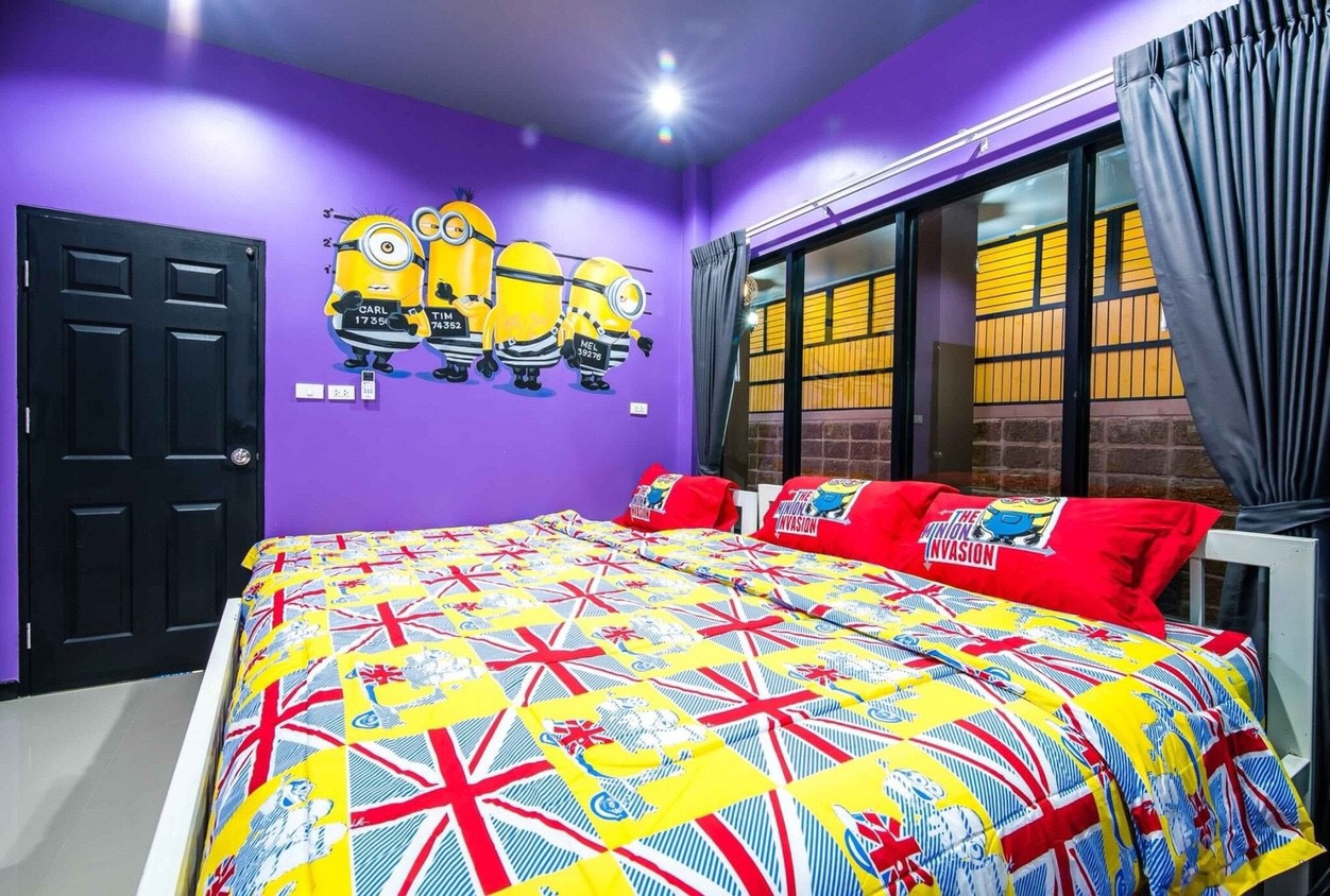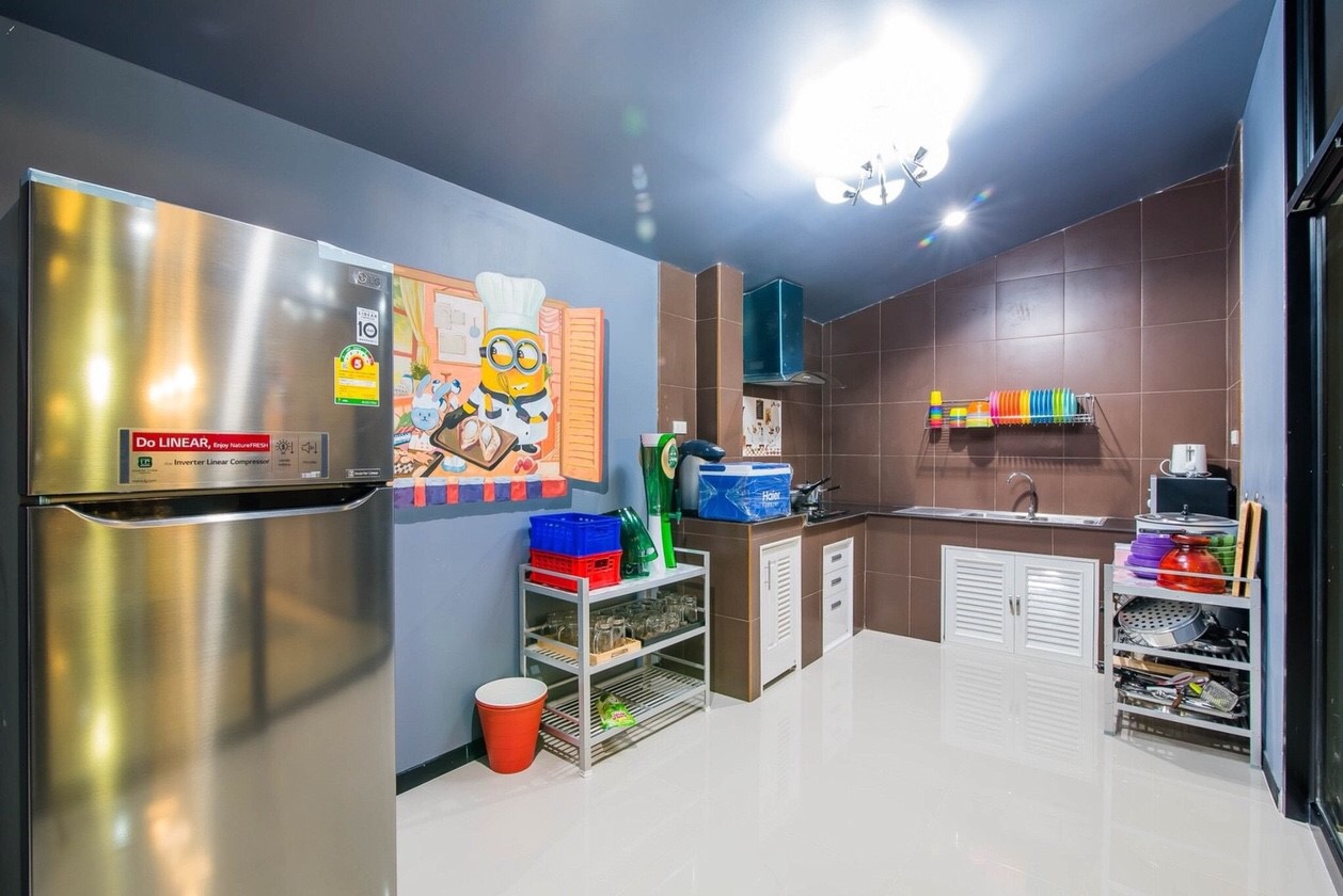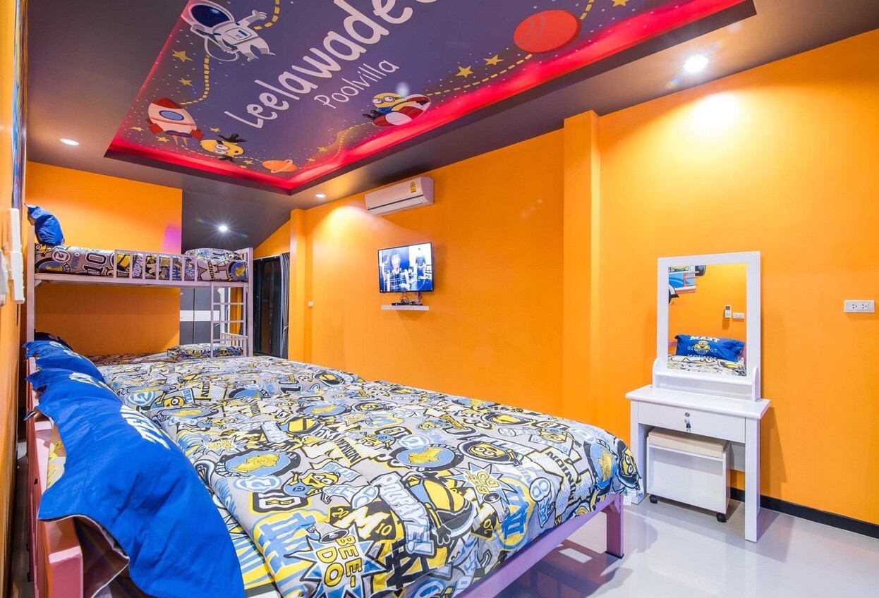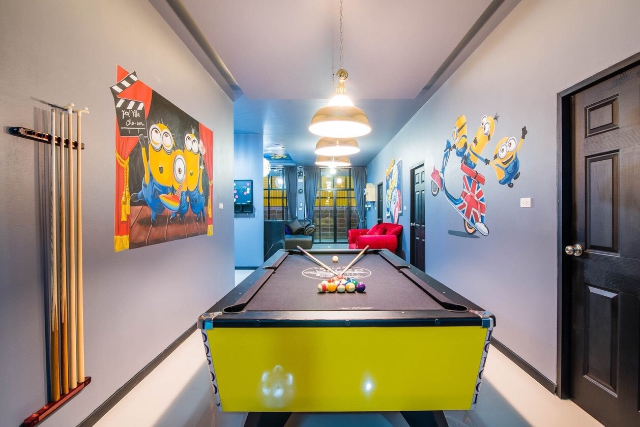 5 ห้องนอน (แอร์) 3 ห้องน้ำ 1 ห้องนั่งเล่น (แอร์) 1 ห้องครัวอุปกรณ์ครบครัน รองรับผู้เข้าพัก 20 คน คนที่ 21 ขึ้นไป เพิ่มคนละ 300 บาท พักสูงสุด 30 ท่าน (พร้อมที่นอนเสริมครบทุกท่าน) มีสระว่ายน้ำส่วนตัว ขนาด 4*6 เมตร สามารถเสียงดังได้ถึง 22.00 น. มีสิ่งอำนวยความสะดวกครบครัน ทีวี ตู้เย็น คาราโอเกะ ไฟเธค สไลเดอร์ โต๊ะพูล Wi-Fi อุปกรณ์เครื่องครัวครบชุด อุปกรณ์เครื่องใช้ส่วนตัวต้องเตรียมมาเอง เช่น ผ้าขนหนู แชมพู ยาสระผม