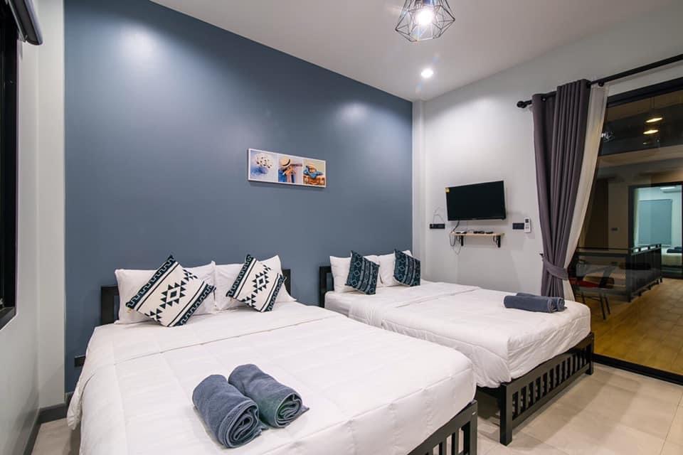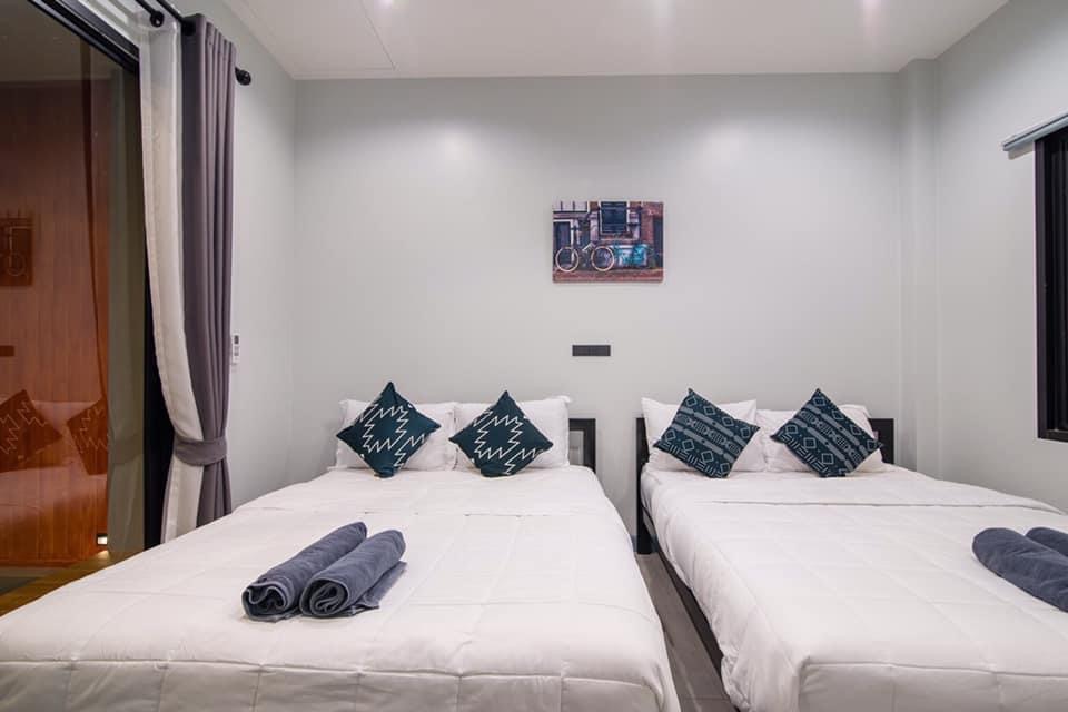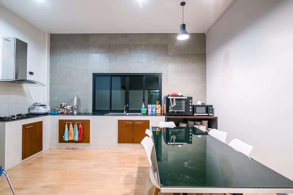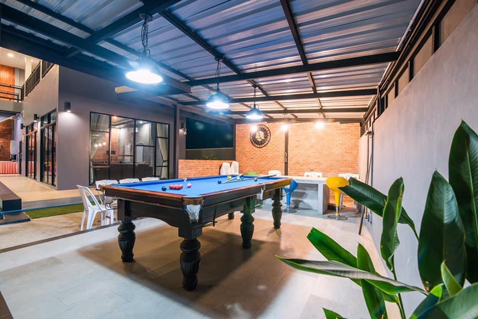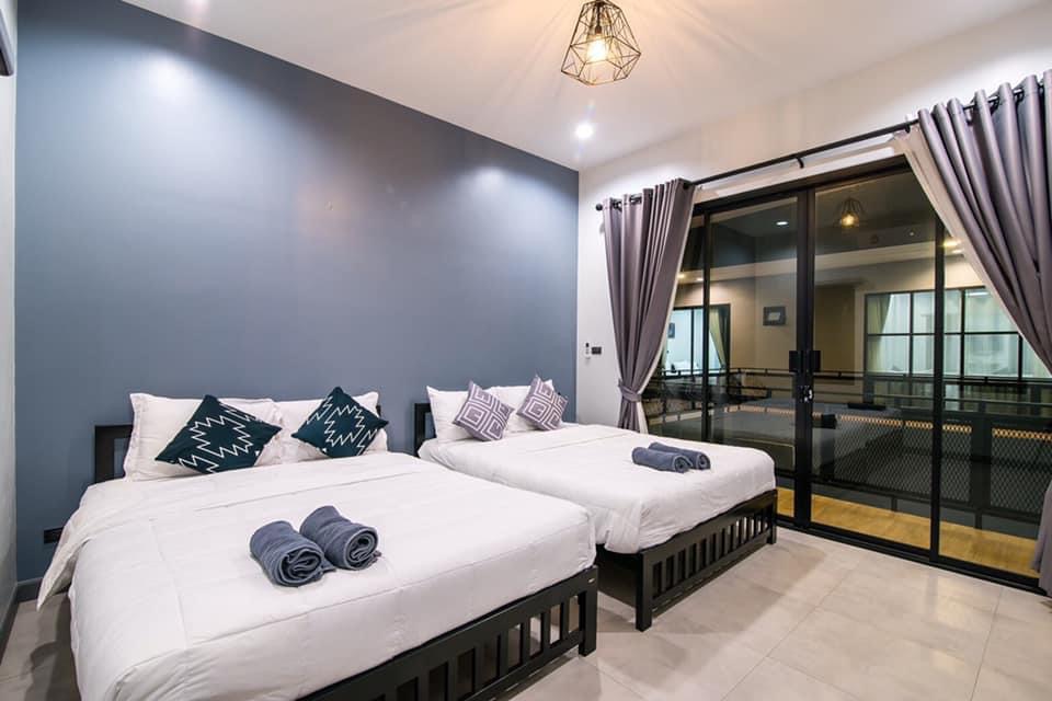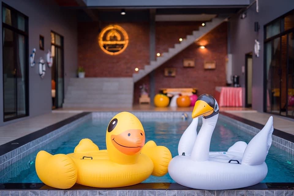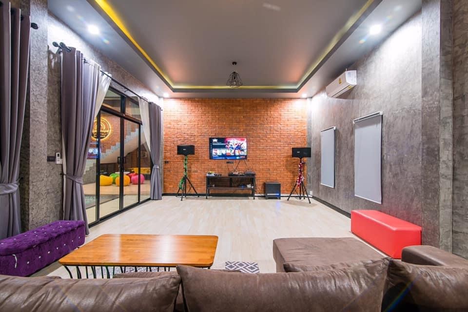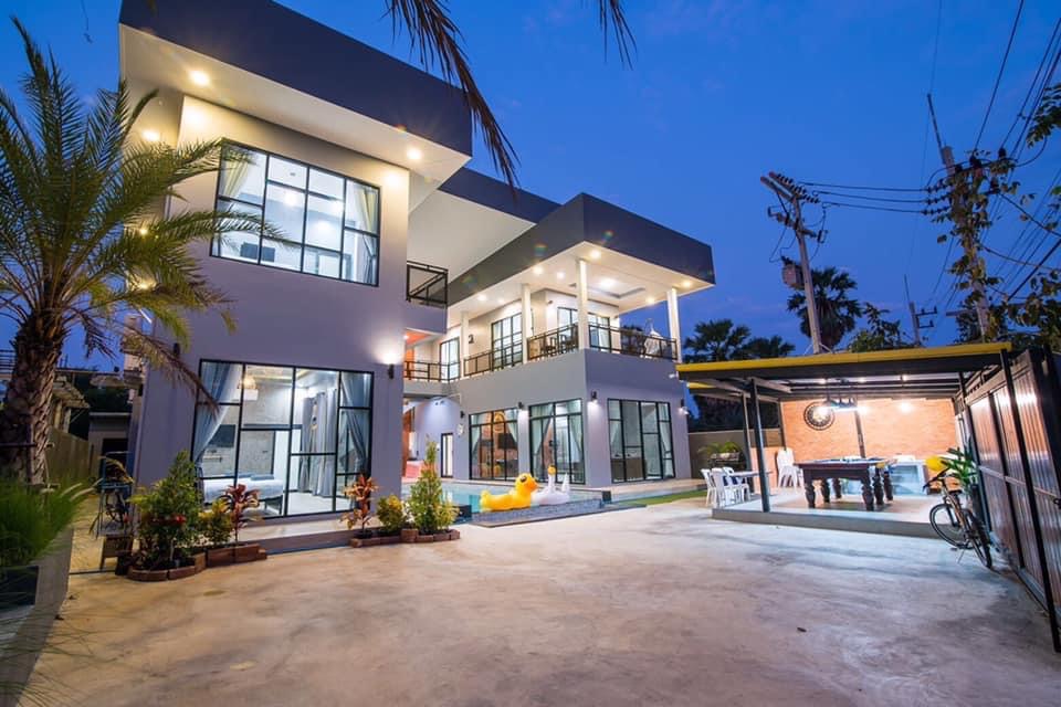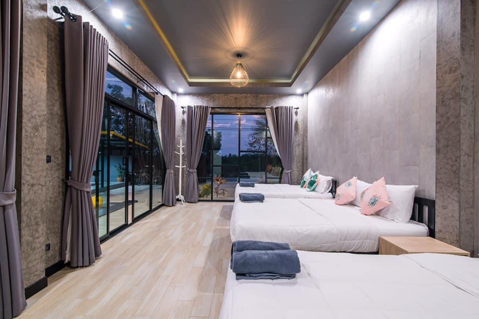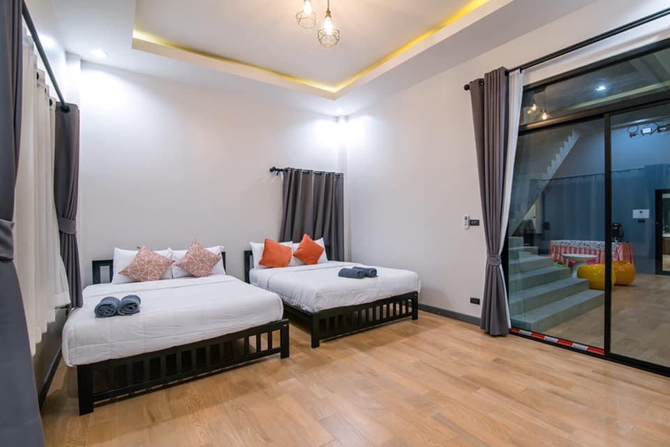 7 ห้องนอน (แอร์) 8 ห้องน้ำ 1 ห้องนั่งเล่น (แอร์) 1 ห้องครัวอุปกรณ์ครบครัน รองรับผู้เข้าพัก 25 คน คนที่ 26 ขึ้นไป เพิ่มคนละ 500 บาท พักสูงสุด 30 ท่าน (พร้อมที่นอนเสริมครบทุกท่าน) มีสระว่ายน้ำส่วนตัว ขนาด 4*7 เมตร สามารถเสียงดังได้ถึง 22.00 น. มีสิ่งอำนวยความสะดวกครบครัน ทีวี ตู้เย็น คาราโอเกะ ไฟเธค โต๊ะสนุก Wi-Fi อุปกรณ์เครื่องครัวครบชุด อุปกรณ์เครื่องใช้ส่วนตัวต้องเตรียมมาเอง เช่น ผ้าขนหนู แชมพู ยาสระผม