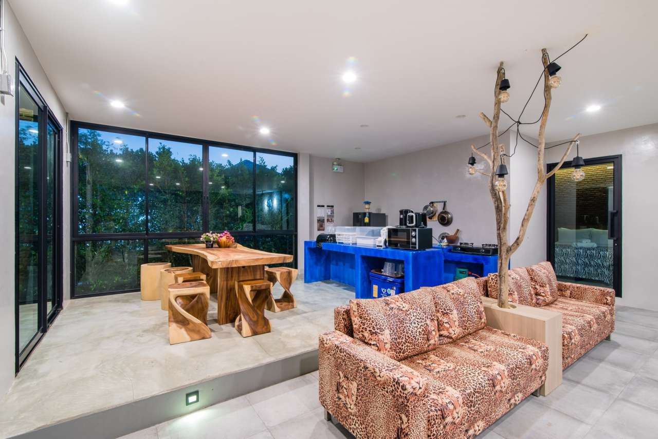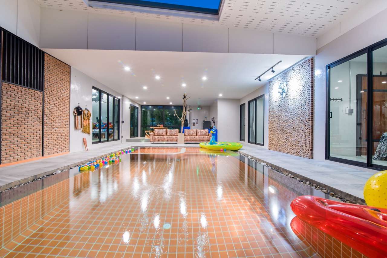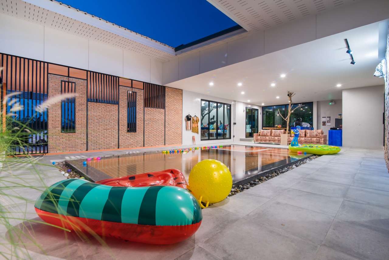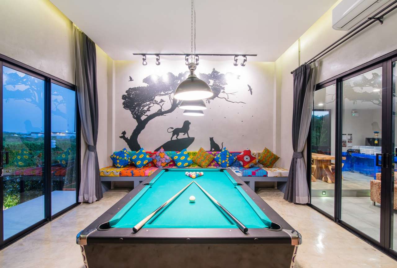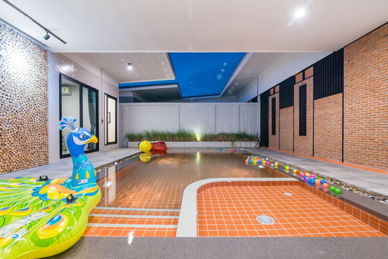 4 ห้องนอน (แอร์) 5 ห้องน้ำ 1 ห้องนั่งเล่น (แอร์) 1 ห้องครัวอุปกรณ์ครบครัน รองรับผู้เข้าพัก 10 คน คนที่ 11 ขึ้นไป เพิ่มคนละ 400 บาท พักสูงสุด 16 ท่าน (พร้อมที่นอนเสริม) มีสระว่ายน้ำส่วนตัว ขนาด 3.5*7 เมตร สามารถเสียงดังได้ถึง 22.00 น. มีสิ่งอำนวยความสะดวกครบครัน ทีวี ตู้เย็น คาราโอเกะ โต๊ะพูล อุปกรณ์เครื่องครัวครบชุด อุปกรณ์เครื่องใช้ส่วนตัวต้องเตรียมมาเอง เช่น ผ้าขนหนู แชมพู ยาสระผม
