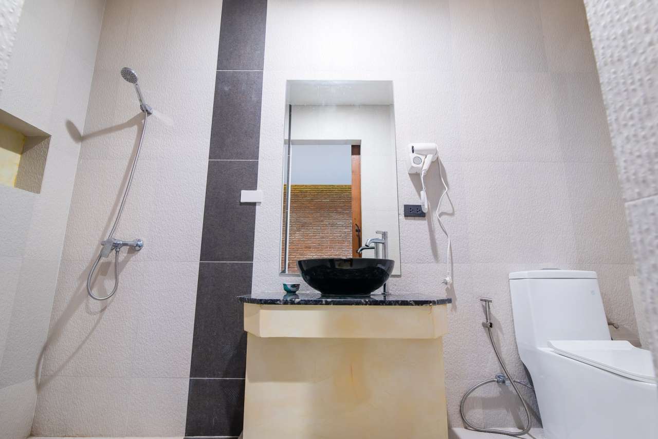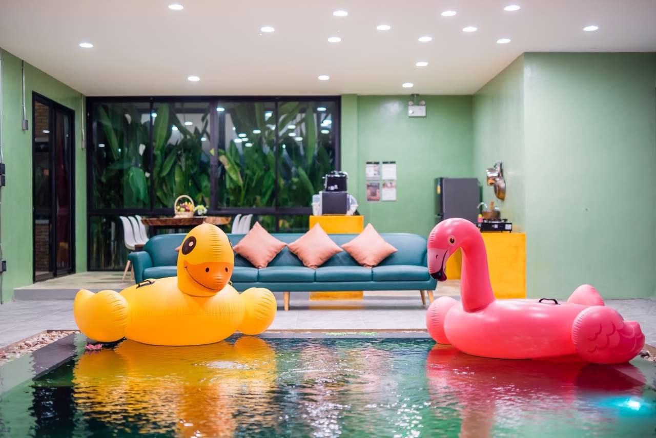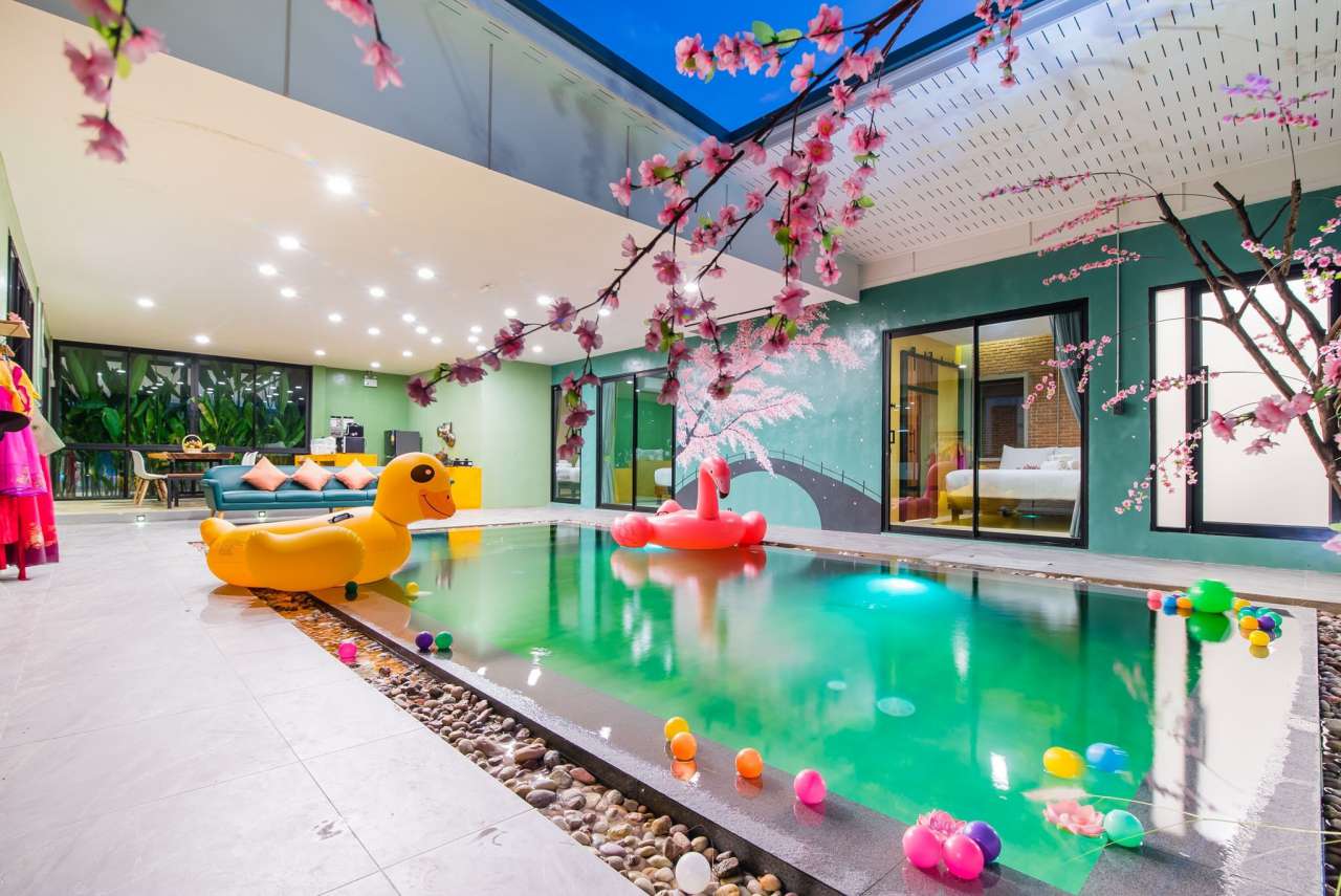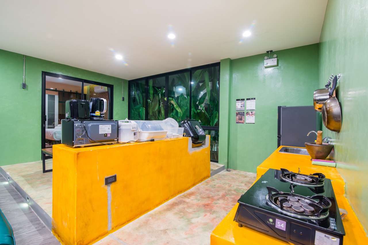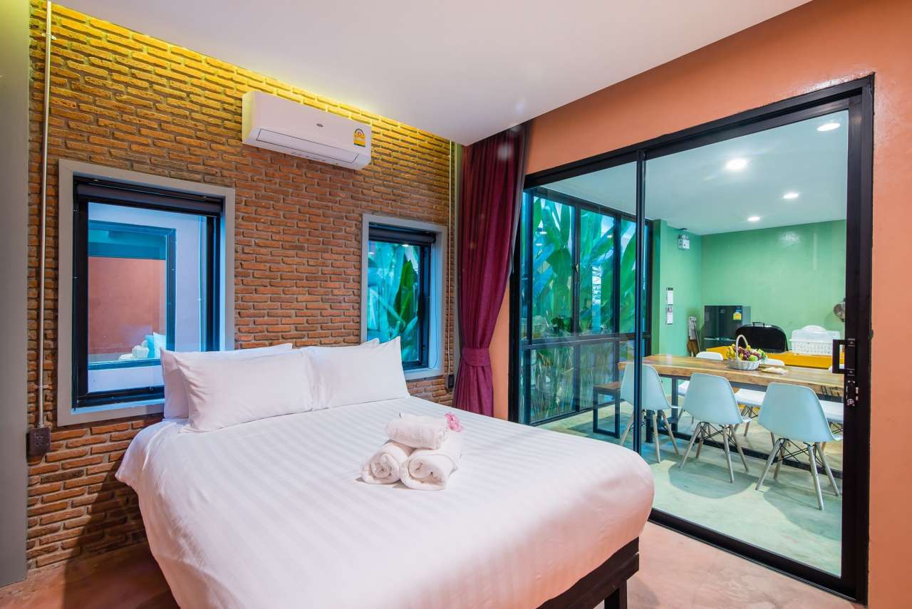 4 ห้องนอน (แอร์) 5 ห้องน้ำ 1 ห้องนั่งเล่น (แอร์) 1 ห้องครัวอุปกรณ์ครบครัน รองรับผู้เข้าพัก 10 คน คนที่ 11 ขึ้นไป เพิ่มคนละ 400 บาท พักสูงสุด 16 ท่าน (พร้อมที่นอนเสริม) มีสระว่ายน้ำส่วนตัว ขนาด 3.5*7 เมตร สามารถเสียงดังได้ถึง 22.00 น. มีสิ่งอำนวยความสะดวกครบครัน ทีวี ตู้เย็น คาราโอเกะ โต๊ะพูล อุปกรณ์เครื่องครัวครบชุด อุปกรณ์เครื่องใช้ส่วนตัวต้องเตรียมมาเอง เช่น ผ้าขนหนู แชมพู ยาสระผม