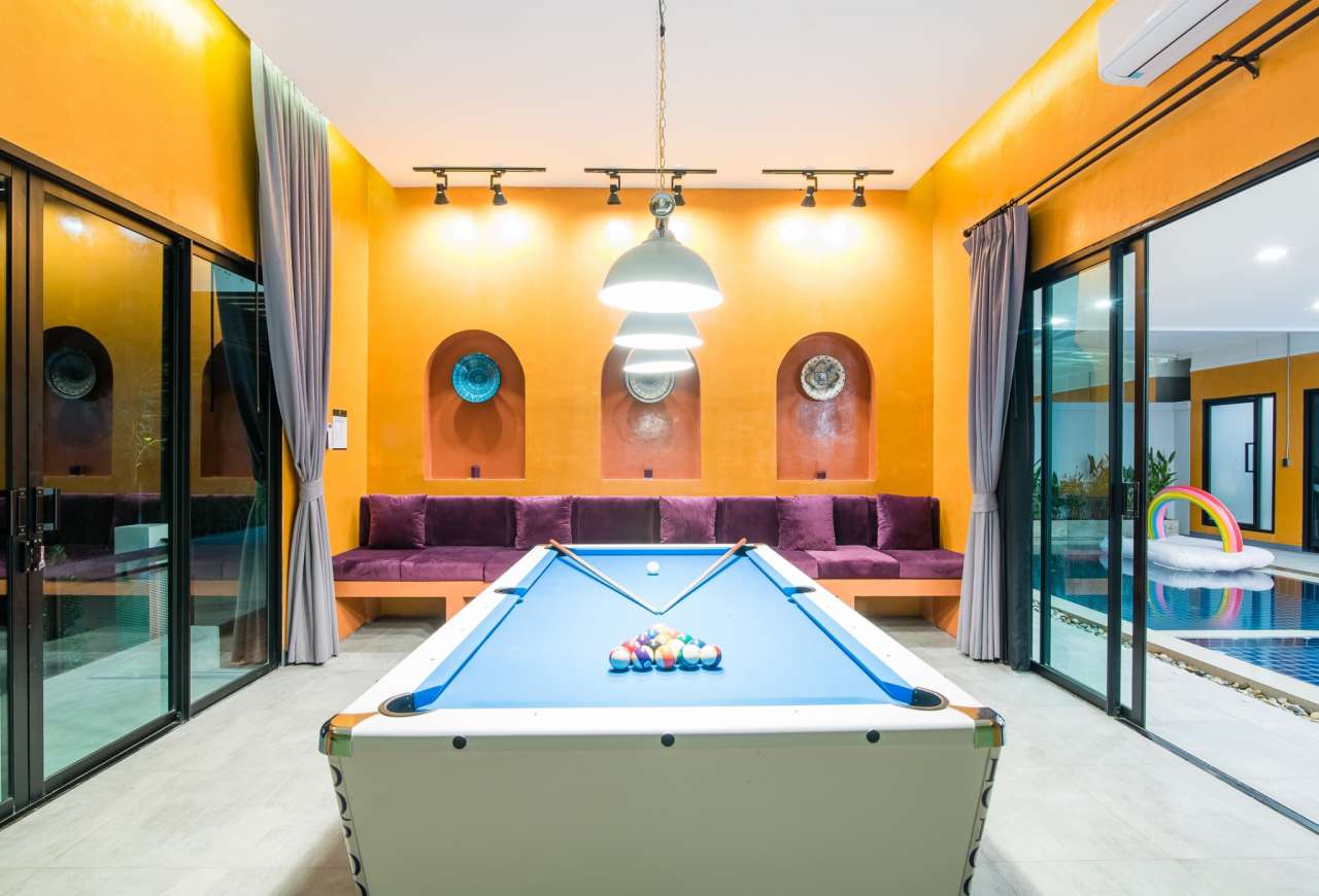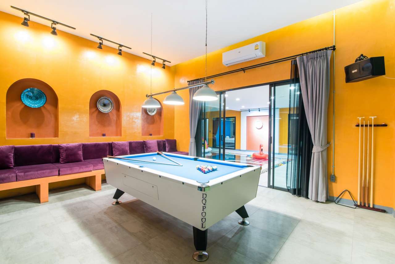 4 ห้องนอน (แอร์) 5 ห้องน้ำ 1 ห้องนั่งเล่น (แอร์) 1 ห้องครัวอุปกรณ์ครบครัน รองรับผู้เข้าพัก 10 คน คนที่ 11 ขึ้นไป เพิ่มคนละ 400 บาท พักสูงสุด 16 ท่าน (พร้อมที่นอนเสริม) มีสระว่ายน้ำส่วนตัว ขนาด 3.5*7 เมตร สามารถเสียงดังได้ถึง 22.00 น. มีสิ่งอำนวยความสะดวกครบครัน ทีวี ตู้เย็น คาราโอเกะ โต๊ะพูล อุปกรณ์เครื่องครัวครบชุด อุปกรณ์เครื่องใช้ส่วนตัวต้องเตรียมมาเอง เช่น ผ้าขนหนู แชมพู ยาสระผม