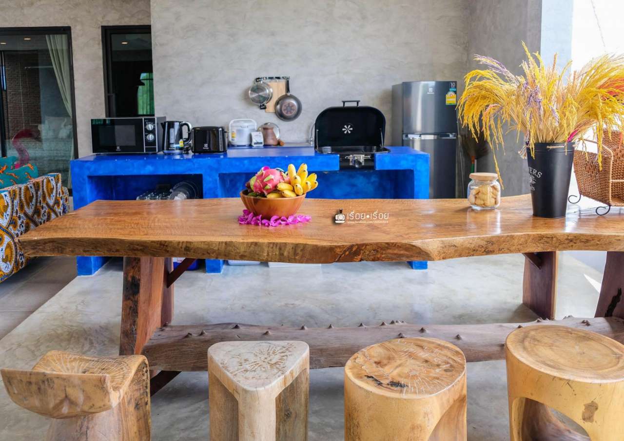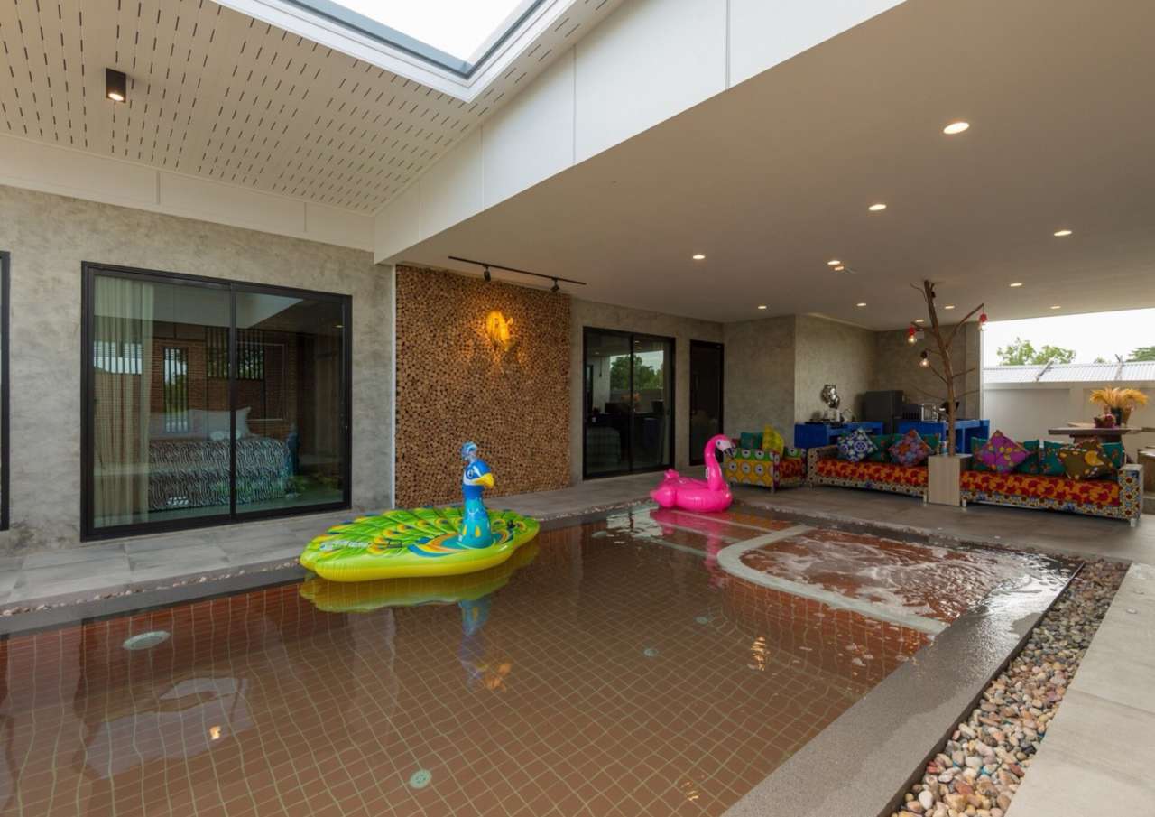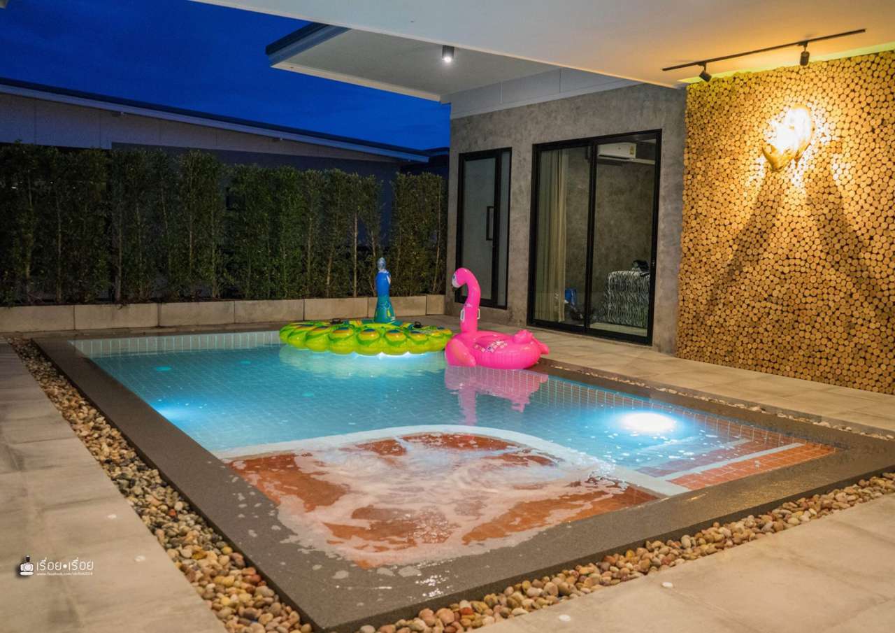 4 ห้องนอน (แอร์) 5 ห้องน้ำ 1 ห้องนั่งเล่น (แอร์) 1 ห้องครัวอุปกรณ์ครบครัน รองรับผู้เข้าพัก 10 คน มีสระว่ายน้ำส่วนตัว ขนาด 3.5*7 เมตร สามารถเสียงดังได้ถึง 22.00 น. มีสิ่งอำนวยความสะดวกครบครัน ทีวี ตู้เย็น คาราโอเกะ โต๊ะพูล อุปกรณ์เครื่องครัวครบชุด อุปกรณ์เครื่องใช้ส่วนตัวต้องเตรียมมาเอง เช่น ผ้าขนหนู แชมพู ยาสระผม