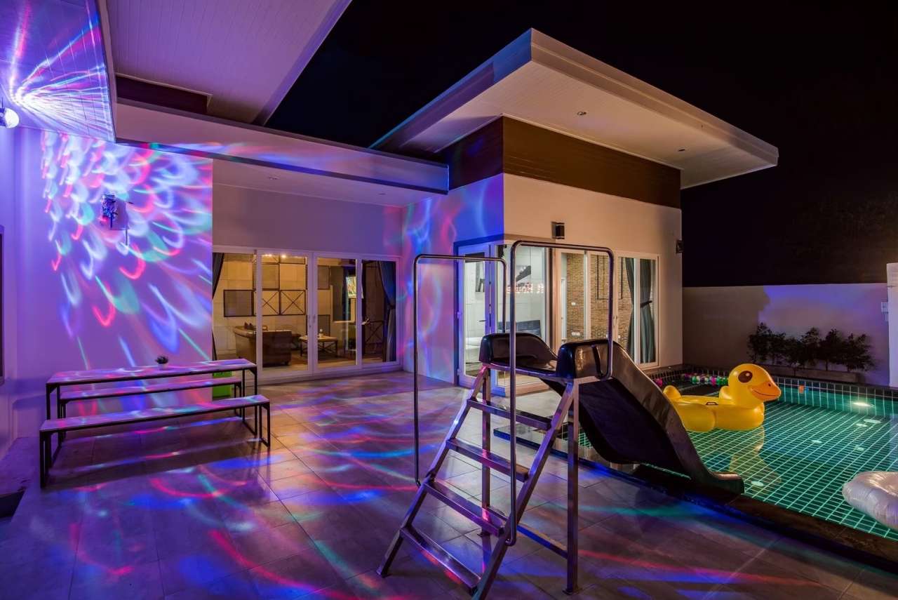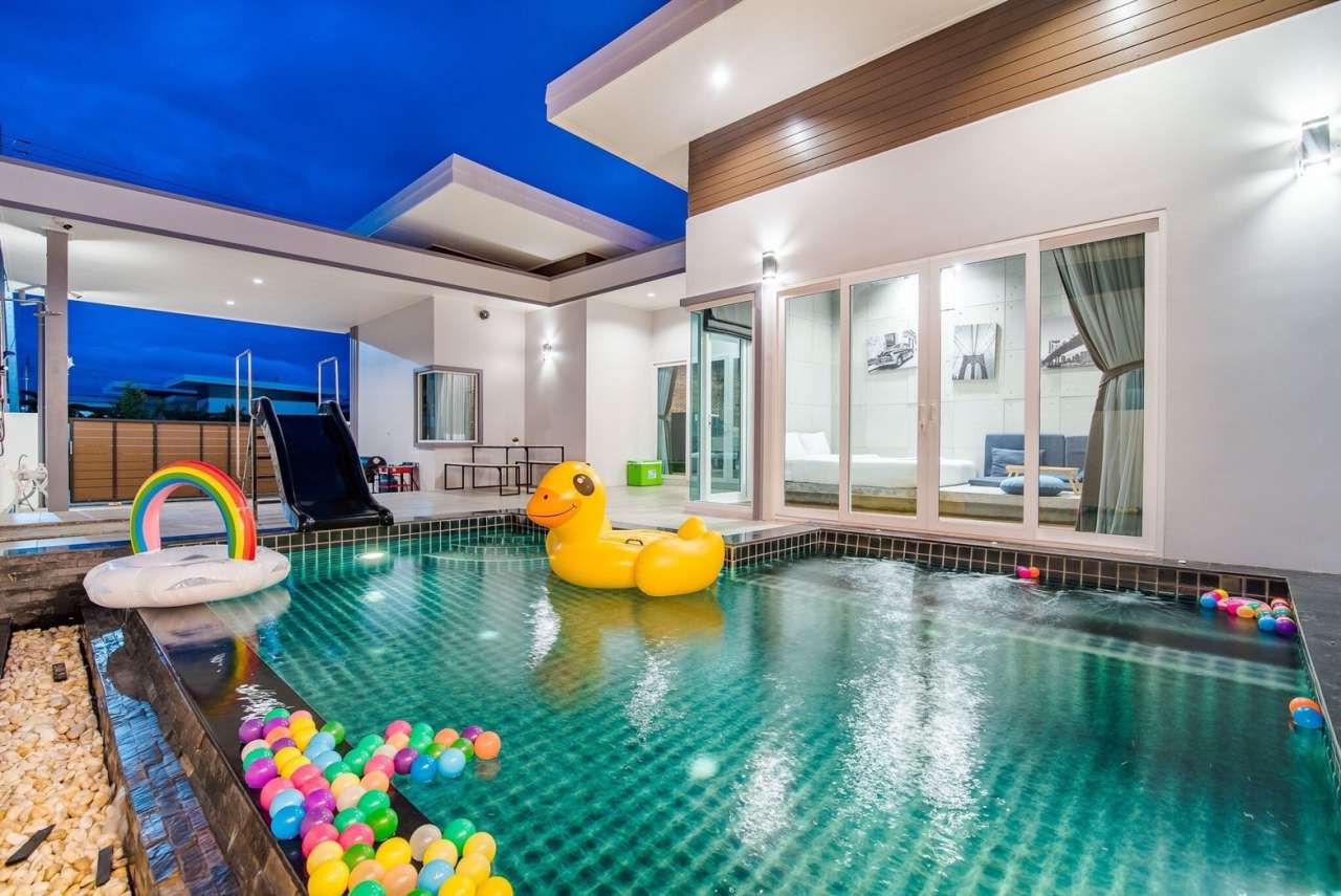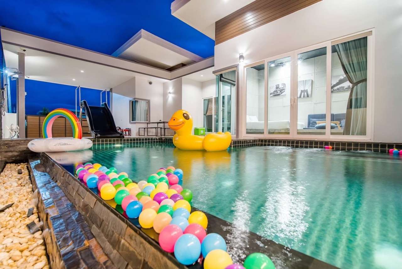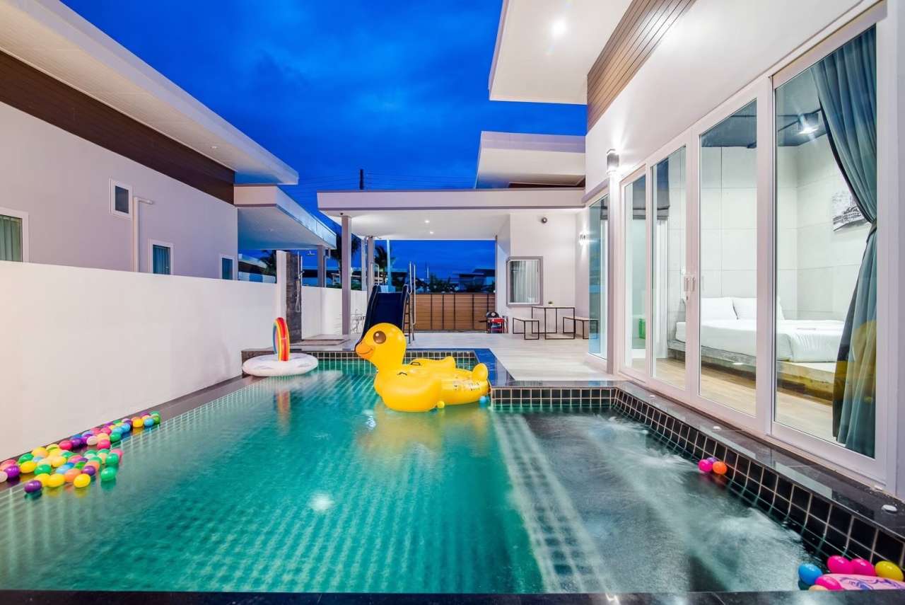 3 ห้องนอน (แอร์) 3 ห้องน้ำ 1 ห้องนั่งเล่น (แอร์) 1 ห้องครัวอุปกรณ์ครบครัน รองรับผู้เข้าพัก 12 คน มีสระว่ายน้ำส่วนตัว ขนาด 3*7 เมตร สามารถเสียงดังได้ถึง 22.00 น. มีสิ่งอำนวยความสะดวกครบครัน ทีวี ตู้เย็น คาราโอเกะ ไฟเธค โต๊ะสนุก Wi-Fi อุปกรณ์เครื่องครัวครบชุด อุปกรณ์เครื่องใช้ส่วนตัวต้องเตรียมมาเอง เช่น ผ้าขนหนู แชมพู ยาสระผม