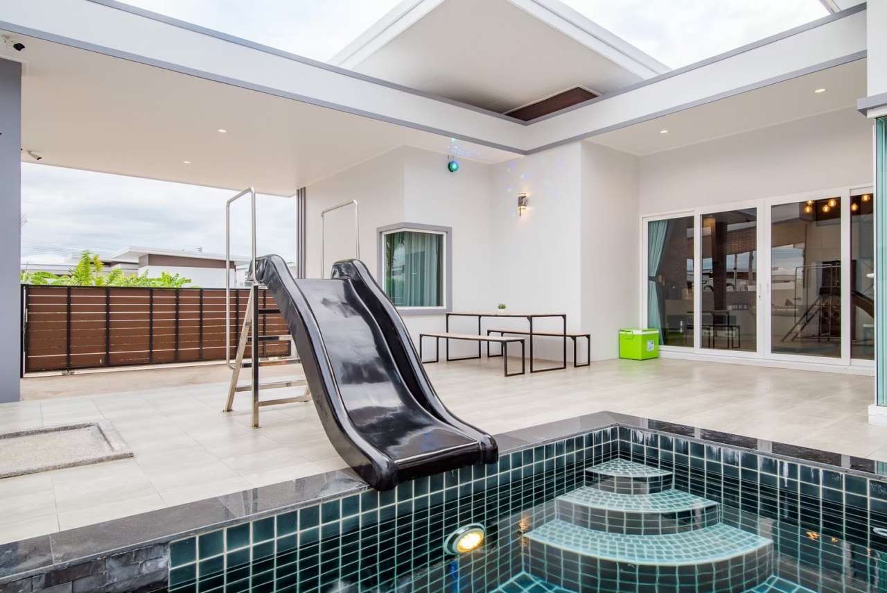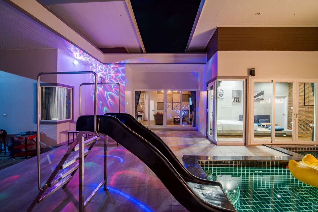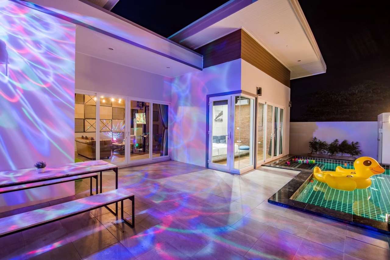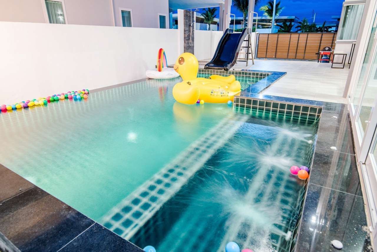 3 ห้องนอน (แอร์) 3 ห้องน้ำ 1 ห้องนั่งเล่น (แอร์) 1 ห้องครัวอุปกรณ์ครบครัน รองรับผู้เข้าพัก 12 คน มีสระว่ายน้ำส่วนตัว ขนาด 3*7 เมตร สามารถเสียงดังได้ถึง 22.00 น. มีสิ่งอำนวยความสะดวกครบครัน ทีวี ตู้เย็น คาราโอเกะ ไฟเธค โต๊ะสนุก Wi-Fi อุปกรณ์เครื่องครัวครบชุด อุปกรณ์เครื่องใช้ส่วนตัวต้องเตรียมมาเอง เช่น ผ้าขนหนู แชมพู ยาสระผม