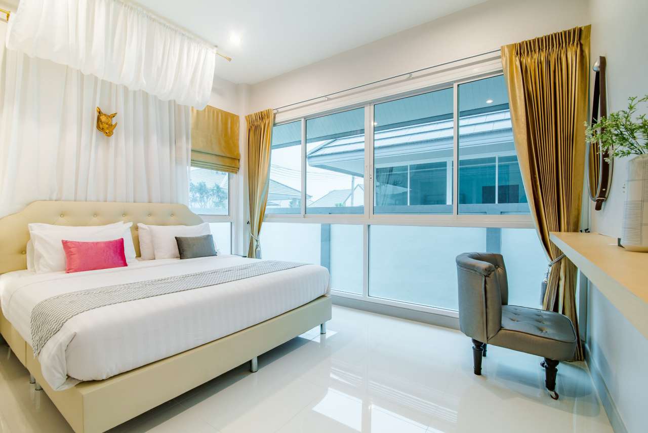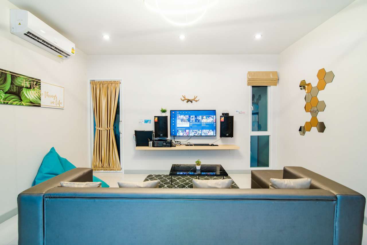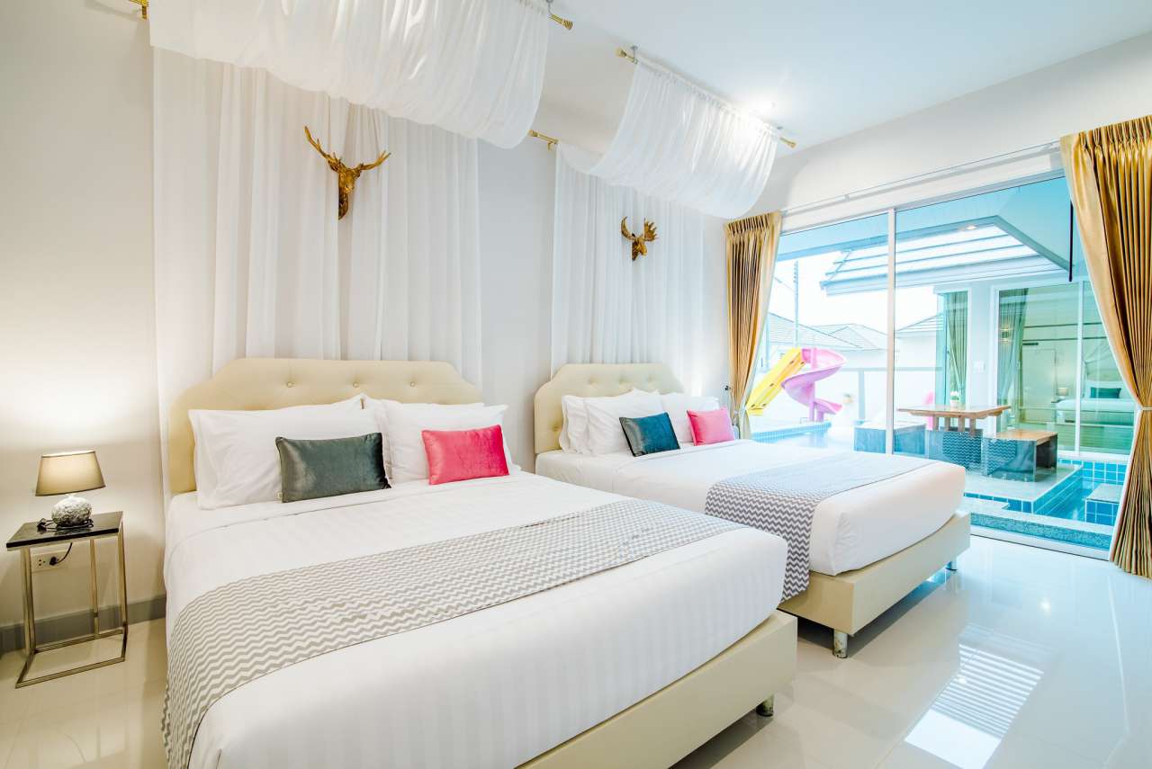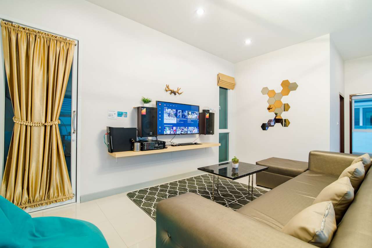 4 ห้องนอน (แอร์) 3 ห้องน้ำ 1 ห้องนั่งเล่น (แอร์) 1 ห้องครัวอุปกรณ์ครบครัน รองรับผู้เข้าพัก 12 คน คนเกินเสริมคนละ 300 สูงสุด 15 คน ต่อหลัง มีสระว่ายน้ำส่วนตัว ขนาด 4*6 เมตร สามารถเสียงดังได้ถึง 22.00 น. สิ่งอำนวยความสะดวกครบครัน ทีวี ฟรีคาราโอเกะ สไลเดอร์ wifi ตู้เย็น อุปกรณ์เครื่องครัวครบชุด อุปกรณ์เครื่องใช้ส่วนตัวต้องเตรียมมาเอง เช่น ผ้าขนหนู แชมพู ยาสระผม (ห้ามนำสัตว์เลี้ยงเข้าพักทุกชนิด)