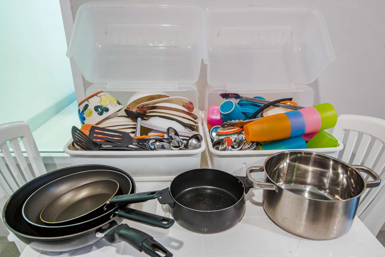 - อุปกรณ์เครื่องครัว เช่น จาน ช้อน หม้อ กระทะ