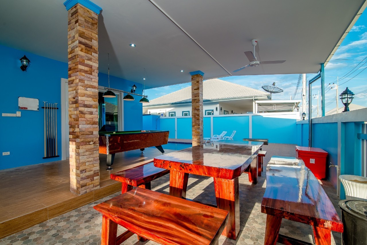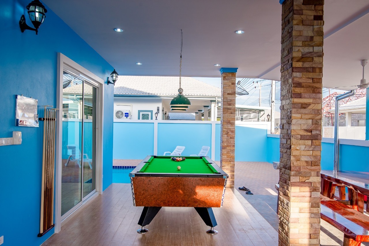 3 ห้องนอน (แอร์) 4 ห้องน้ำ 1 ห้องนั่งเล่น (แอร์) 1 ห้องครัวอุปกรณ์ครบครัน รองรับผู้เข้าพัก 10 คน คนที่ 11 ขึ้นไป เพิ่มคนละ 300 บาท พักสูงสุด 15 ท่าน มีสระว่ายน้ำส่วนตัวขนาด 4*8 เมตร สามารถเสียงดังได้ถึง 22.00 น. สิ่งอำนวยความสะดวกครบครัน ทีวี ฟรีคาราโอเกะ โต๊ะพูล สไลเดอร์ wifi ตู้เย็น อุปกรณ์เครื่องครัวครบชุด อุปกรณ์เครื่องใช้ส่วนตัวต้องเตรียมมาเอง เช่น ผ้าขนหนู แชมพู ยาสระผม (ห้ามนำสัตว์เลี้ยงเข้าพักทุกชนิด)