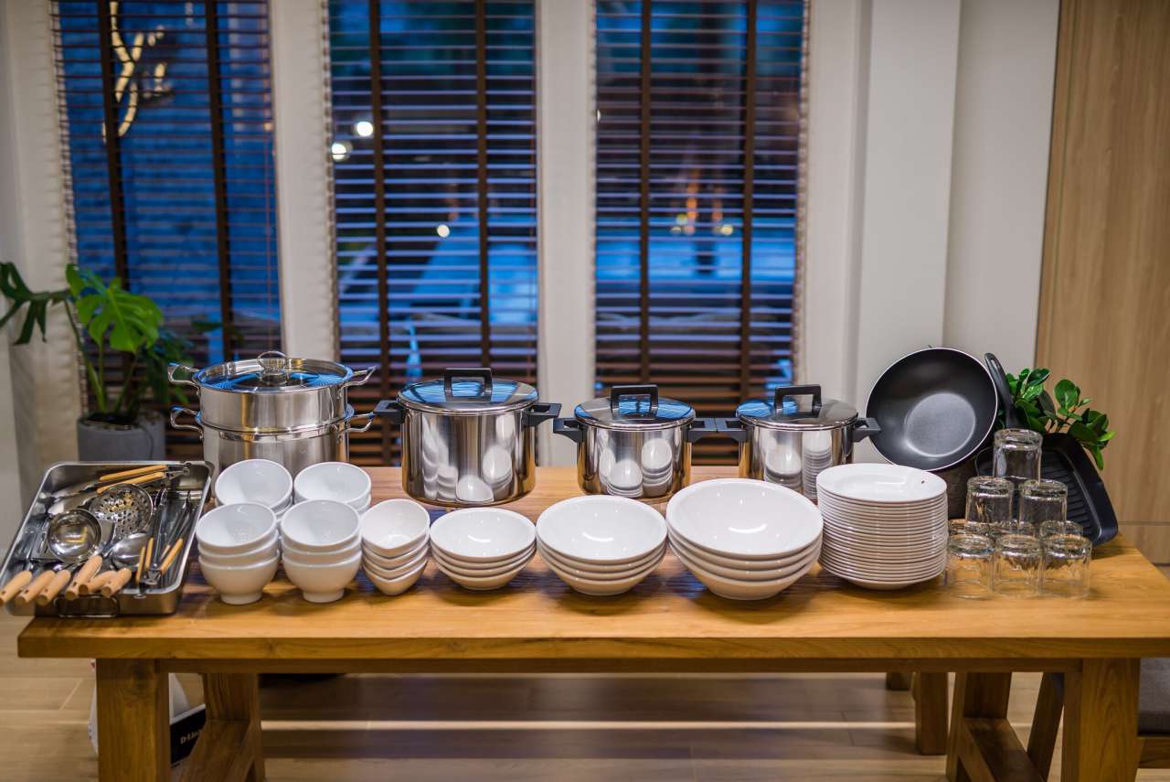 - อุปกรณ์เครื่องครัว เช่น จาน ช้อน หม้อ กระทะ