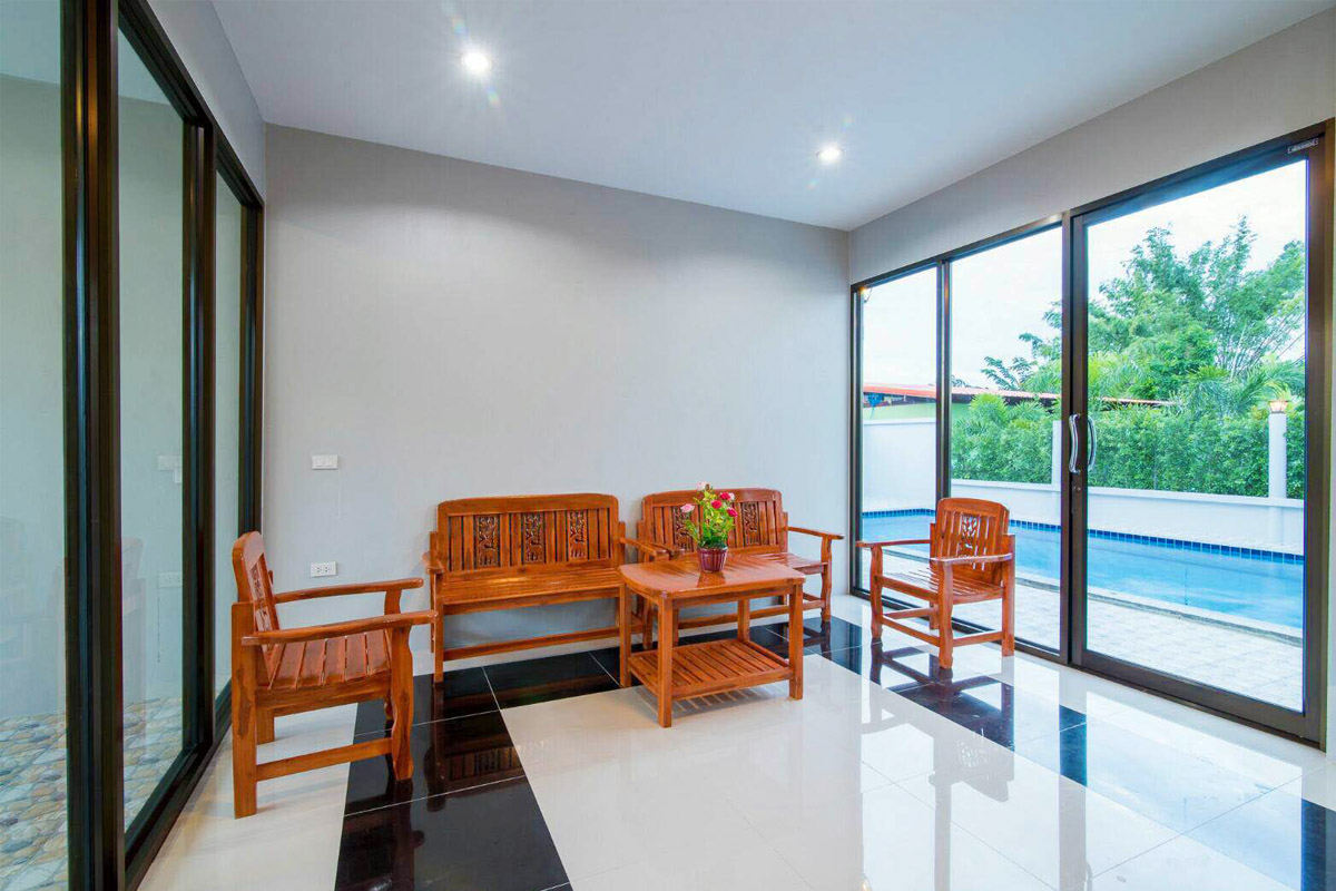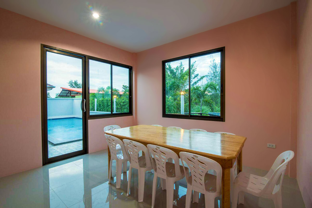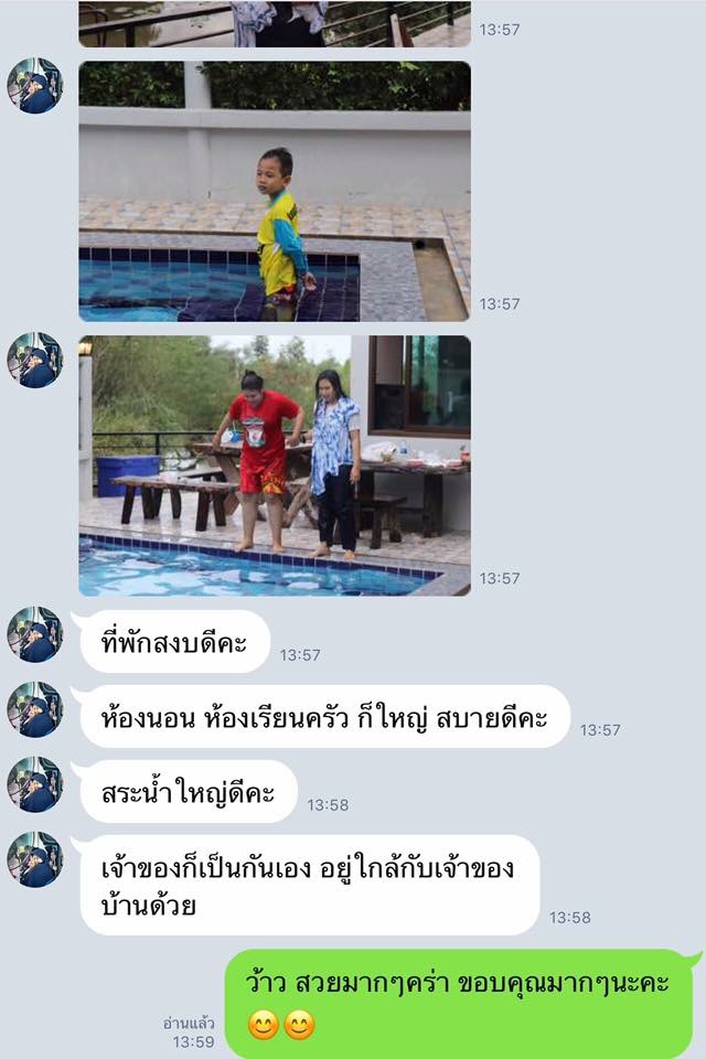5 ห้องนอน (แอร์) 6 ห้องน้ำ 1 ห้องนั่งเล่น (พัดลม) 1 ห้องครัวอุปกรณ์ครบครัน รองรับผู้เข้าพัก 15 คน คนที่ 16 ขึ้นไป เพิ่มคนละ 300 บาท พักสูงสุด 25 ท่าน (พร้อมที่นอนเสริม) มีสระว่ายน้ำส่วนตัว ขนาด 4*9 เมตร สามารถเสียงดังได้ทั้งคืน มีสิ่งอำนวยความสะดวกครบครัน ทีวี wifi ตู้เย็น อุปกรณ์เครื่องครัวครบชุด อุปกรณ์เครื่องใช้ส่วนตัวต้องเตรียมมาเอง เช่น ผ้าขนหนู แชมพู ยาสระผม