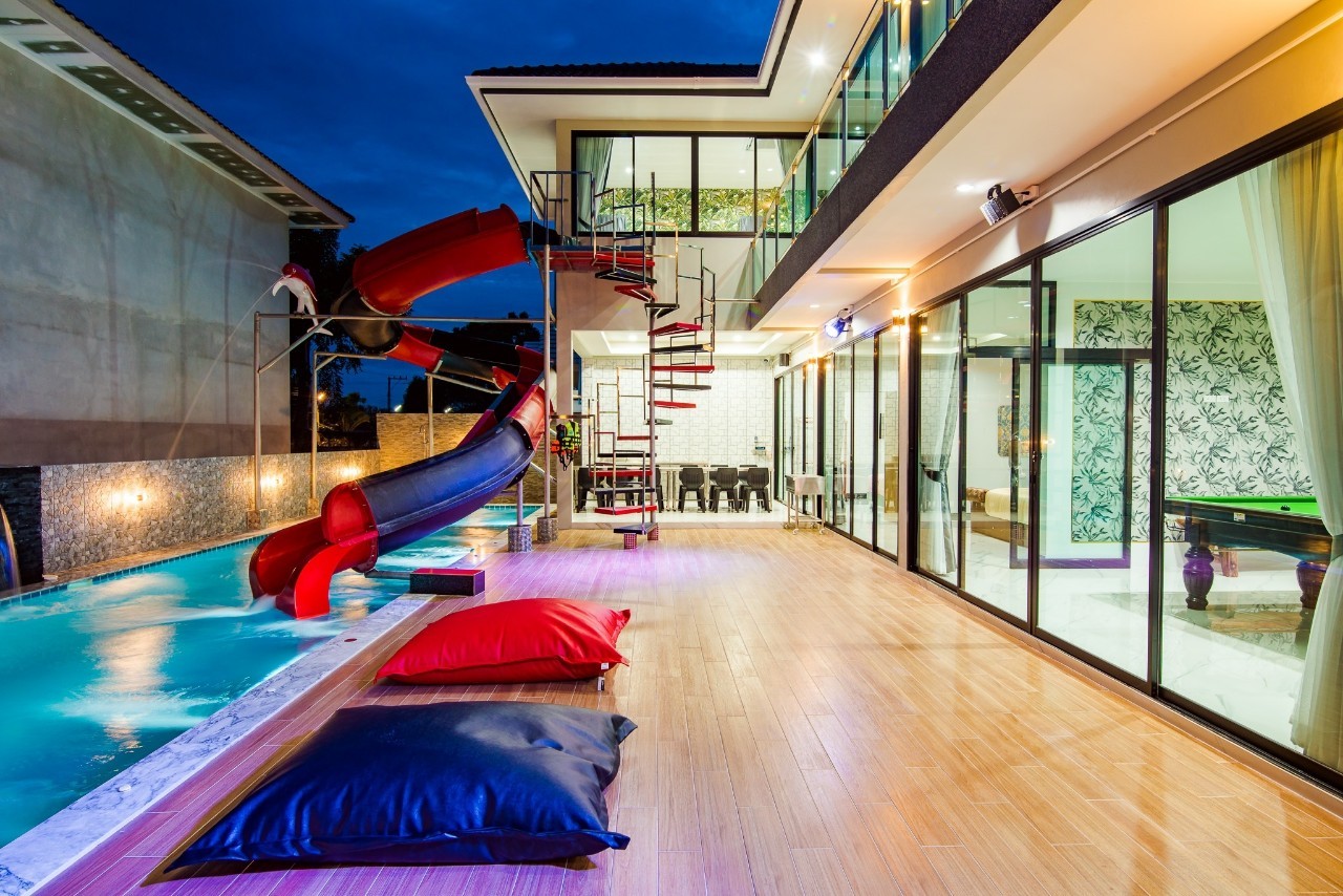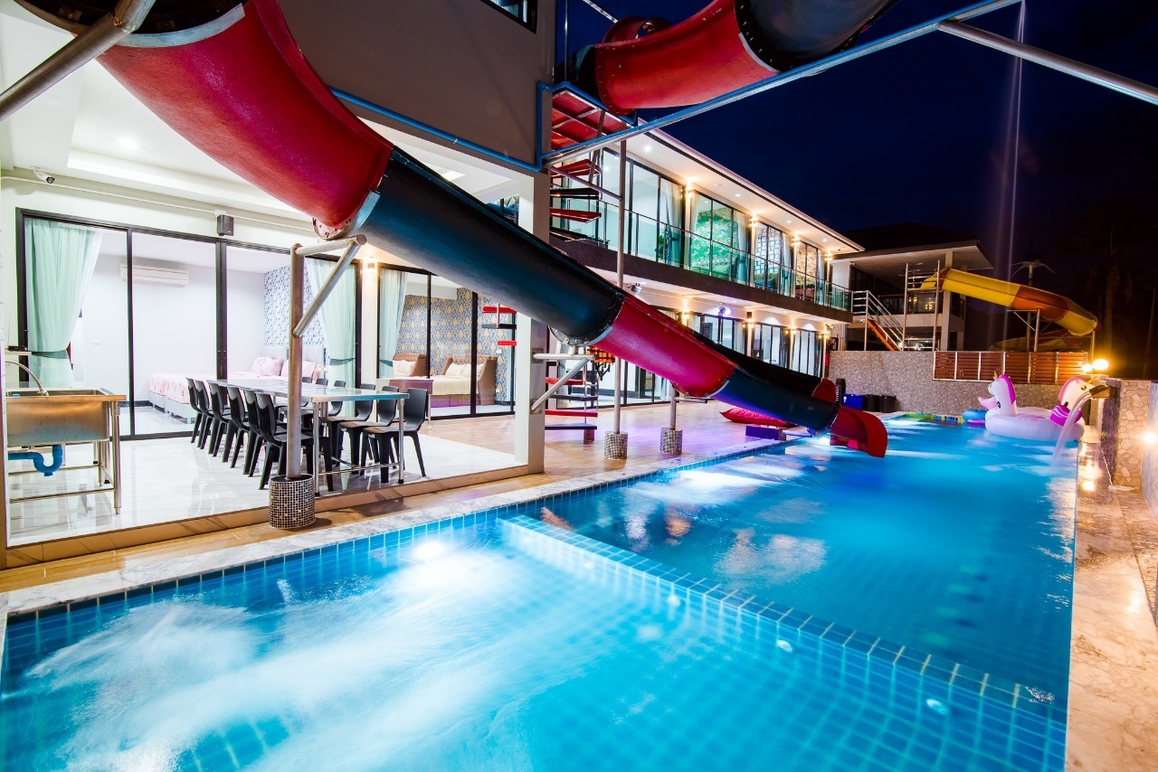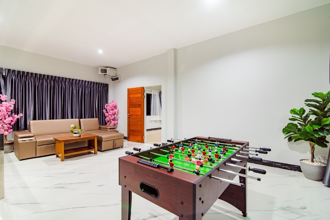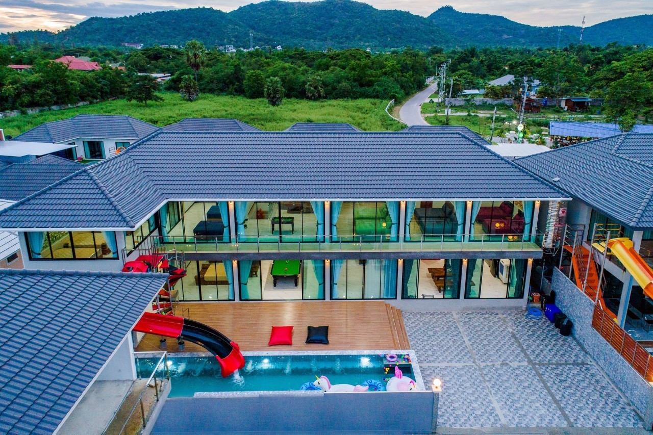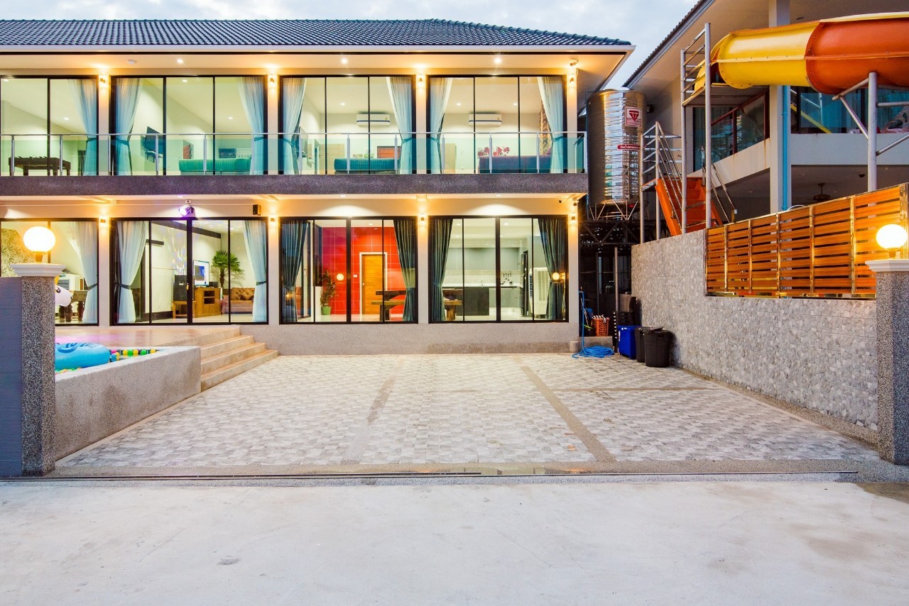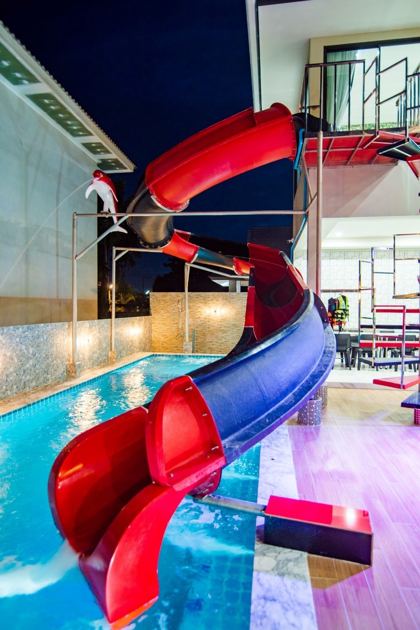 6 ห้องนอน (แอร์) 6 ห้องน้ำ 1 ห้องนั่งเล่น (แอร์) รองรับผู้เข้าพัก 25 คน คนที่ 26 ขึ้นไป เพิ่มคนละ 400 บาท พักสูงสุด 30 ท่าน มีสระว่ายน้ำส่วนตัว ขนาด 17 เมตร (มีสระเด็ก) สามารถเสียงดังได้ถึง 22.00 น. มีสิ่งอำนวยความสะดวกครบครัน สไลเดอร์20เมตร ทีวีทุกห้องนอน ตู้เย็น คาราโอเกะ ไฟเธค Wi-Fi โต๊ะสนุ๊ก5×10 โต๊ะโกบอล โดร์เป่าผมมีทุกห้องนอน อุปกรณ์เครื่องครัวครบชุด อุปกรณ์เครื่องใช้ส่วนตัวต้องเตรียมมาเอง เช่น ผ้าขนหนู แชมพู ยาสระผม (ไม่รับสัตว์เลี้ยง)