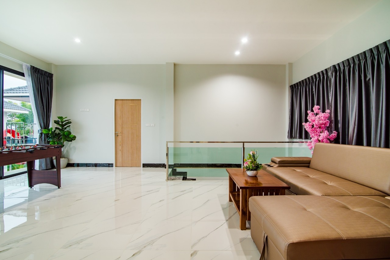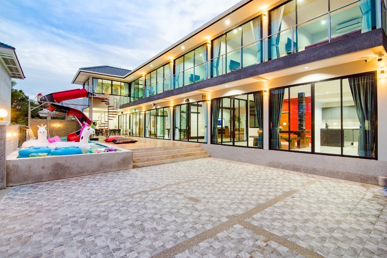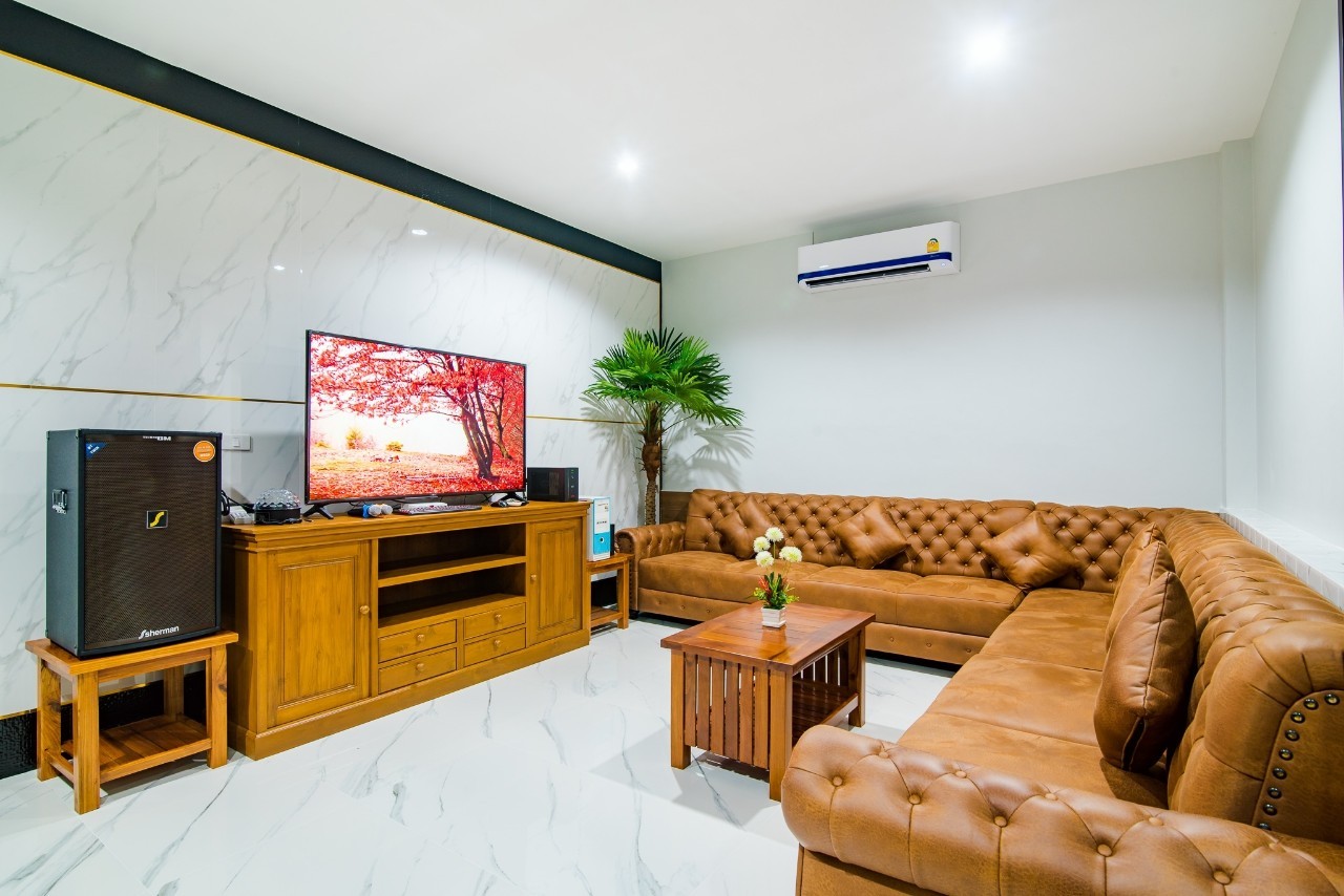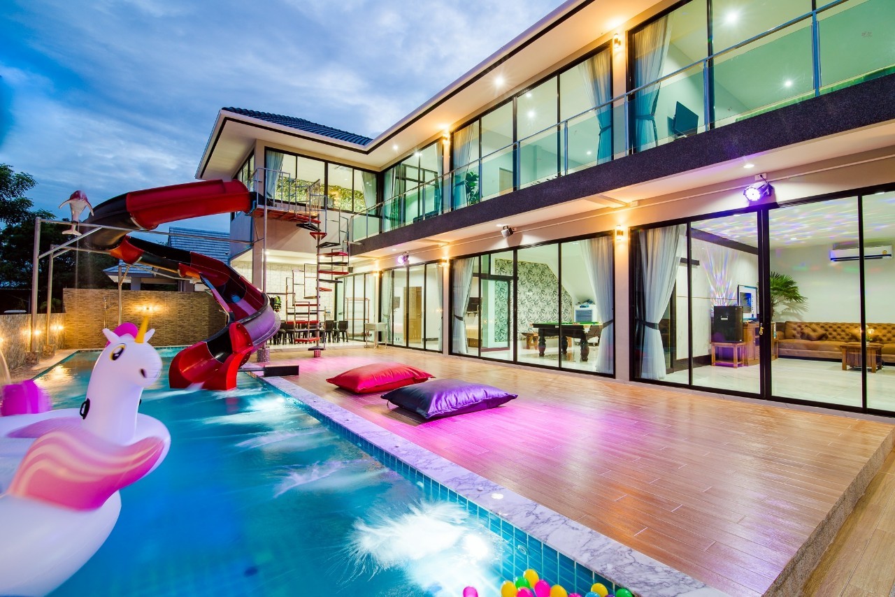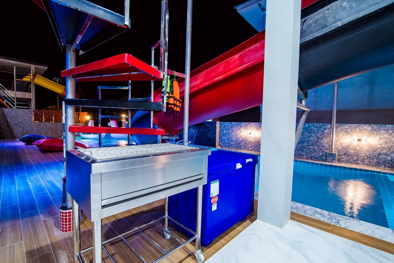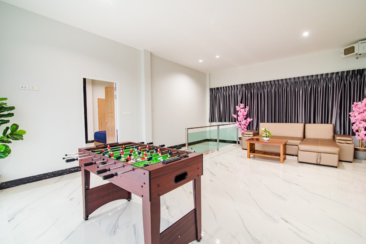 6 ห้องนอน (แอร์) 6 ห้องน้ำ 1 ห้องนั่งเล่น (แอร์) รองรับผู้เข้าพัก 25 คน คนที่ 26 ขึ้นไป เพิ่มคนละ 400 บาท พักสูงสุด 30 ท่าน มีสระว่ายน้ำส่วนตัว ขนาด 17 เมตร (มีสระเด็ก) สามารถเสียงดังได้ถึง 22.00 น. มีสิ่งอำนวยความสะดวกครบครัน สไลเดอร์20เมตร ทีวีทุกห้องนอน ตู้เย็น คาราโอเกะ ไฟเธค Wi-Fi โต๊ะสนุ๊ก5×10 โต๊ะโกบอล โดร์เป่าผมมีทุกห้องนอน อุปกรณ์เครื่องครัวครบชุด อุปกรณ์เครื่องใช้ส่วนตัวต้องเตรียมมาเอง เช่น ผ้าขนหนู แชมพู ยาสระผม (ไม่รับสัตว์เลี้ยง)