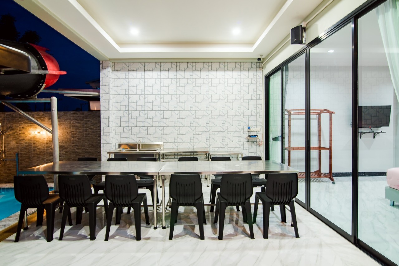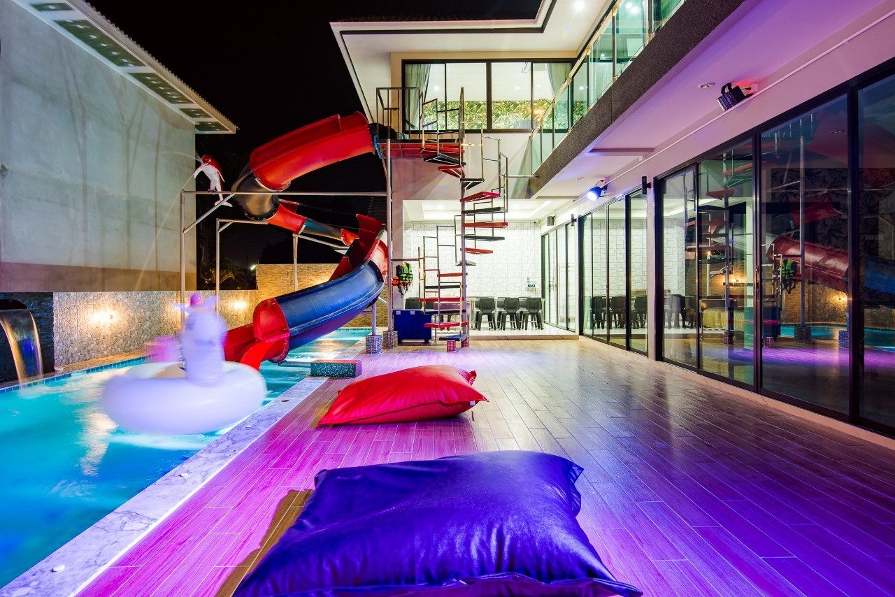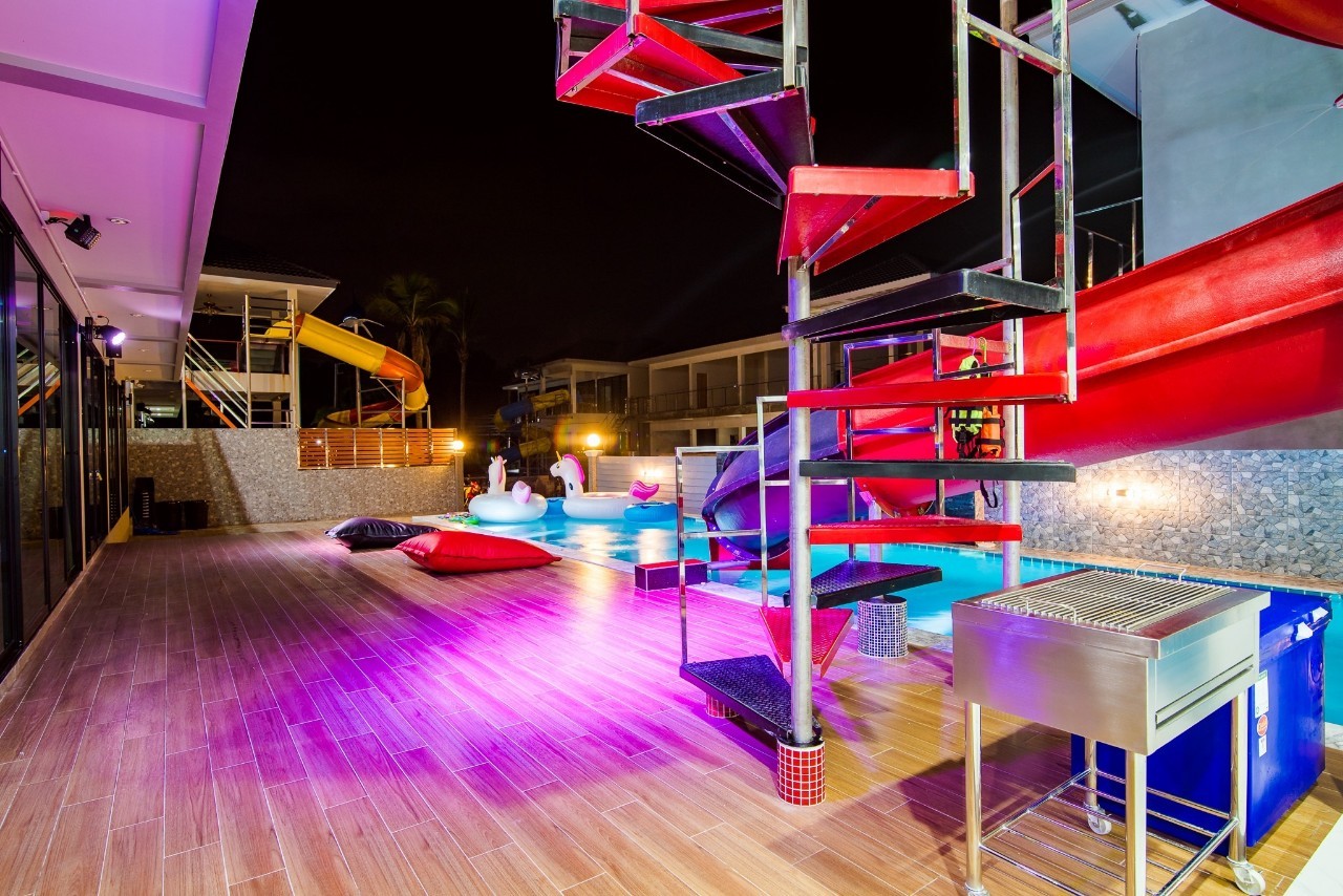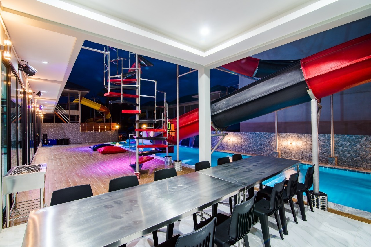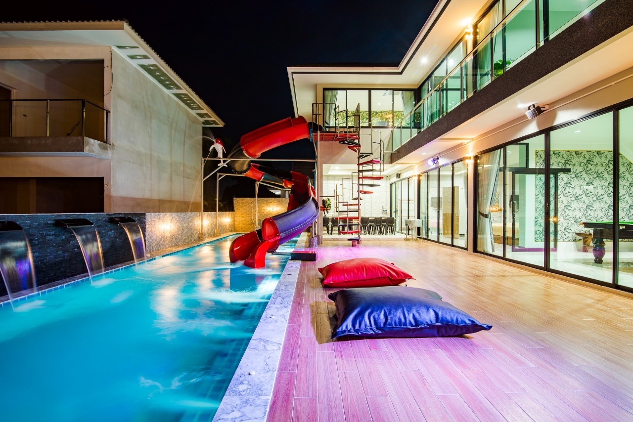 6 ห้องนอน (แอร์) 6 ห้องน้ำ 1 ห้องนั่งเล่น (แอร์) รองรับผู้เข้าพัก 25 คน คนที่ 26 ขึ้นไป เพิ่มคนละ 400 บาท พักสูงสุด 30 ท่าน มีสระว่ายน้ำส่วนตัว ขนาด 17 เมตร (มีสระเด็ก) สามารถเสียงดังได้ถึง 22.00 น. มีสิ่งอำนวยความสะดวกครบครัน สไลเดอร์20เมตร ทีวีทุกห้องนอน ตู้เย็น คาราโอเกะ ไฟเธค Wi-Fi โต๊ะสนุ๊ก5×10 โต๊ะโกบอล โดร์เป่าผมมีทุกห้องนอน อุปกรณ์เครื่องครัวครบชุด อุปกรณ์เครื่องใช้ส่วนตัวต้องเตรียมมาเอง เช่น ผ้าขนหนู แชมพู ยาสระผม (ไม่รับสัตว์เลี้ยง)
