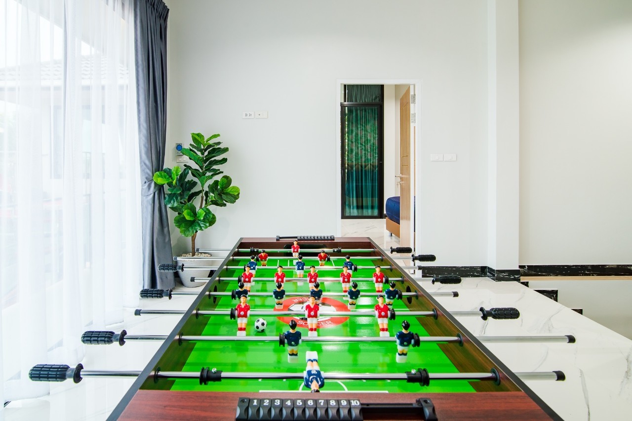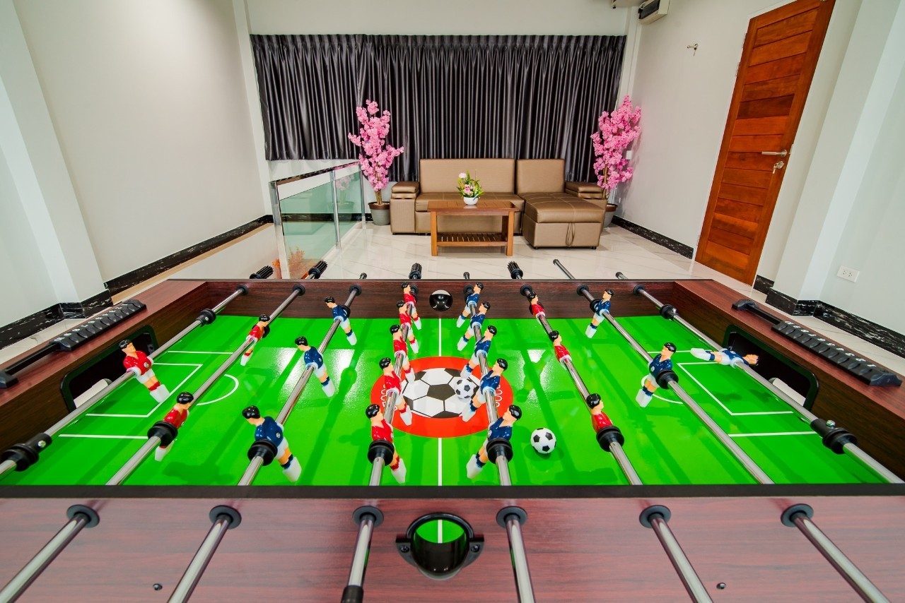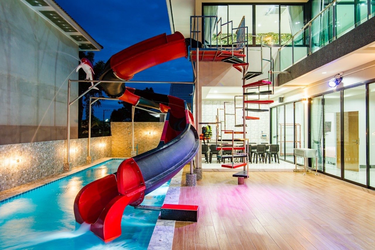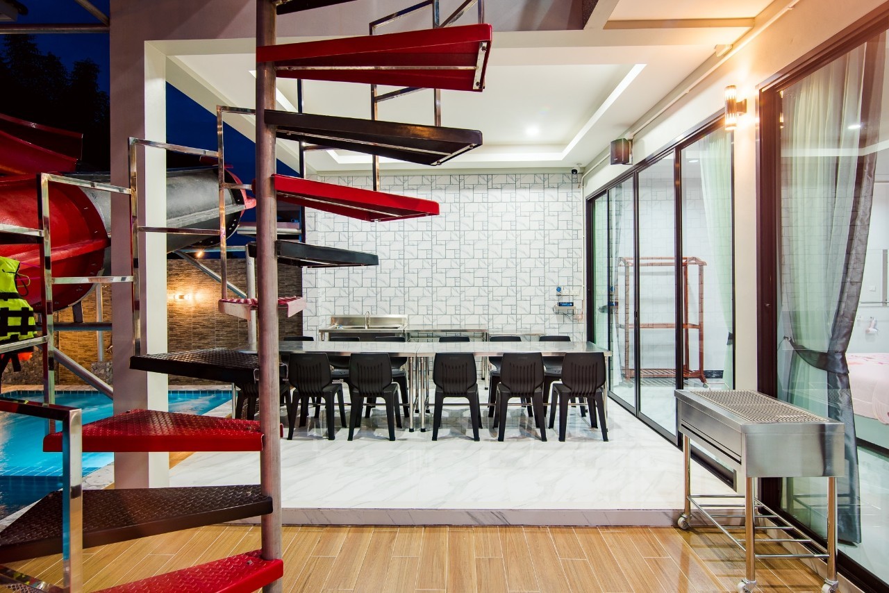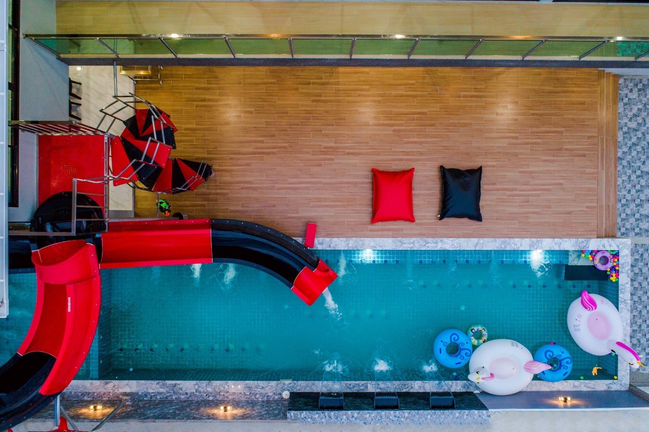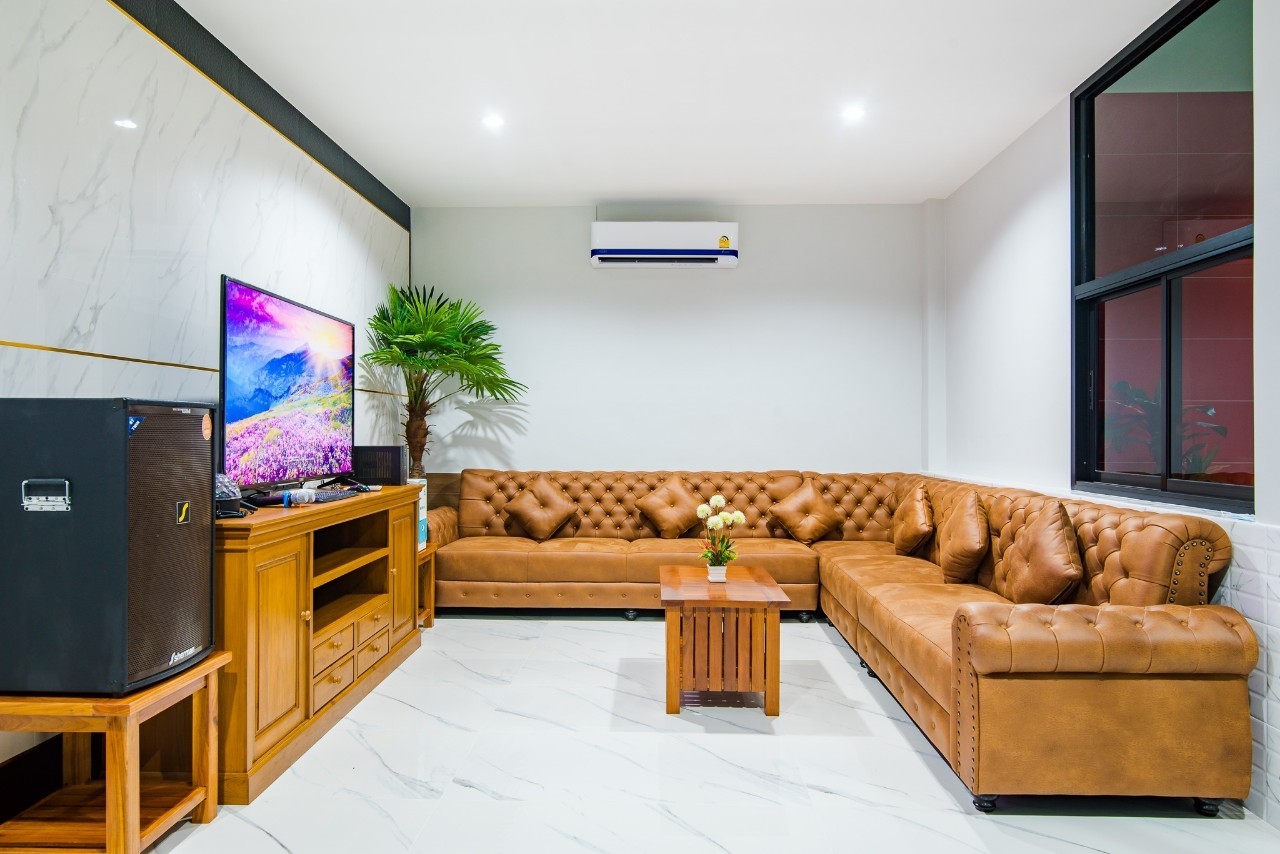 6 ห้องนอน (แอร์) 6 ห้องน้ำ 1 ห้องนั่งเล่น (แอร์) รองรับผู้เข้าพัก 25 คน คนที่ 26 ขึ้นไป เพิ่มคนละ 400 บาท พักสูงสุด 30 ท่าน มีสระว่ายน้ำส่วนตัว ขนาด 17 เมตร (มีสระเด็ก) สามารถเสียงดังได้ถึง 22.00 น. มีสิ่งอำนวยความสะดวกครบครัน สไลเดอร์20เมตร ทีวีทุกห้องนอน ตู้เย็น คาราโอเกะ ไฟเธค Wi-Fi โต๊ะสนุ๊ก5×10 โต๊ะโกบอล โดร์เป่าผมมีทุกห้องนอน อุปกรณ์เครื่องครัวครบชุด อุปกรณ์เครื่องใช้ส่วนตัวต้องเตรียมมาเอง เช่น ผ้าขนหนู แชมพู ยาสระผม (ไม่รับสัตว์เลี้ยง)