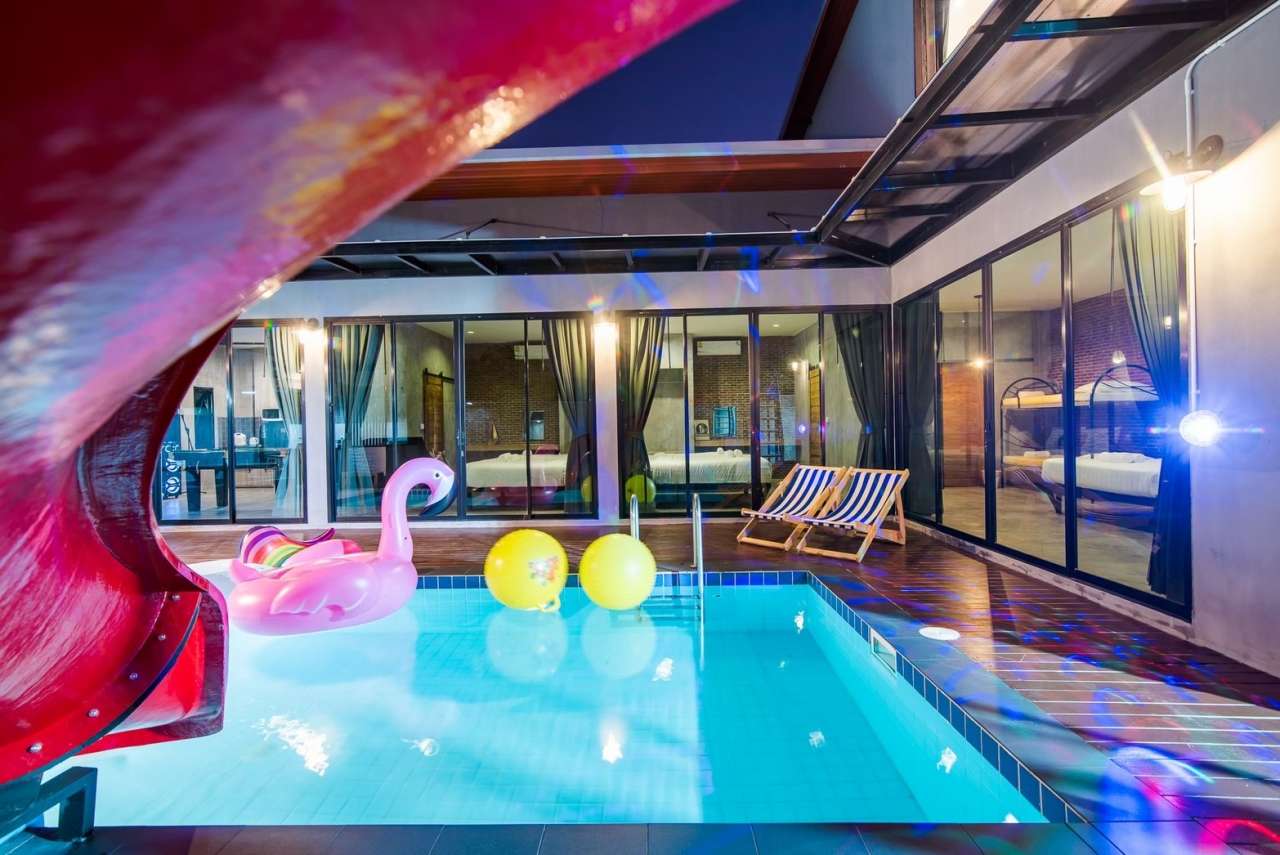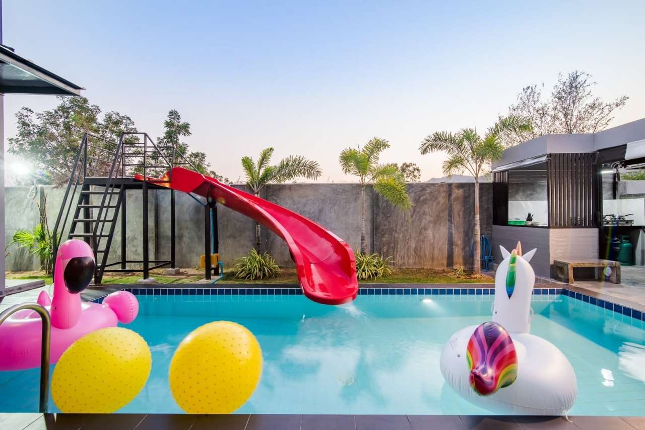 4 ห้องนอน (แอร์) 3 ห้องน้ำ 1 ห้องนั่งเล่น (แอร์) 1 ห้องครัวอุปกรณ์ครบครัน รองรับผู้เข้าพัก 16 คน เสริมท่านละ 300 (พร้อมที่นอนเสริม) พักสูงสูด 20 คน มีสระว่ายน้ำส่วนตัว ขนาด 3*10 เมตร พร้อมสระเด็ก สามารถเสียงดังได้ถึง 22.00 น. สิ่งอำนวยความสะดวกครบครัน ทีวี ฟรีคาราโอเกะ สไลเดอร์ wifi โต๊ะพูล ตู้เย็น อุปกรณ์เครื่องครัวครบชุด อุปกรณ์เครื่องใช้ส่วนตัวต้องเตรียมมาเอง เช่น ผ้าขนหนู แชมพู ยาสระผม