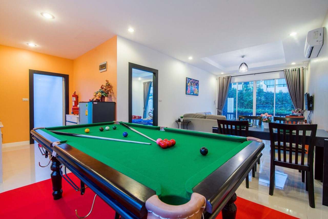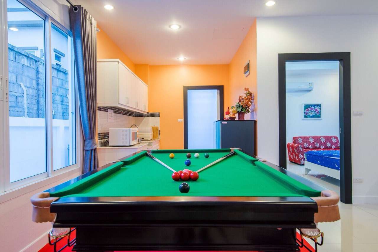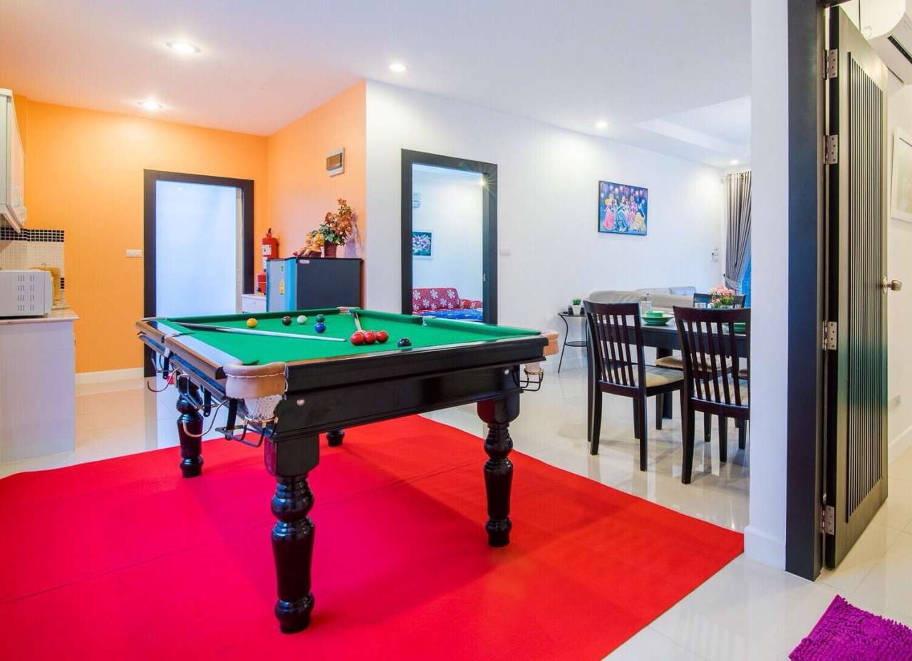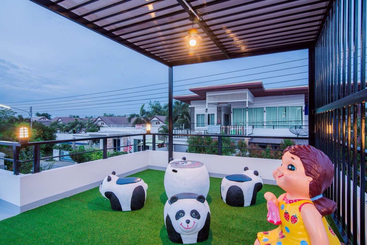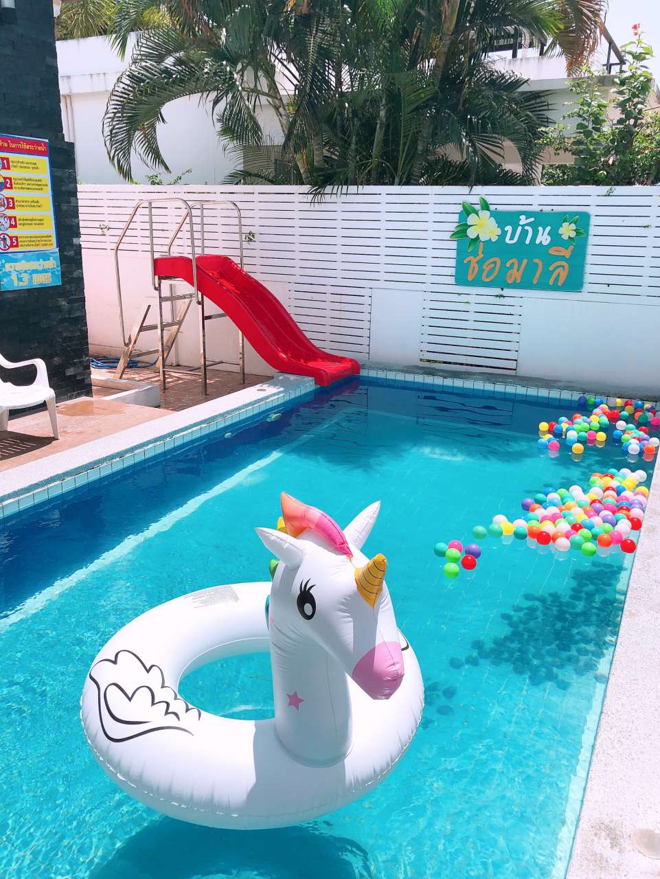 3 ห้องนอน (แอร์) 2 ห้องน้ำ 1 ห้องนั่งเล่น (แอร์) 1 ห้องครัวอุปกรณ์ครบครัน รองรับผู้เข้าพัก 8 คน สำหรับเด็ก ต่ำกว่า 10 ขวบ ฟรี 2 คน คนที่ 9 ขึ้นไป เพิ่มคนละ 300 บาท พักสูงสุด 12 ท่าน (ที่นอนเสริมต้องเตรียมมาเอง) มีสระว่ายน้ำส่วนตัว ขนาด 3*6 เมตร สามารถเสียงดังได้ถึง 22.00 น. มีสิ่งอำนวยความสะดวกครบครัน ทีวี ฟรีคาราโอเกะ โต๊ะพูล ตู้เย็น อุปกรณ์เครื่องครัวครบชุด อุปกรณ์เครื่องใช้ส่วนตัวต้องเตรียมมาเอง เช่น ผ้าขนหนู แชมพู ยาสระผม (ห้ามนำสัตว์เลี้ยงเข้าพัก) ราคาวันศุกร์ 3,500/8 คน