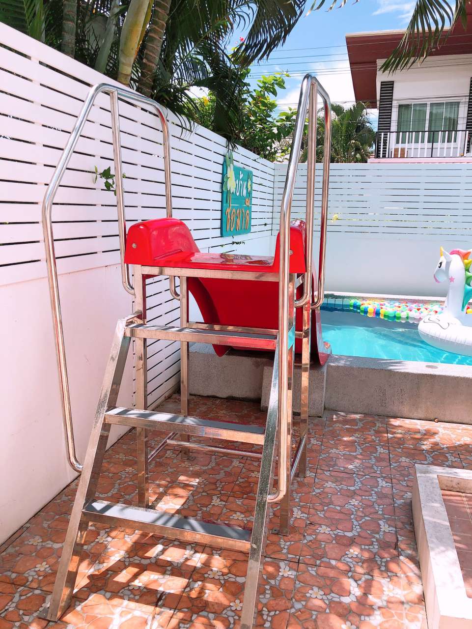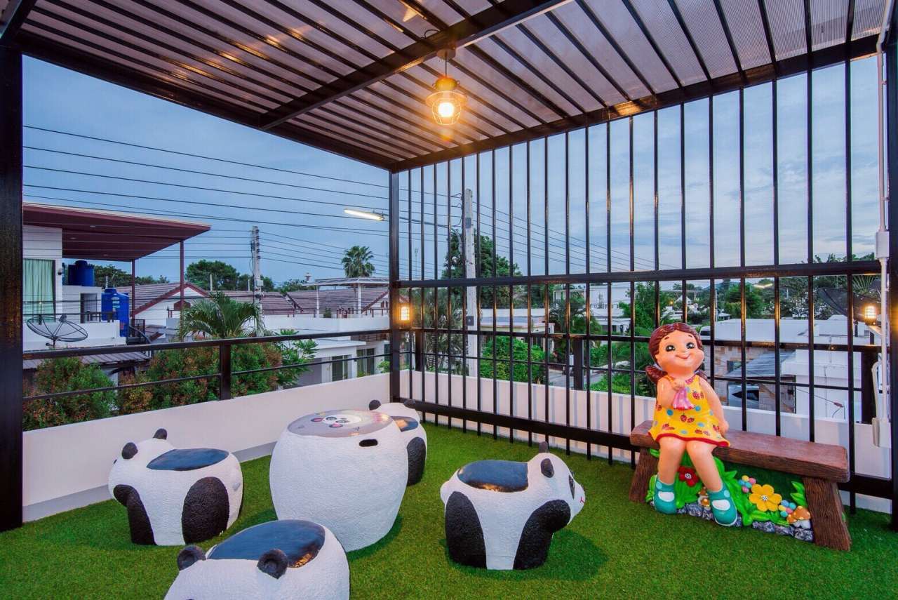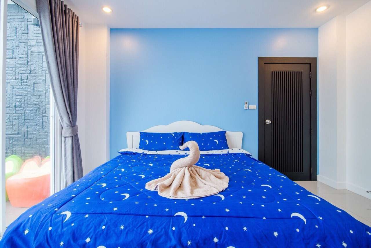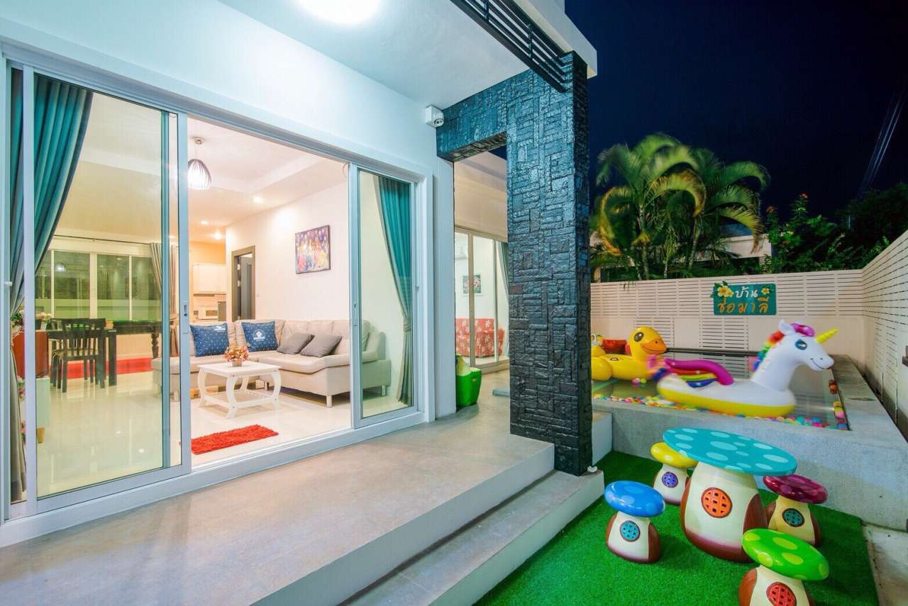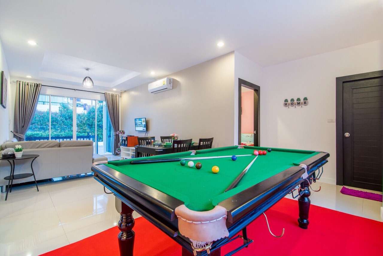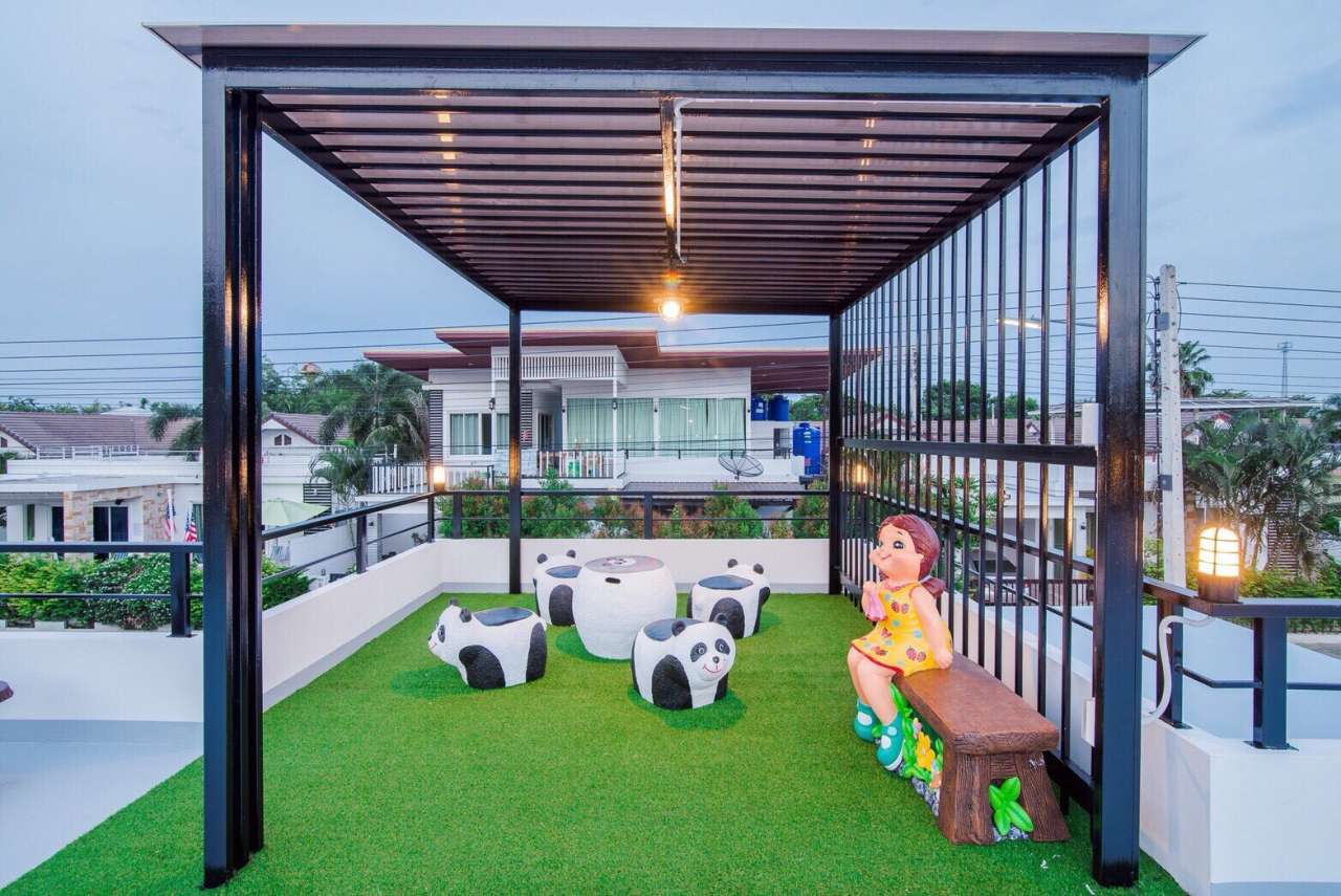 3 ห้องนอน (แอร์) 2 ห้องน้ำ 1 ห้องนั่งเล่น (แอร์) 1 ห้องครัวอุปกรณ์ครบครัน รองรับผู้เข้าพัก 8 คน สำหรับเด็ก ต่ำกว่า 10 ขวบ ฟรี 2 คน คนที่ 9 ขึ้นไป เพิ่มคนละ 300 บาท พักสูงสุด 12 ท่าน (ที่นอนเสริมต้องเตรียมมาเอง) มีสระว่ายน้ำส่วนตัว ขนาด 3*6 เมตร สามารถเสียงดังได้ถึง 22.00 น. มีสิ่งอำนวยความสะดวกครบครัน ทีวี ฟรีคาราโอเกะ โต๊ะพูล ตู้เย็น อุปกรณ์เครื่องครัวครบชุด อุปกรณ์เครื่องใช้ส่วนตัวต้องเตรียมมาเอง เช่น ผ้าขนหนู แชมพู ยาสระผม (ห้ามนำสัตว์เลี้ยงเข้าพัก) ราคาวันศุกร์ 3,500/8 คน