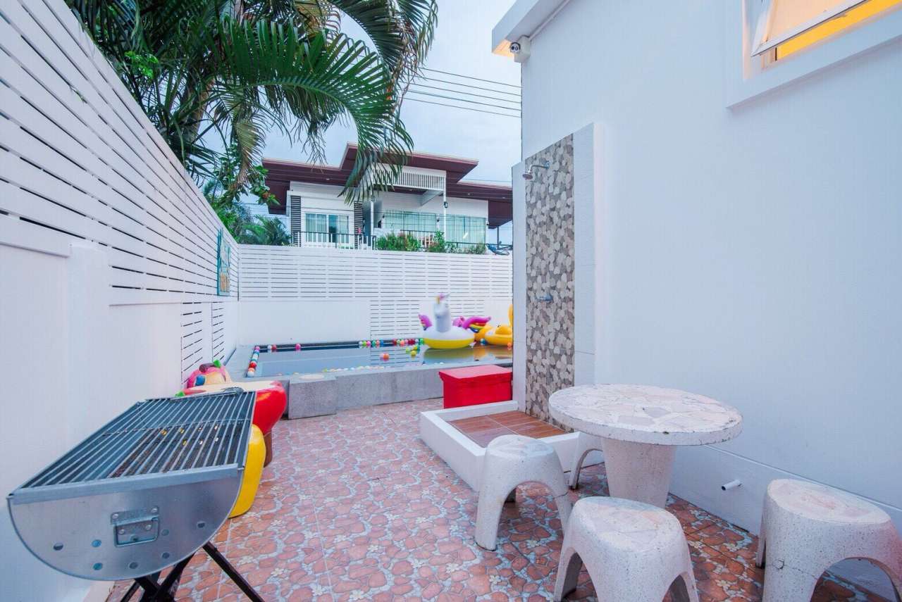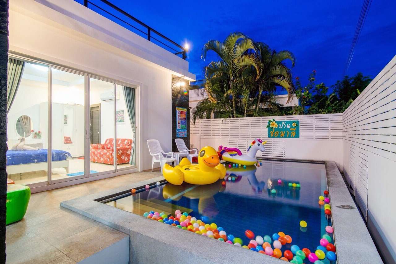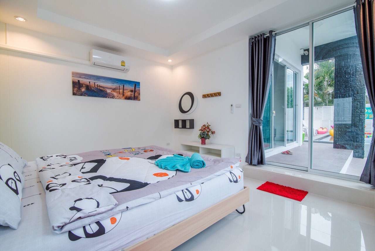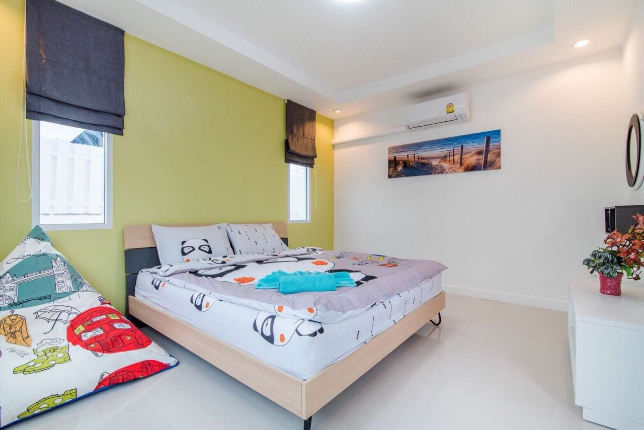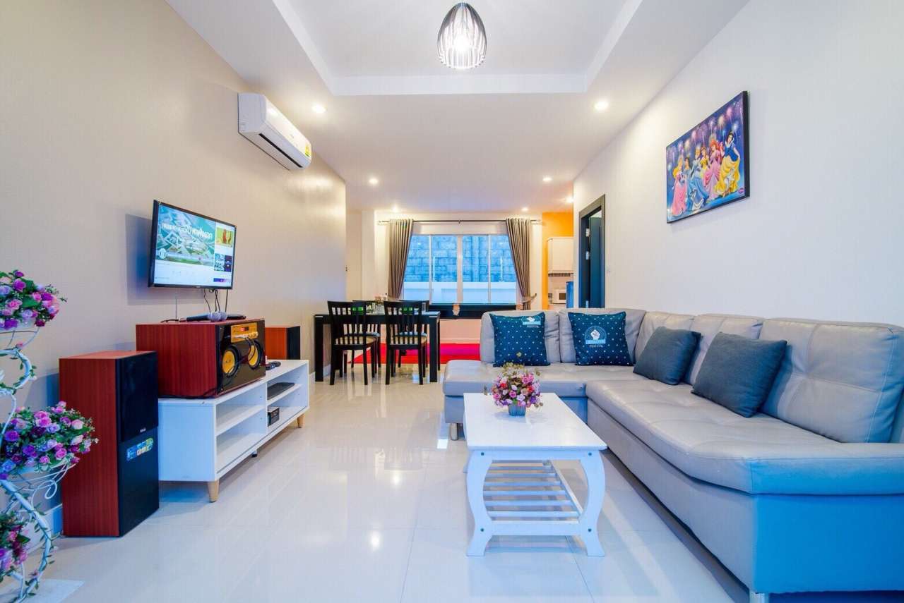3 ห้องนอน (แอร์) 2 ห้องน้ำ 1 ห้องนั่งเล่น (แอร์) 1 ห้องครัวอุปกรณ์ครบครัน รองรับผู้เข้าพัก 8 คน สำหรับเด็ก ต่ำกว่า 10 ขวบ ฟรี 2 คน คนที่ 9 ขึ้นไป เพิ่มคนละ 300 บาท พักสูงสุด 12 ท่าน (ที่นอนเสริมต้องเตรียมมาเอง) มีสระว่ายน้ำส่วนตัว ขนาด 3*6 เมตร สามารถเสียงดังได้ถึง 22.00 น. มีสิ่งอำนวยความสะดวกครบครัน ทีวี ฟรีคาราโอเกะ โต๊ะพูล ตู้เย็น อุปกรณ์เครื่องครัวครบชุด อุปกรณ์เครื่องใช้ส่วนตัวต้องเตรียมมาเอง เช่น ผ้าขนหนู แชมพู ยาสระผม (ห้ามนำสัตว์เลี้ยงเข้าพัก) ราคาวันศุกร์ 3,500/8 คน
